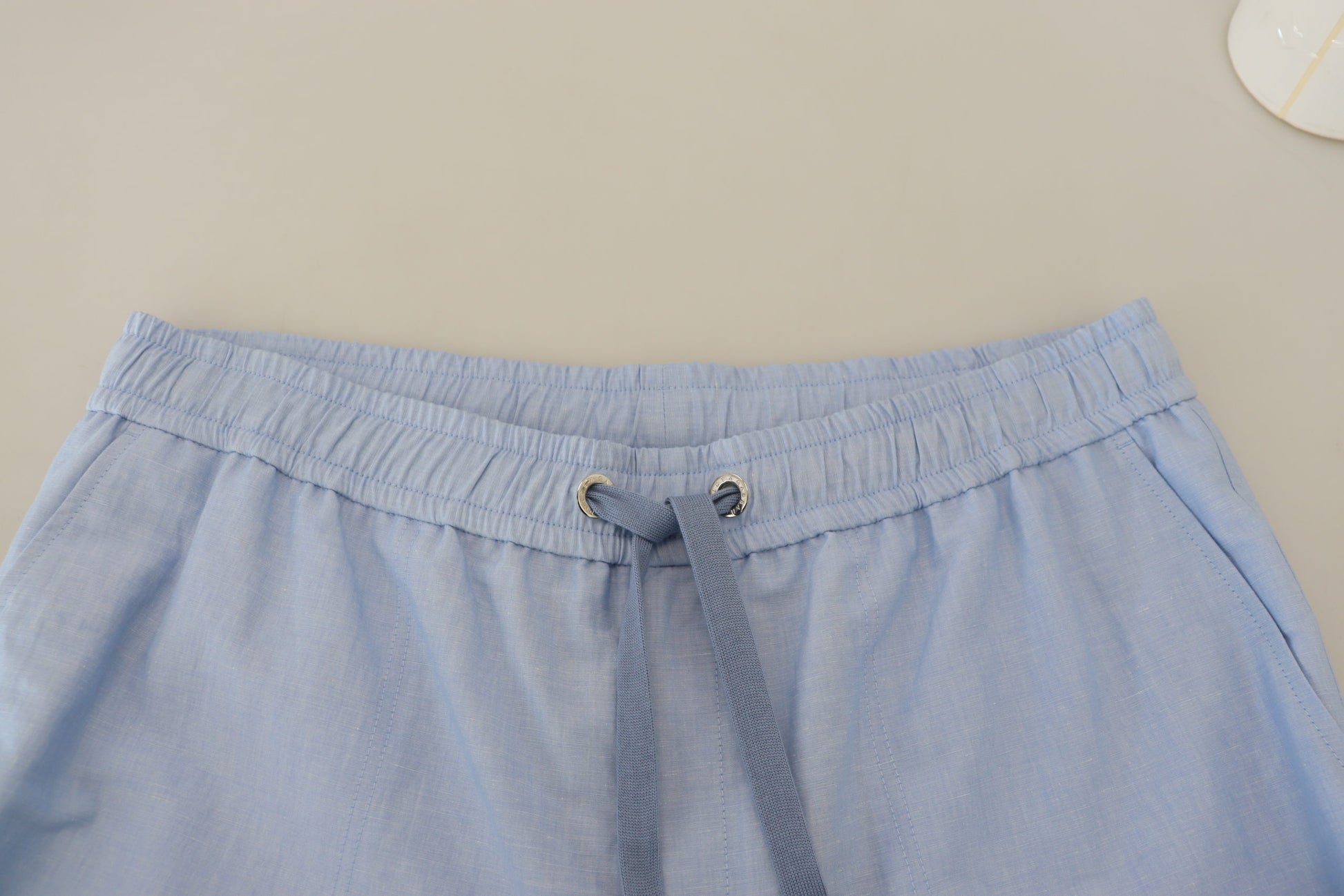 Step into summer with the impeccable style of these Dolce & Gabbana shorts. Crafted from a lightweight blend of linen and cotton, these shorts ensure utmost comfort and a chic, airy feel. Perfect for high-end leisure or smart-casual events, they feature a serene light blue color that pairs effortlessly with a variety of tops and shoes.