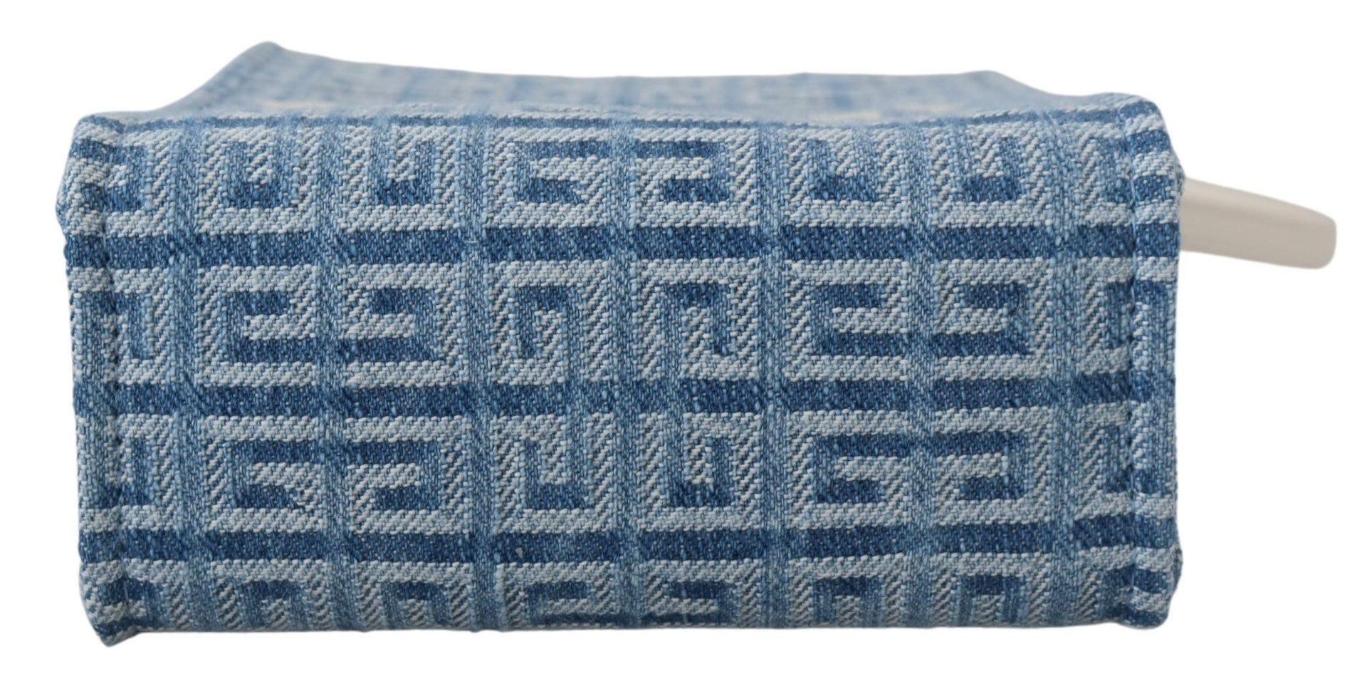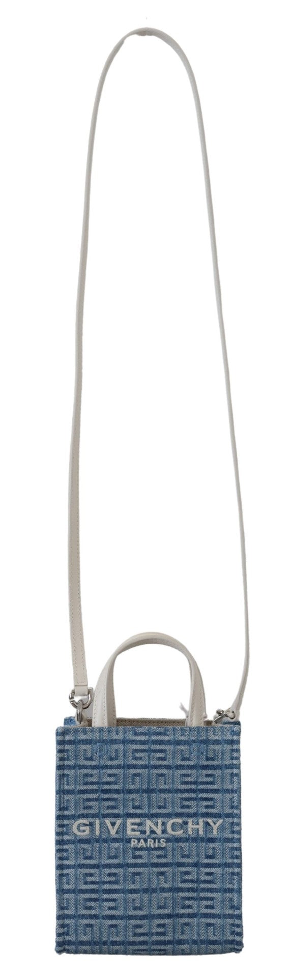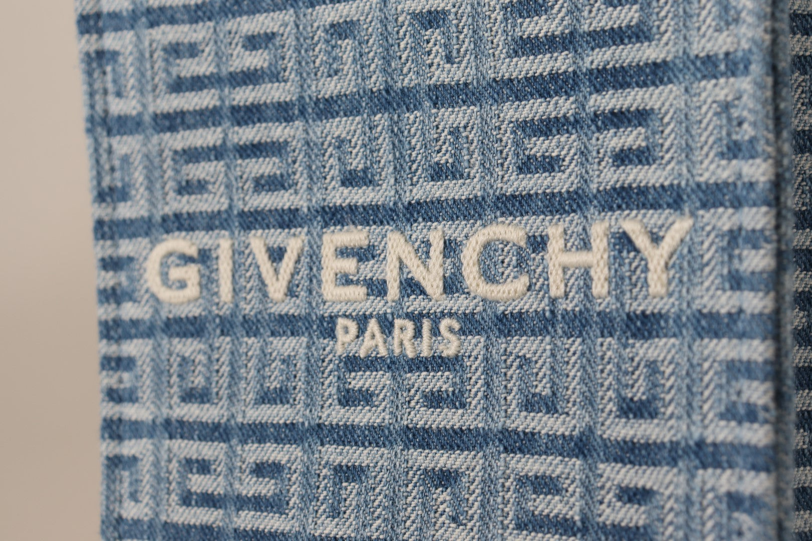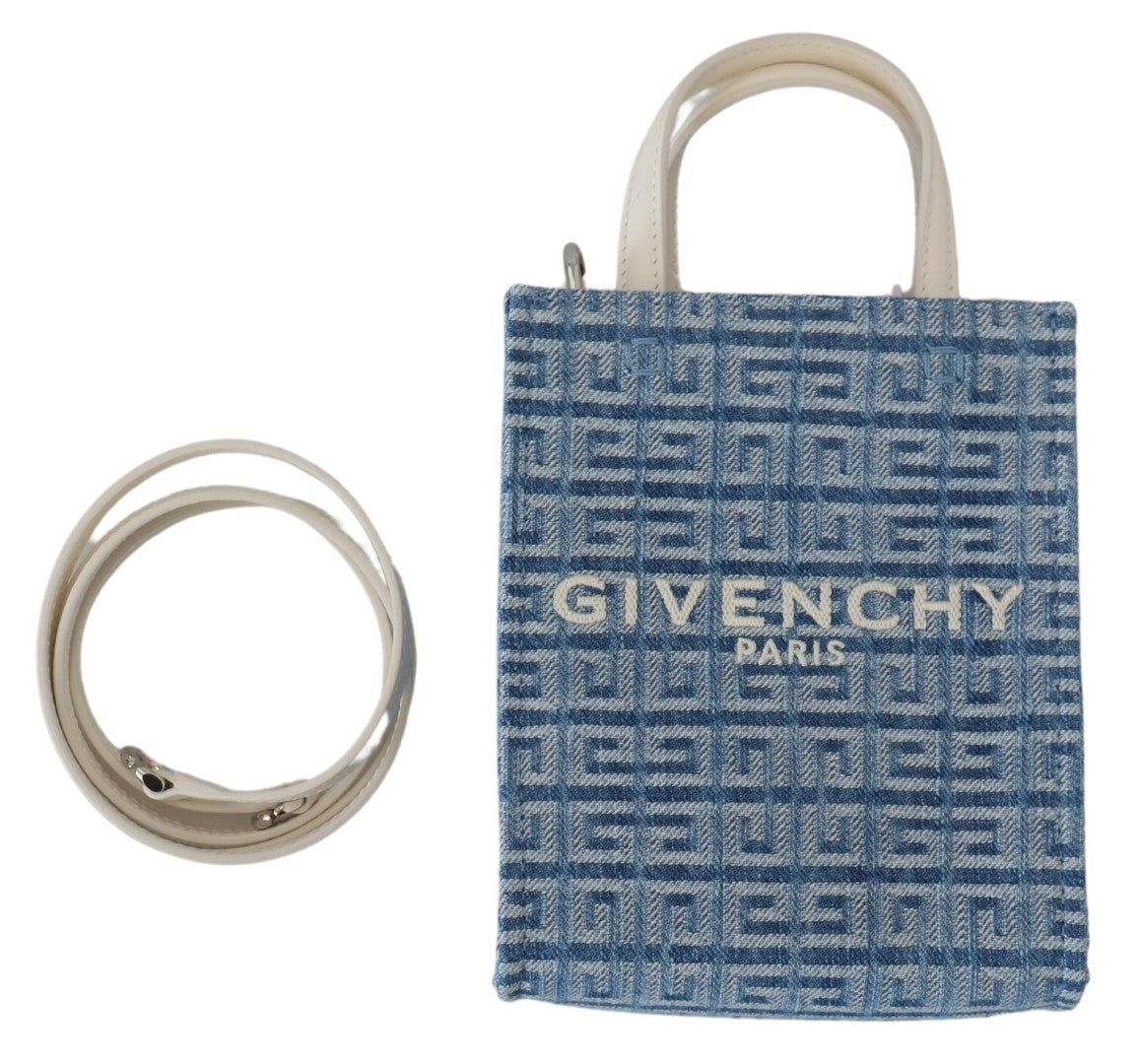 Discover the epitome of elegance with this 100% Authentic Givenchy mini bag, a luxurious companion for any fashion-forward individual. The sleek light blue cotton fabric exudes sophistication, while the versatile top handle design allows it to gracefully transition from a day in the office to an evening out. Offering ample space for your essentials, this Italian-made piece serves not just as a bag but a statement of style.