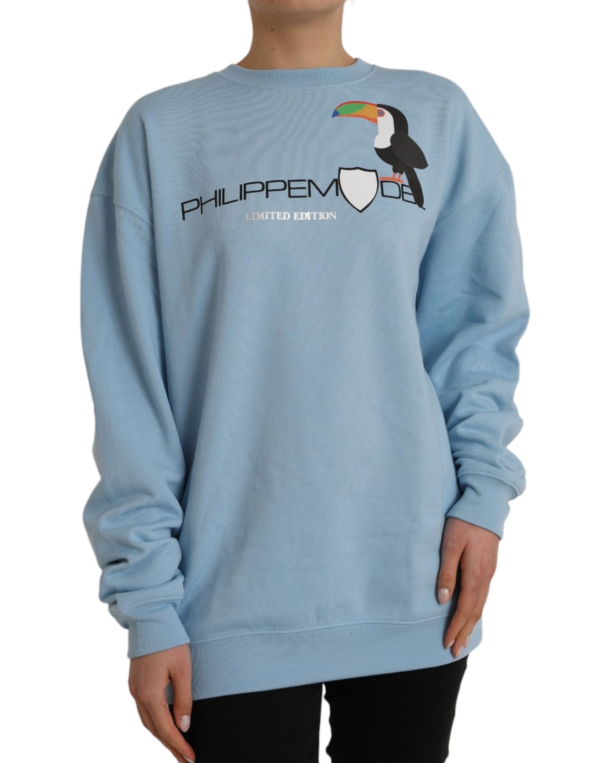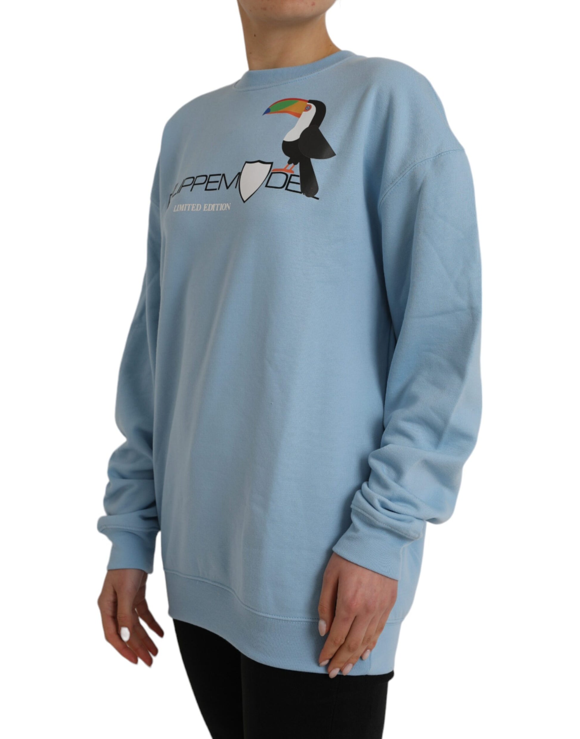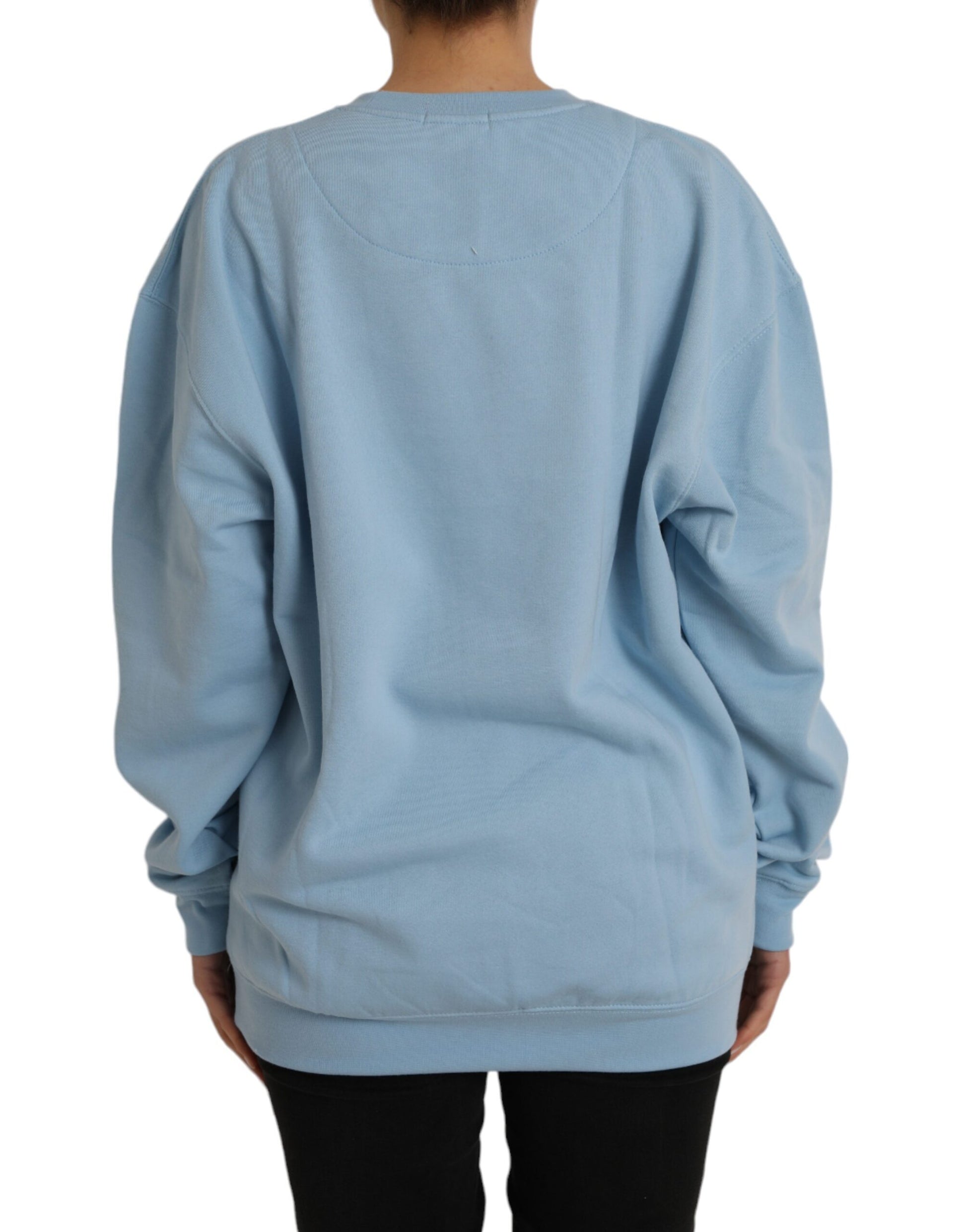 Light Blue Cotton Logo Long Sleeves Pullover Sweater