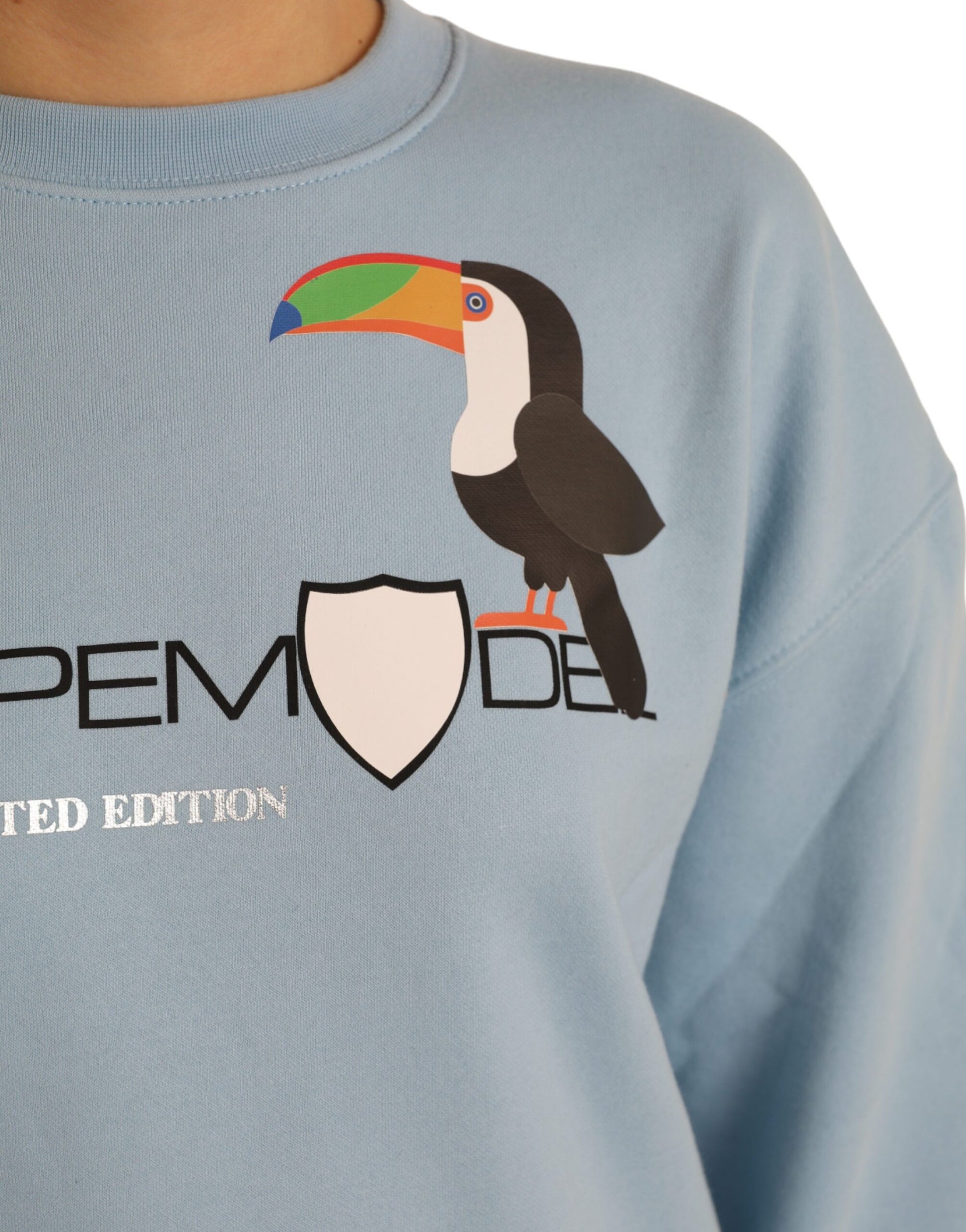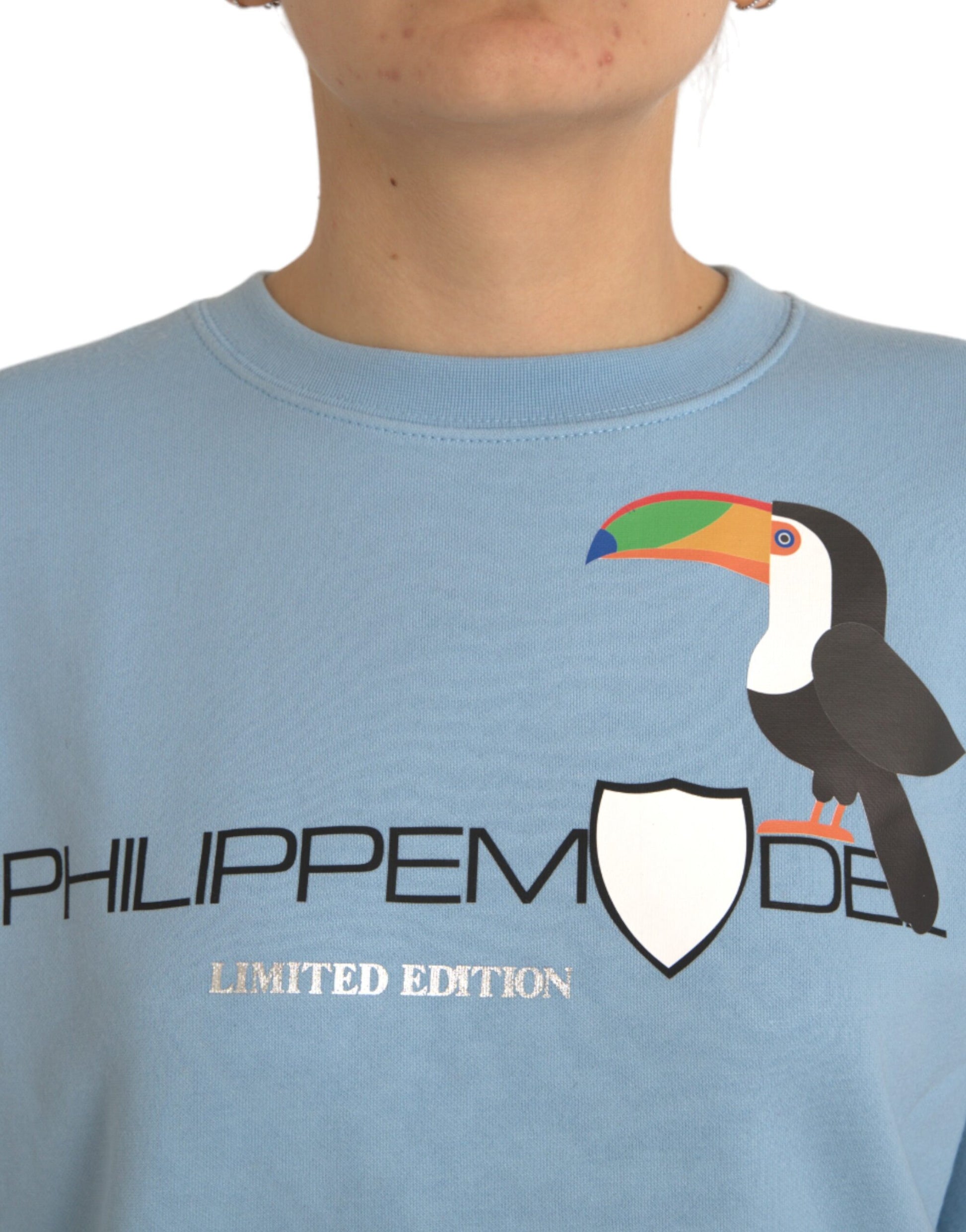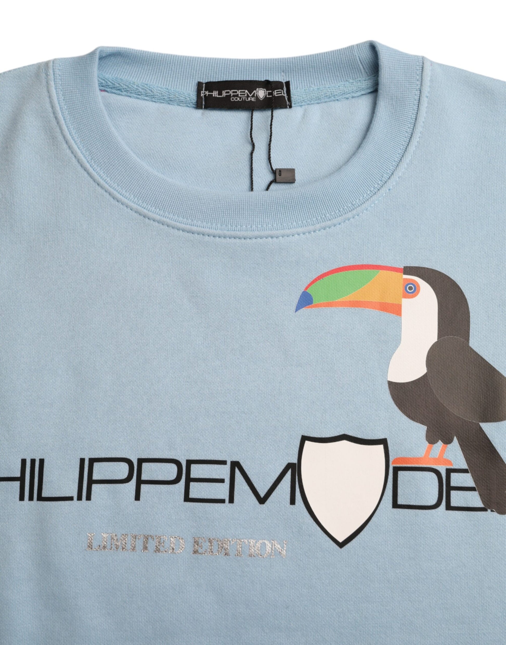 Light Blue Cotton Logo Long Sleeves Pullover Sweater