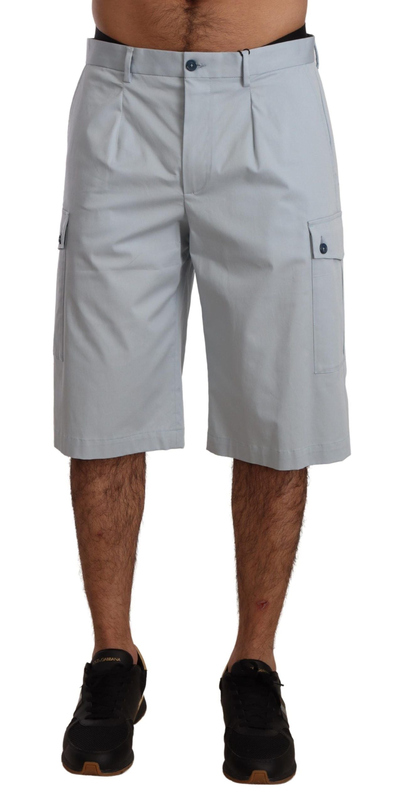 Step into summer with effortless style in these Elegant Light Blue Cargo Shorts. Exclusively crafted by the renowned Dolce & Gabbana, these shorts boast not only a brand-new condition with tags but also a stunning design that makes a sophisticated statement. Made from a soft and lightweight cotton blend infused with durable elastane, these shorts are perfect for those seeking both comfort and durability. Their classic fit is accentuated by sizeable patch pockets that bring a touch of cargo chic to your ensemble, while the subtle logo details add an air of exclusivity. Proudly made in Italy, these shorts represent the perfect meld of luxury and practicality.