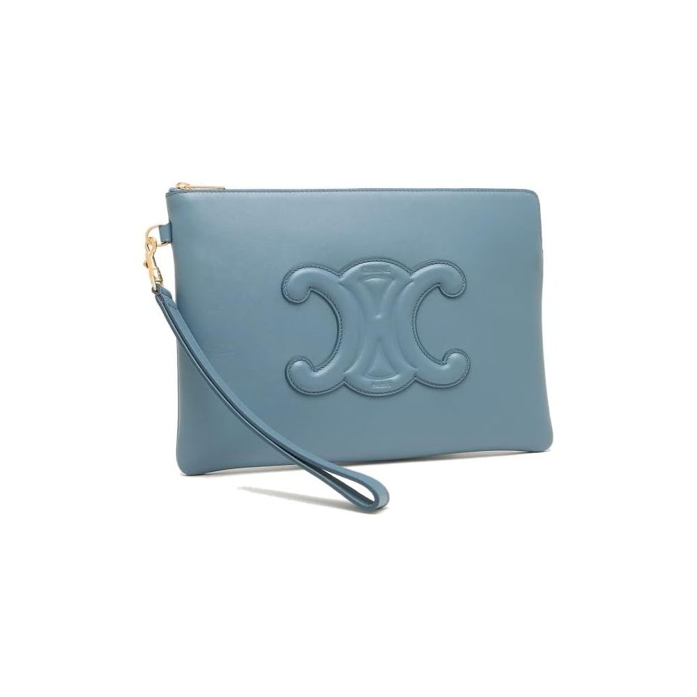 Chic Denim Blue Leather Clutch with Removable Strap