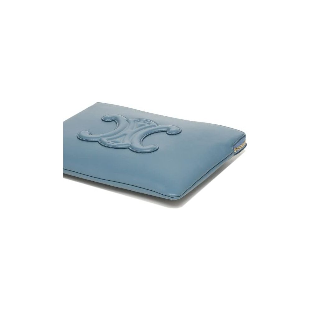 Indulge in the luxury of a sleek denim blue calfskin leather clutch, a timeless accessory designed to elevate your evening ensemble. With its iconic logo embossed on the front, this clutch exudes elegance. It boasts a handy removable strap and a secure zipper closure to keep your valuables safe. Compact yet spacious, it measures a convenient 25×18 cm, perfect for those essential items.