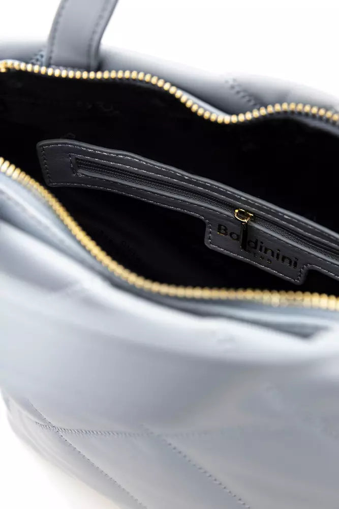 Embrace the epitome of contemporary elegance with the Baldinini Trend Leather Shoulder Bag. Its flawless light blue hue, crowned with golden details, boasts a fashion-forward vibe ideal for the trendsetting woman. Equipped with a secure zip closure and practical internal compartments, this bag perfectly marries style with function. The front logo asserts the luxury that Baldinini Trend is known for, while the ample size ensures all your essentials are stylishly stowed.