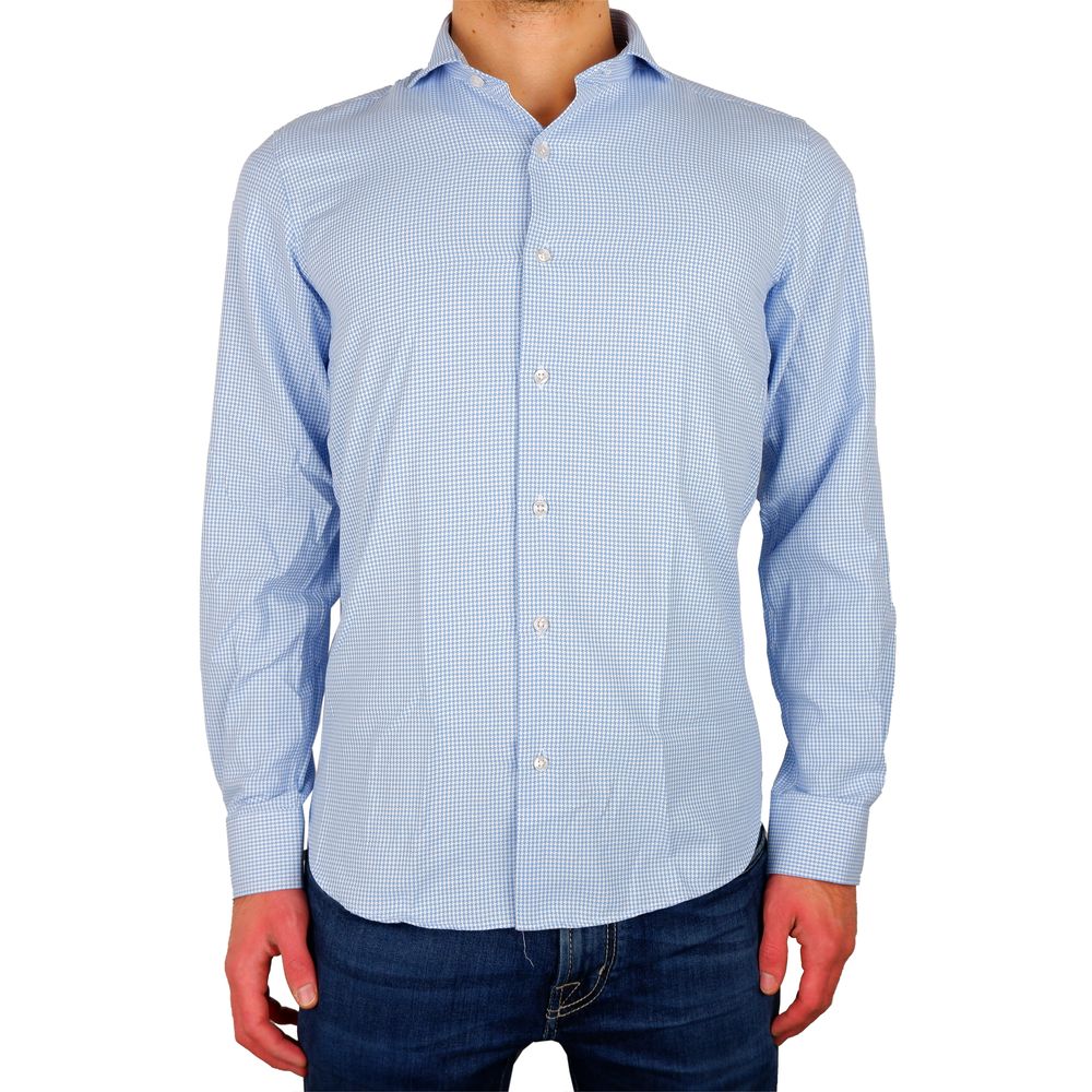 Experience the epitome of Italian craftsmanship with this exquisite Milano shirt. Featuring a refined houndstooth texture in a serene light blue, this 100% cotton shirt offers both unparalleled style and comfort. Perfect for discerning gentlemen who appreciate attention to detail and quality.
