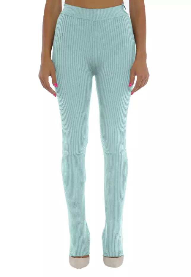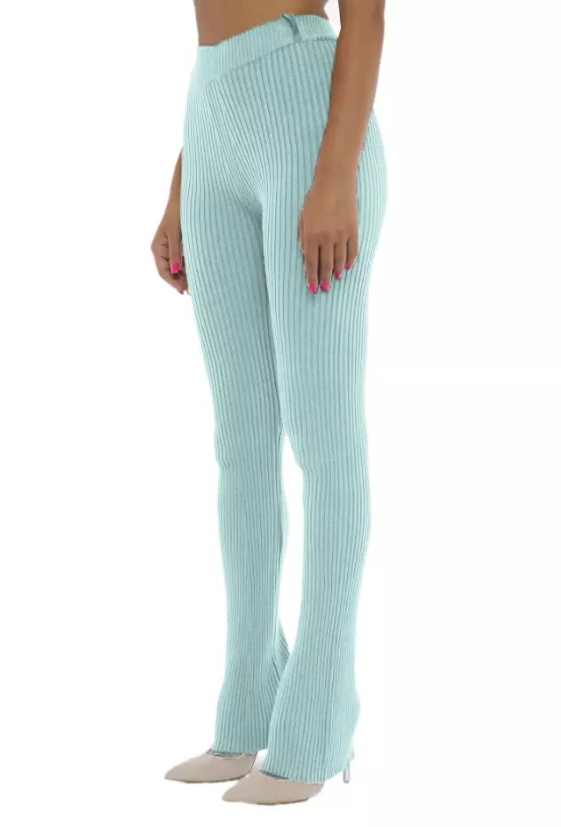 Discover the perfect blend of comfort and style with our ribbed knit stretch trousers, featuring a fashionable flared leg design. These chic trousers are quintessential for a versatile wardrobe, offering elegance that transitions effortlessly from day to evening wear. Tailored with precision, they speak to the connoisseur of high-end fashion, ensuring a flattering silhouette and an exquisite feel against the skin.
