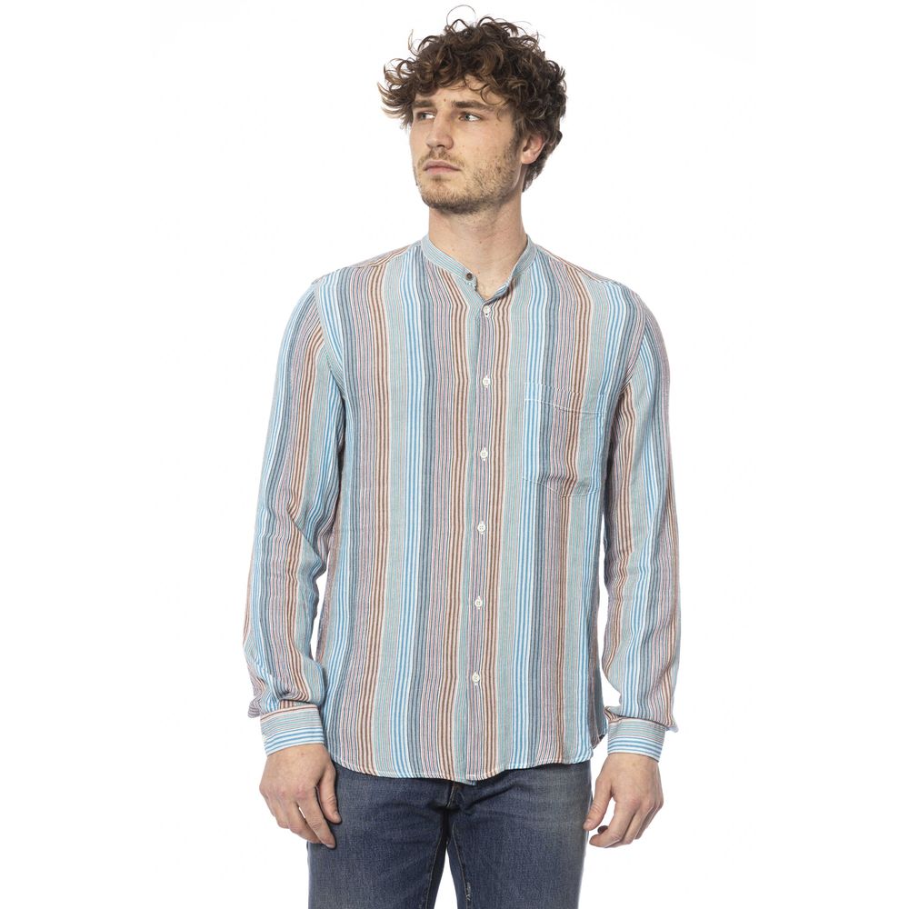 Elevate your wardrobe with the sleek silhouette of Distretto12’s Regular Fit Shirt. The fusion of a crisp mandarin collar with a streamlined button front closure offers a modern twist on classic style. Expertly crafted from a sumptuous blend of 88% Viscose and 12% Linen, this light blue shirt promises both luxury and comfort. Perfect for the fashion-forward individual looking to make a statement with their sartorial choices. Tailored cuffs polish the look, ensuring you stand out with timeless elegance.