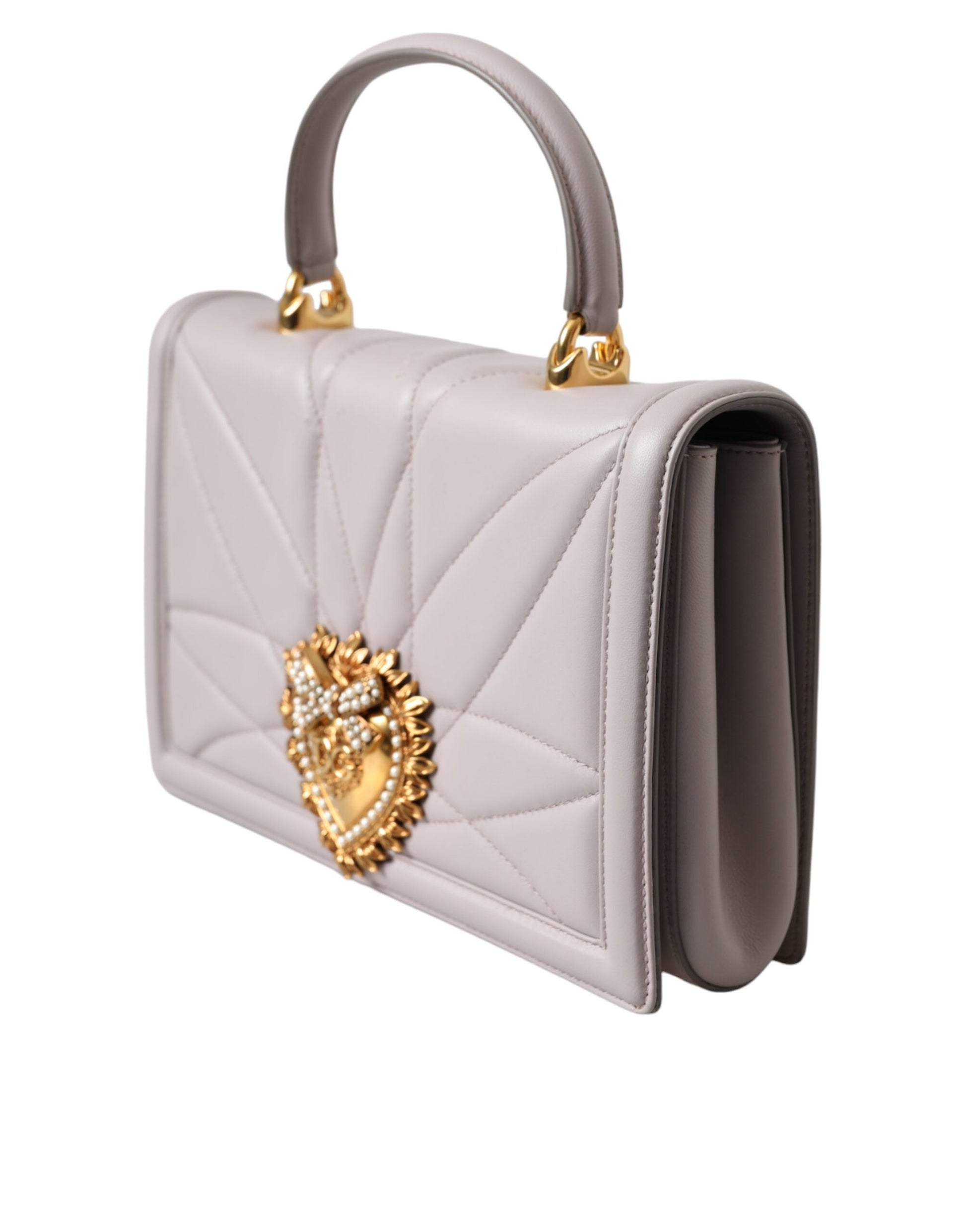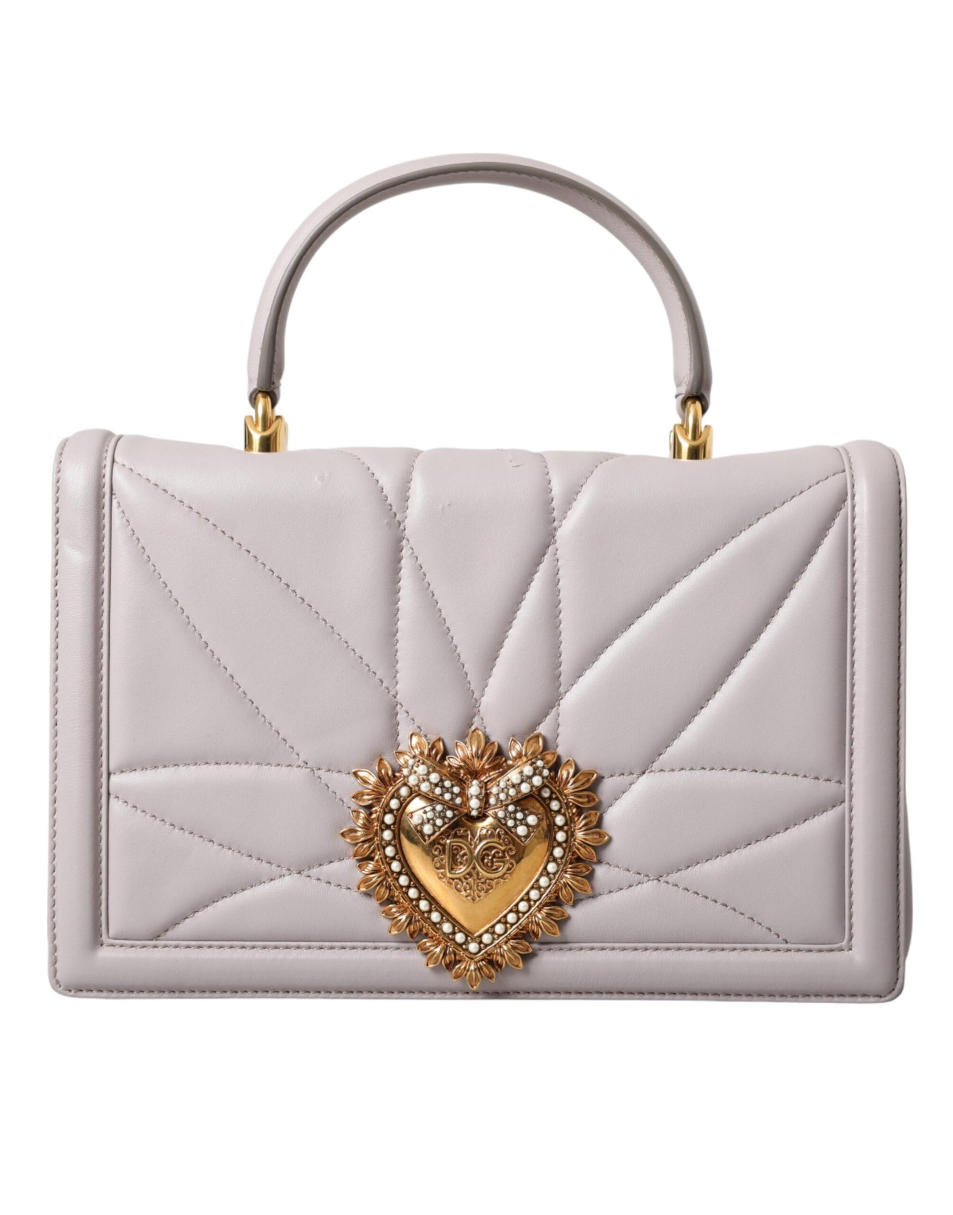 Light Gray Devotion Gold Heart Leather Shoulder Bag