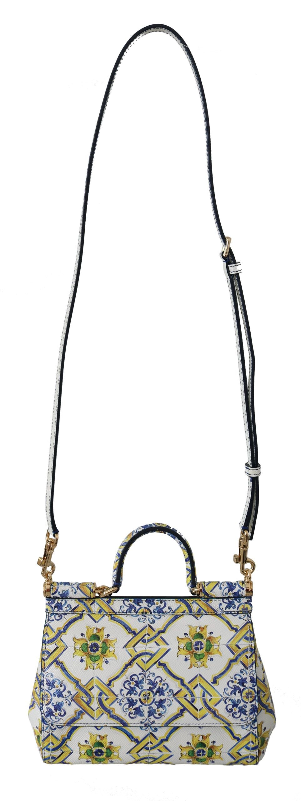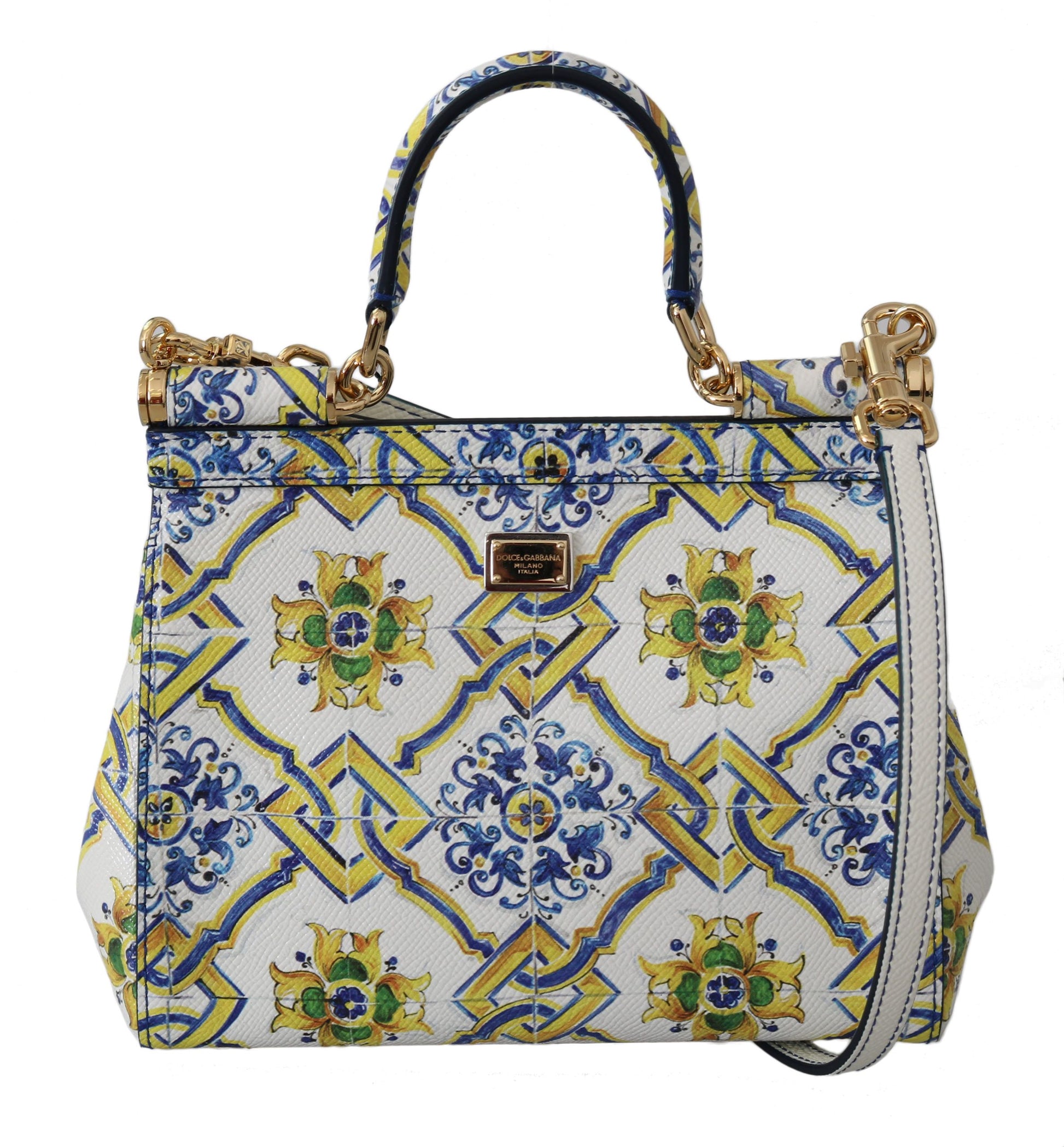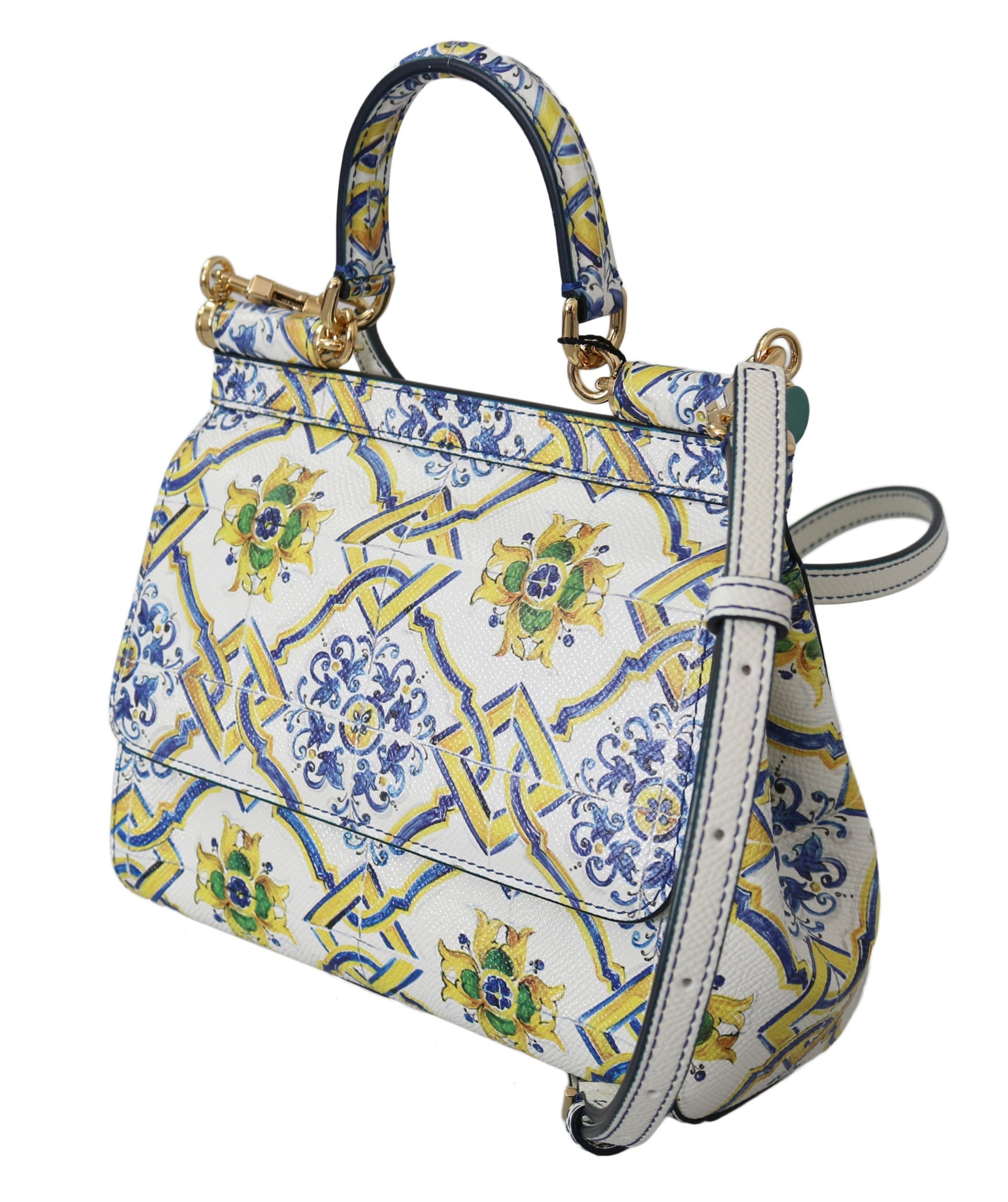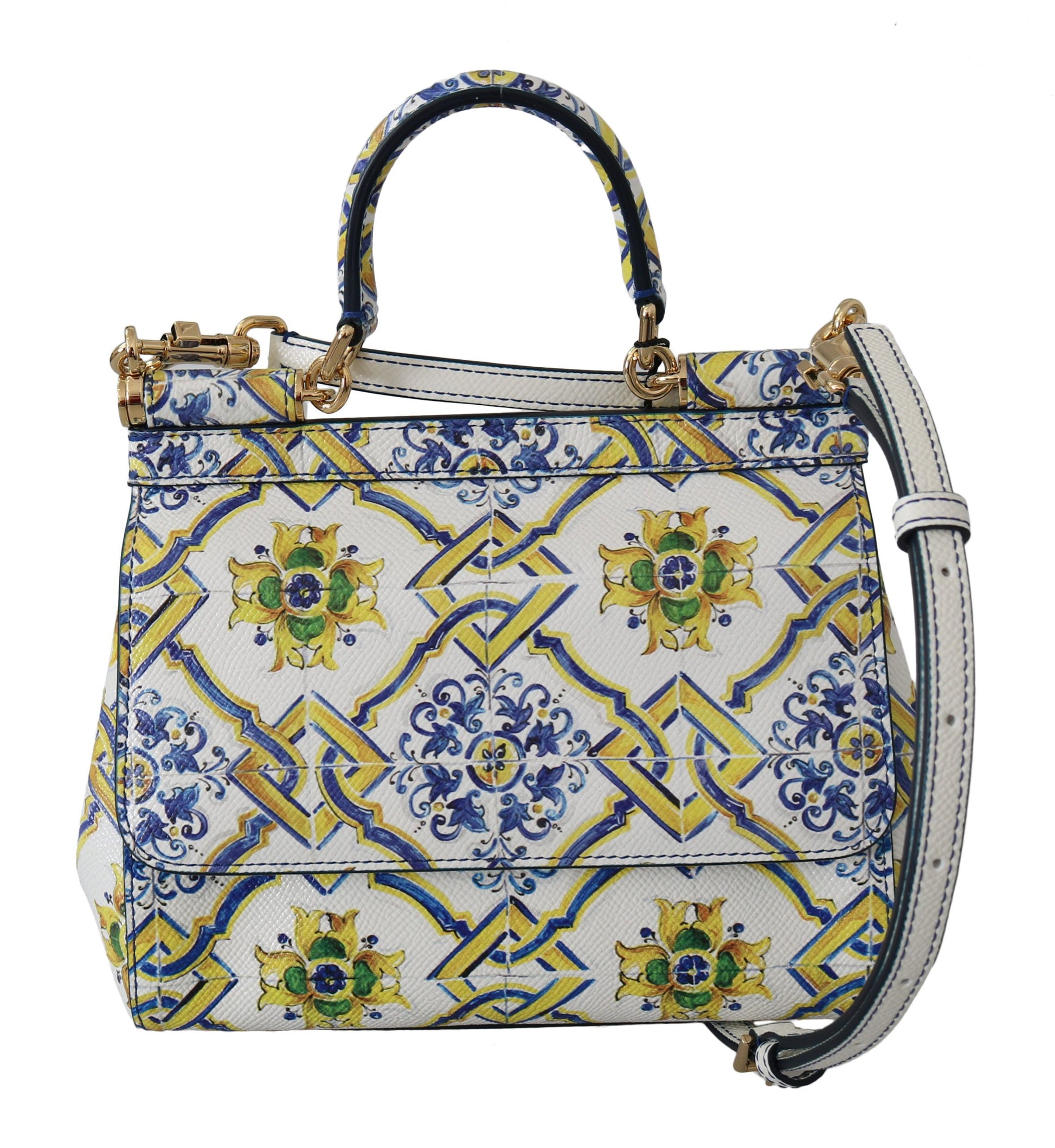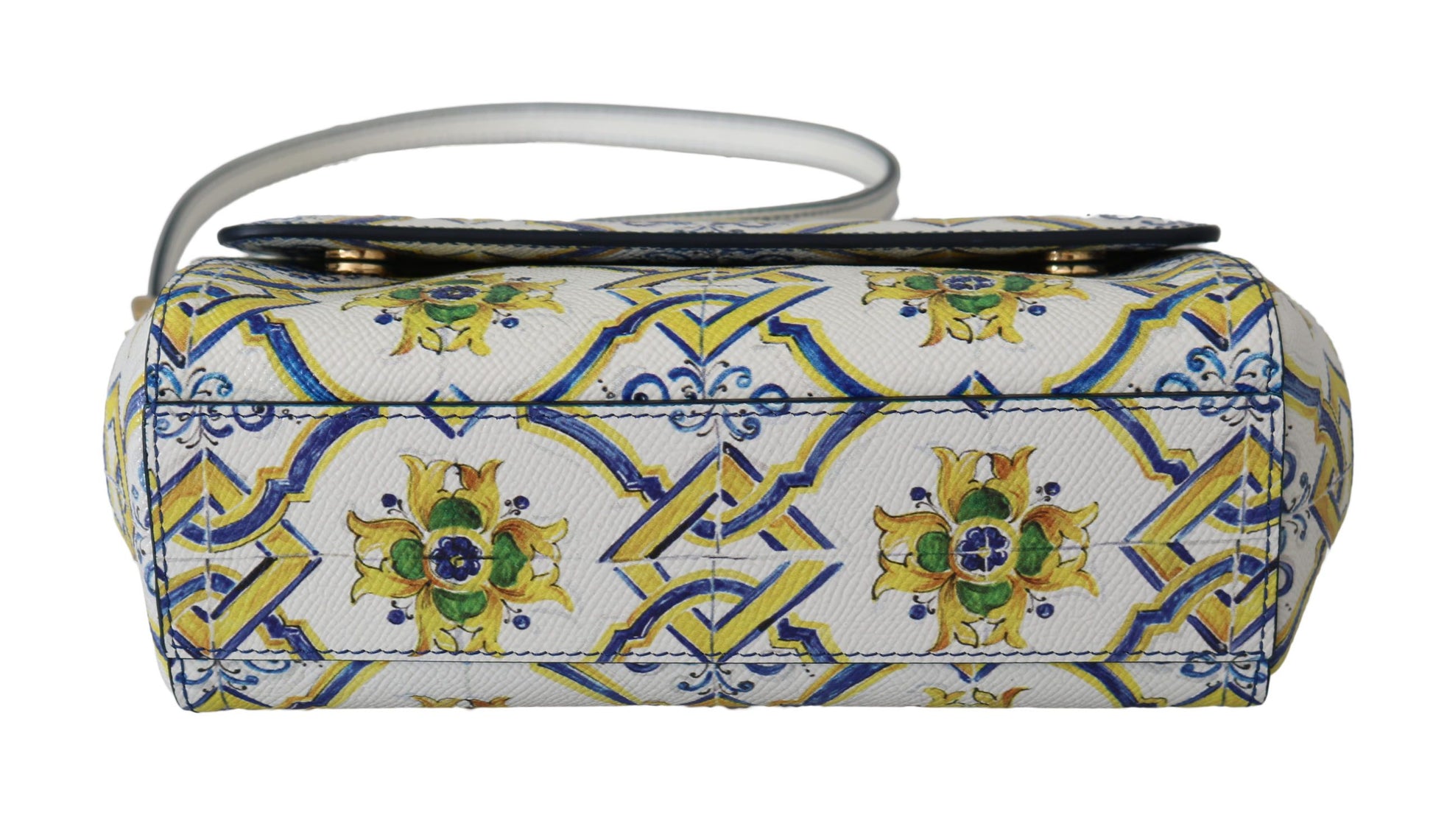 Step out in style with an exquisite tote that embodies the essence of luxury. This 100% authentic, brand-new Dolce & Gabbana Sicily bag is a statement piece with its vibrant Multicolor Majolica print and opulent gold metal detailing. Its practical elegance is secured with a magnetic flap closure and it offers ample storage with an interior slot, all lined with a lush green interior. A versatile carry comes with a sturdy handle and a detachable, adjustable shoulder strap, allowing for multiple styling options. Crafted with excellence in Italy, this bag is not just an accessory but a testament to sublime craftsmanship.