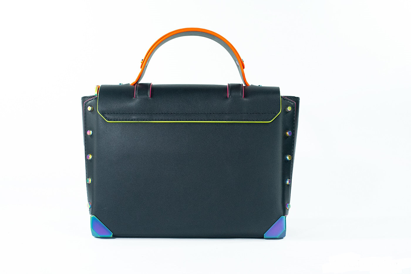 Manhattan Medium Black Leather Top Handle Satchel Bag Purse