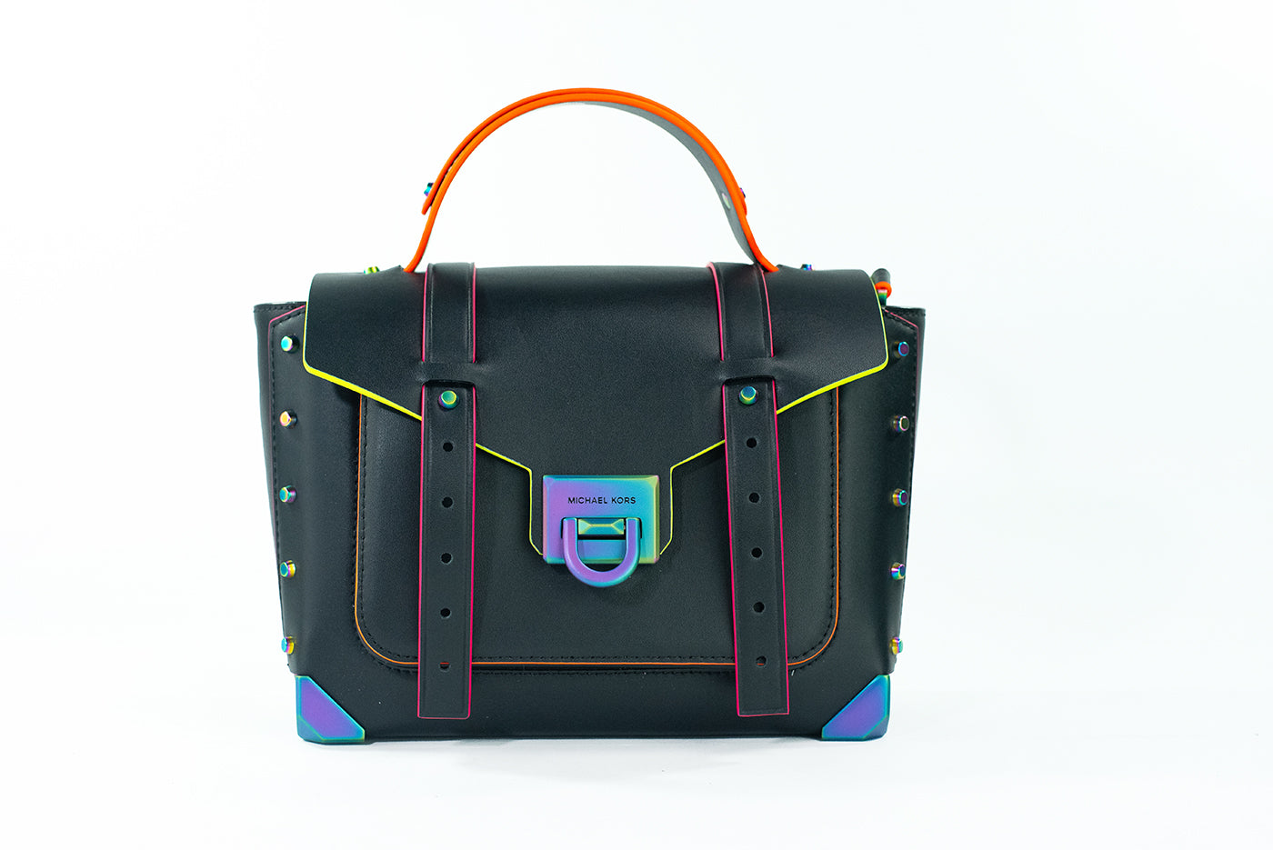 Style: Michael Kors Manhattan Medium Top Handle School Satchel Bag (Black/Contrast Trim)