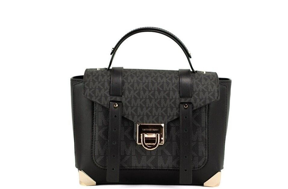 Style: Michael Kors Manhattan Medium Top Handle School Satchel Bag (Black)