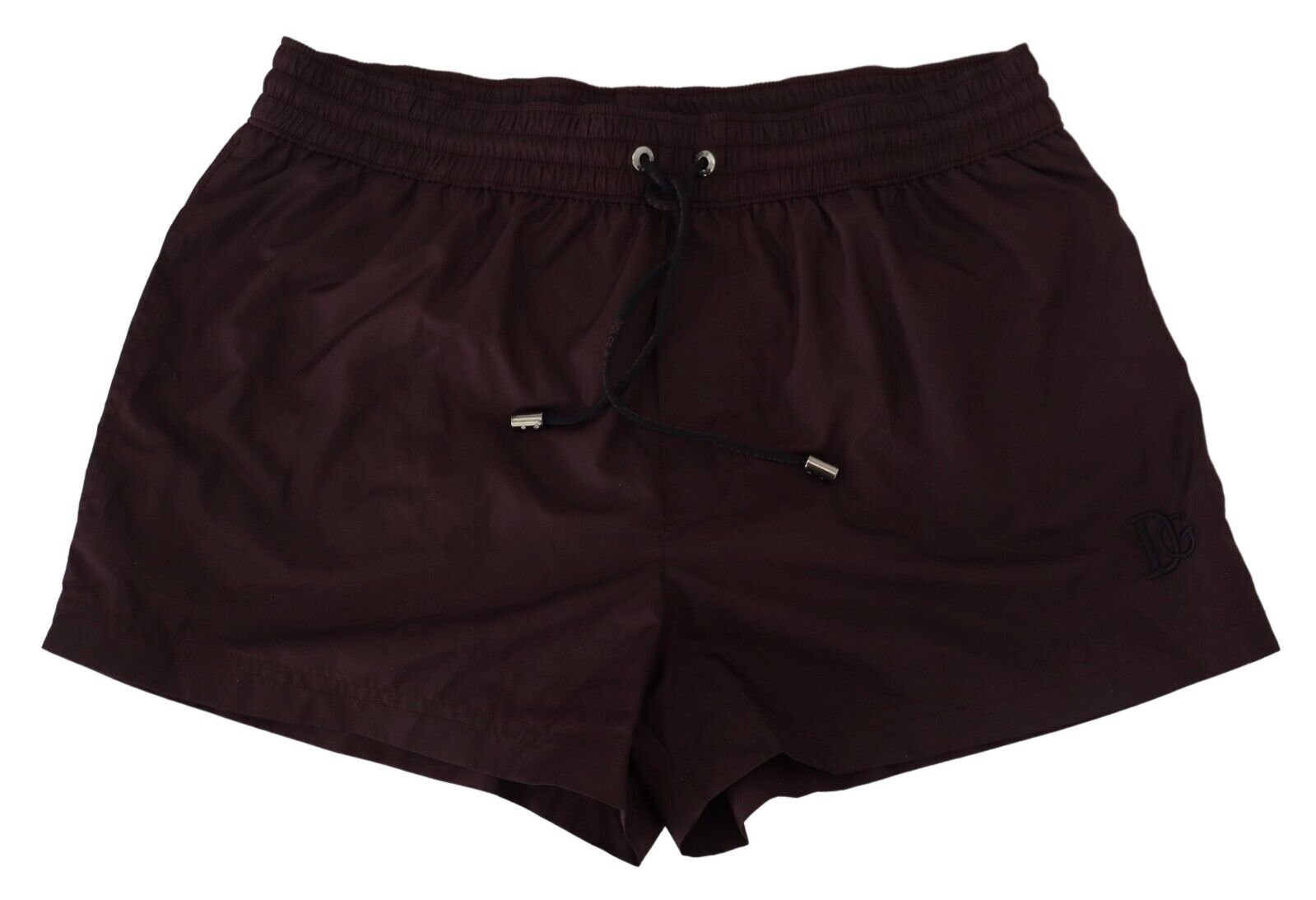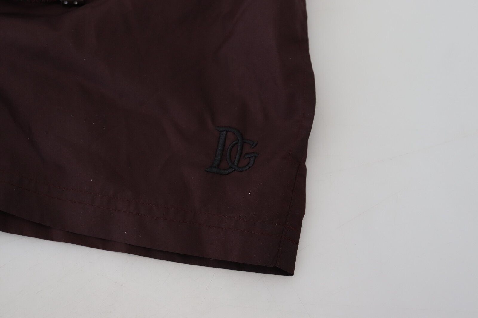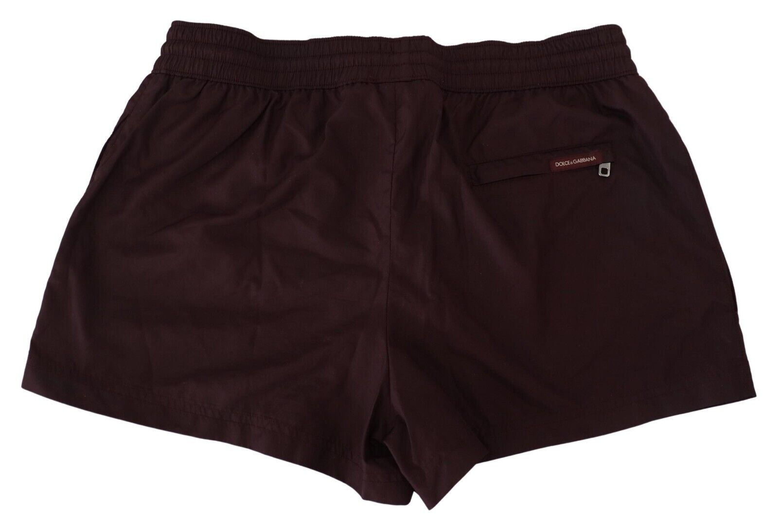 Immerse yourself in luxury even as you hit the beach with these stunning, 100% authentic Dolce & Gabbana swim trunks. These exclusive, brand-new trunks come with original tags, blending comfort with high fashion. The deep maroon color offers a touch of elegance, while the elastic waistband and multiple pockets ensure practicality and ease of wear. Benefit from an outstanding fit and the unmistakable flair of logo details that make this piece a standout.