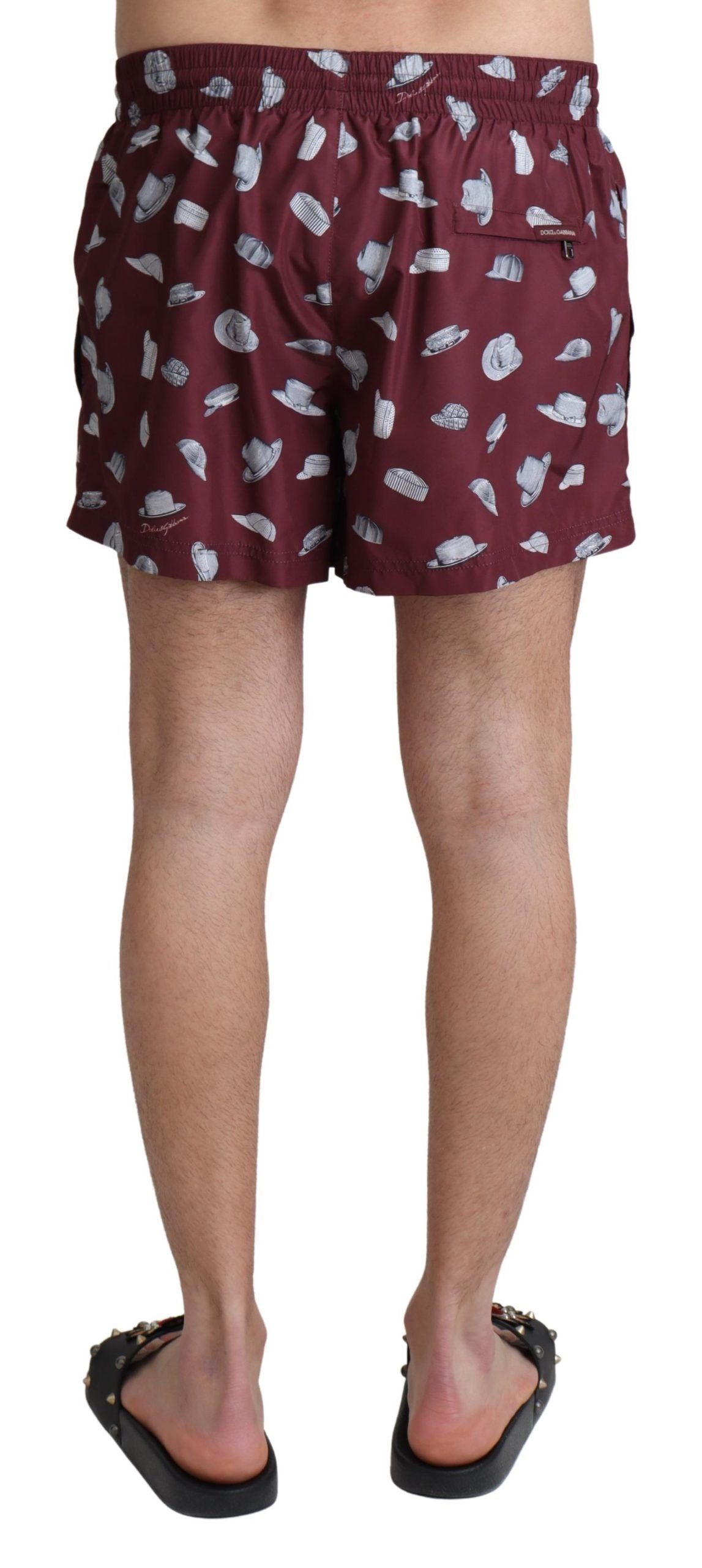 Step up your beachwear game with these absolutely stunning Maroon Elegance Men’s Swimming Trunks. Crafted by the renowned Dolce & Gabbana, these exclusive trunks exude comfort and style. Designed with a convenient drawstring tie at the waist and featuring two inset front pockets as well as a secure zip rear pocket, these swimshorts not only offer practicality but are also adorned with a playful hats print for that extra touch of luxury. Perfect for those who appreciate the blend of fashion and functionality. Dive in with confidence and make a statement this summer!