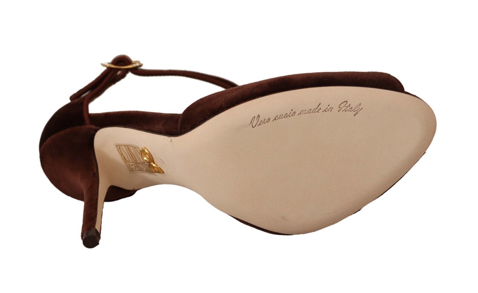 Indulge in the luxury and sophistication of Dolce & Gabbana with these exquisite Maroon Devotion T-Chain Heels Sandals. These stunning heels are a testament to Italian craftsmanship, featuring a captivating gold DEVOTION heart that adds a touch of elegance to any outfit. The unique blend of materials provides both comfort and durability, while the rich maroon color paired with gold metal detailing creates an aura of allure. Step out in style with these designer sandals that come complete with a leather sole stamped with the iconic logo.