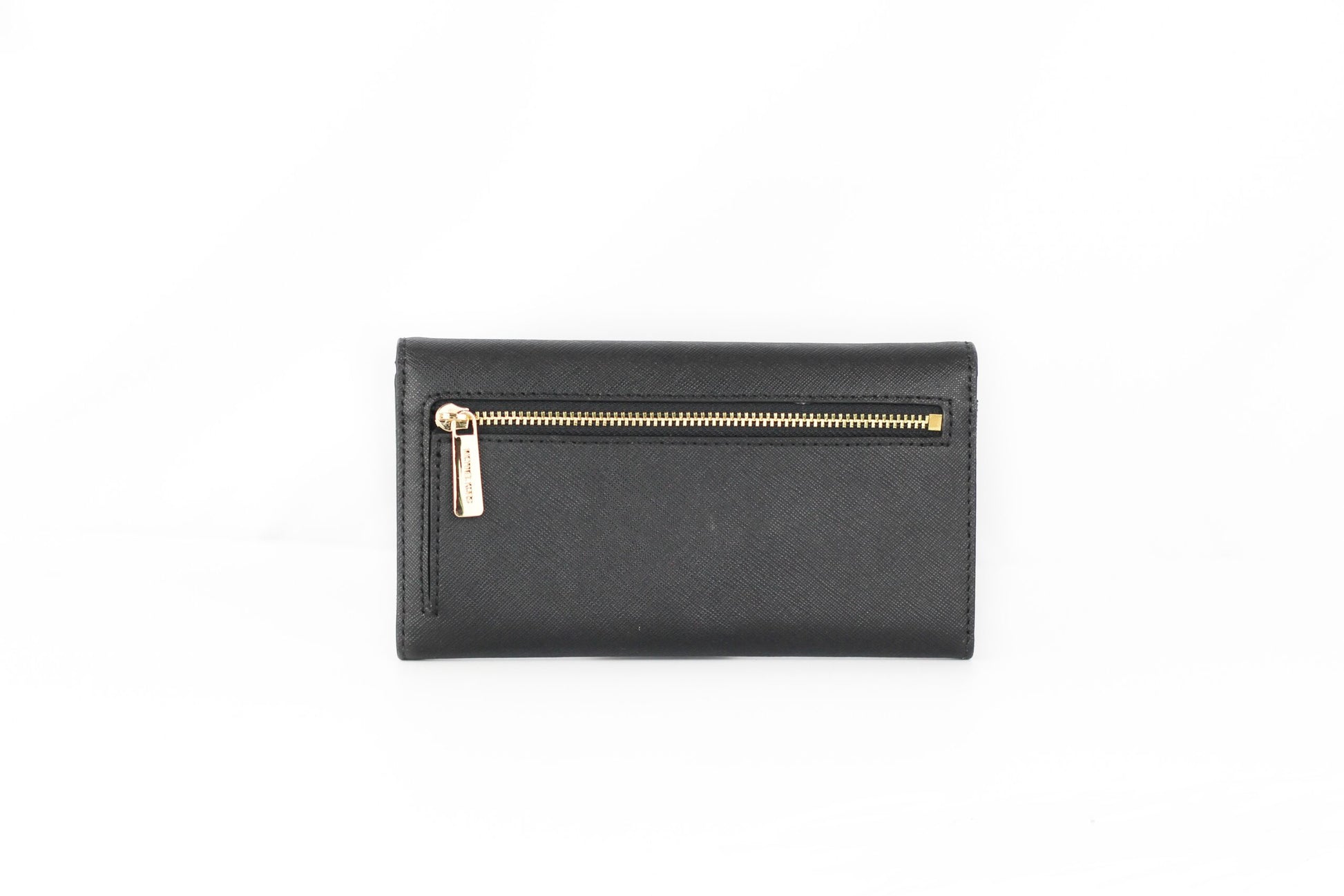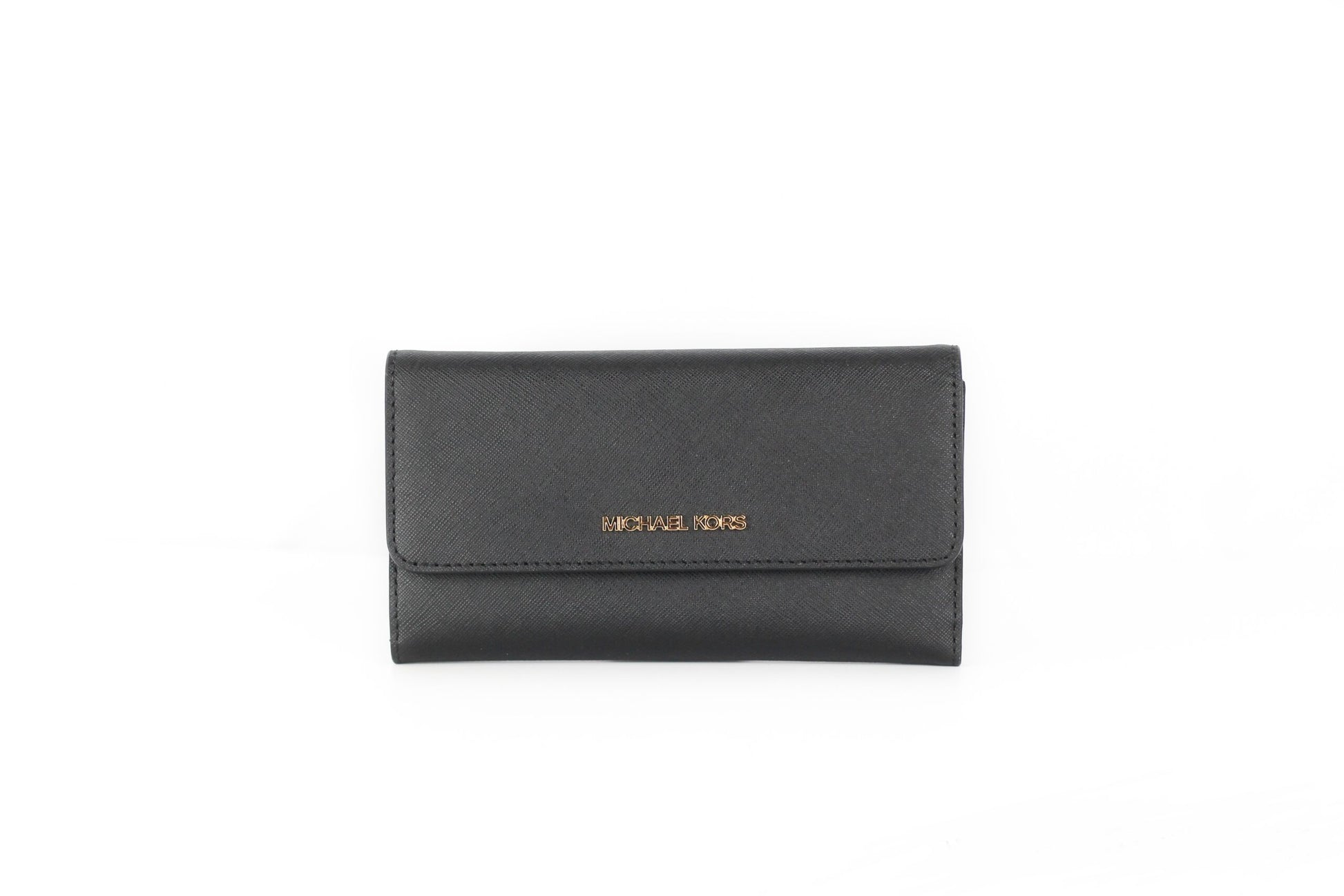 Michael Kors Jet Set Travel Leather Large Trifold Wallet Clutch Black