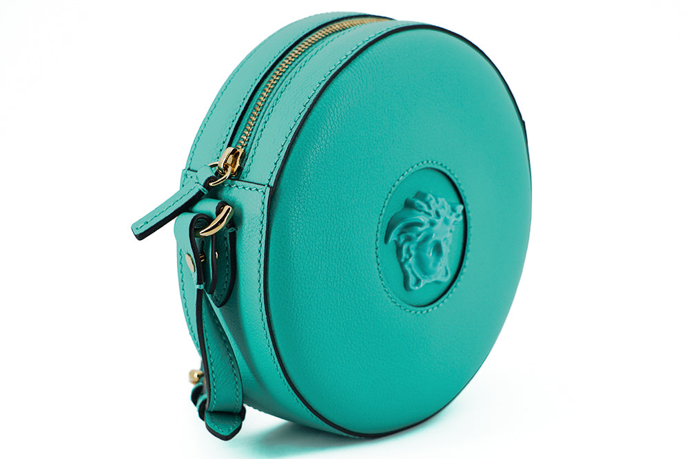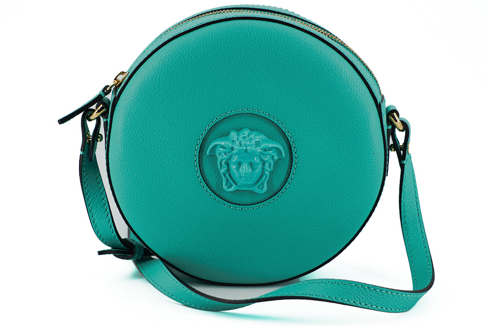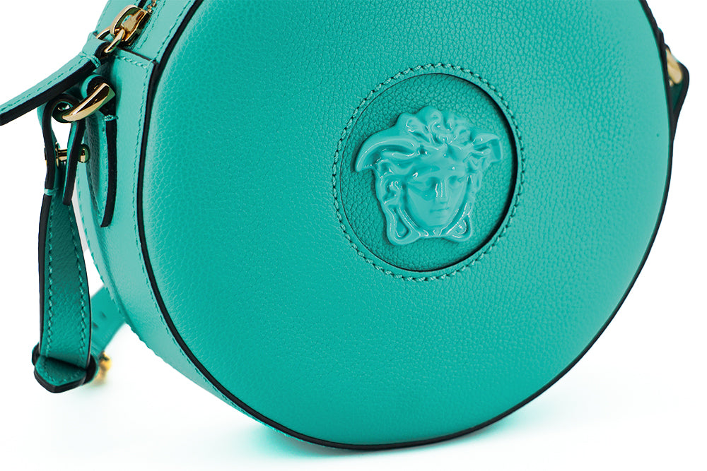 Step into the realm of luxury with this exquisite Versace round shoulder bag. Crafted from the finest calf leather, its mint green hue is a breath of fresh air in your accessory collection. This brand new item comes equipped with tags and its own dustbag, ensuring its pristine condition. The bag boasts a stylish medusa head logo hardware that immediately signals its pedigree. Suitable for various carrying styles, it features a removable and adjustable leather shoulder strap. Whether you prefer it on your shoulder or across the body, this bag adjusts to fit your look effortlessly.