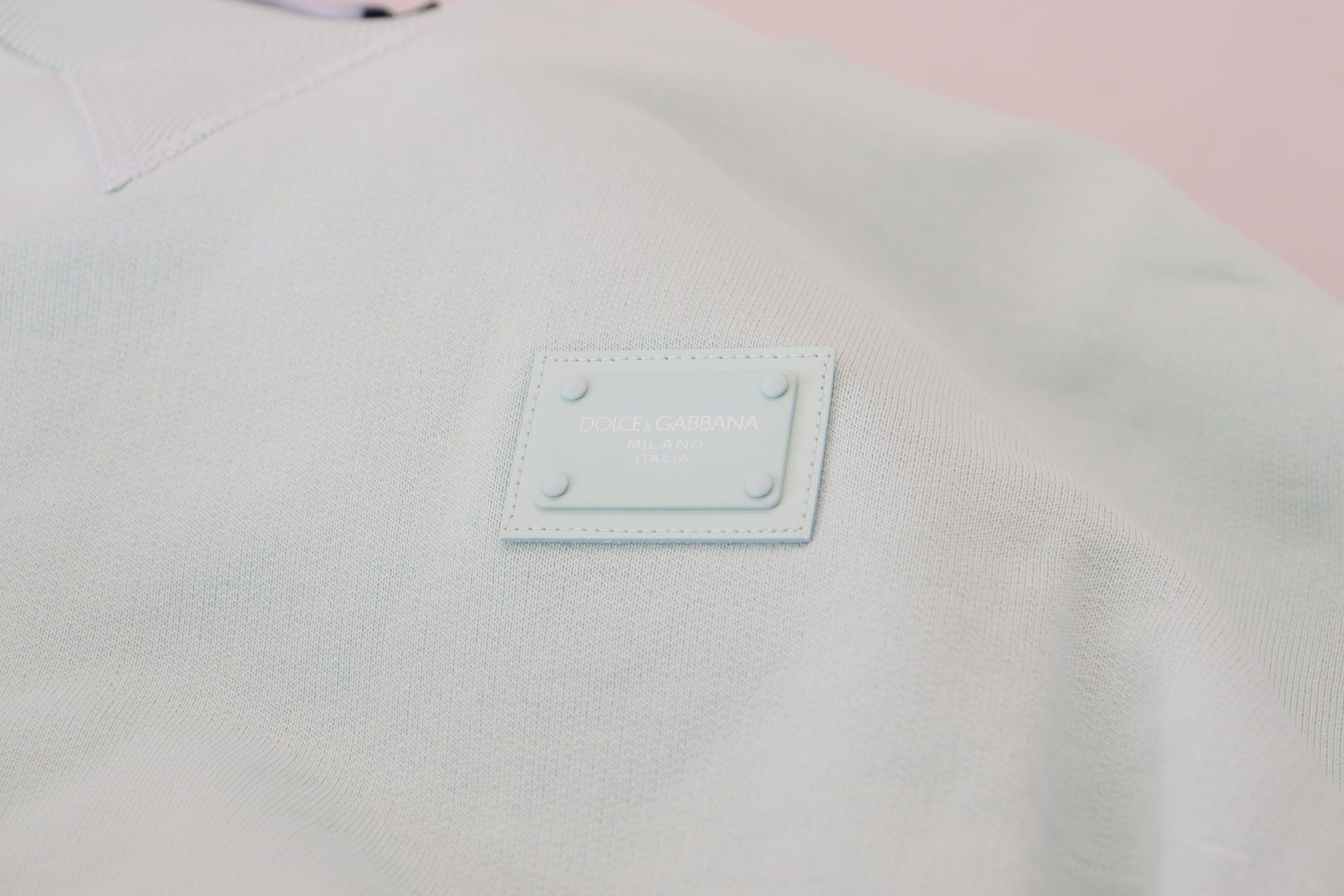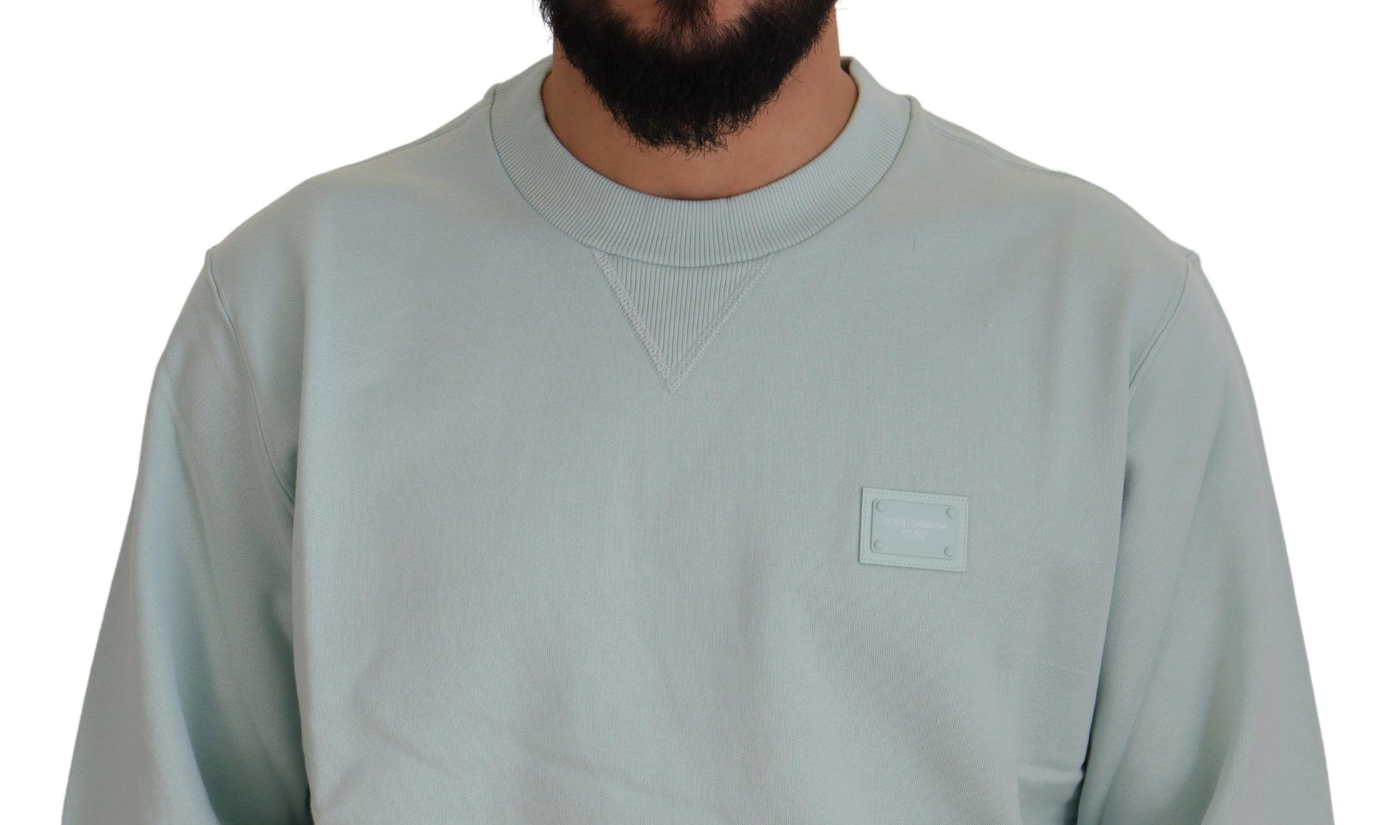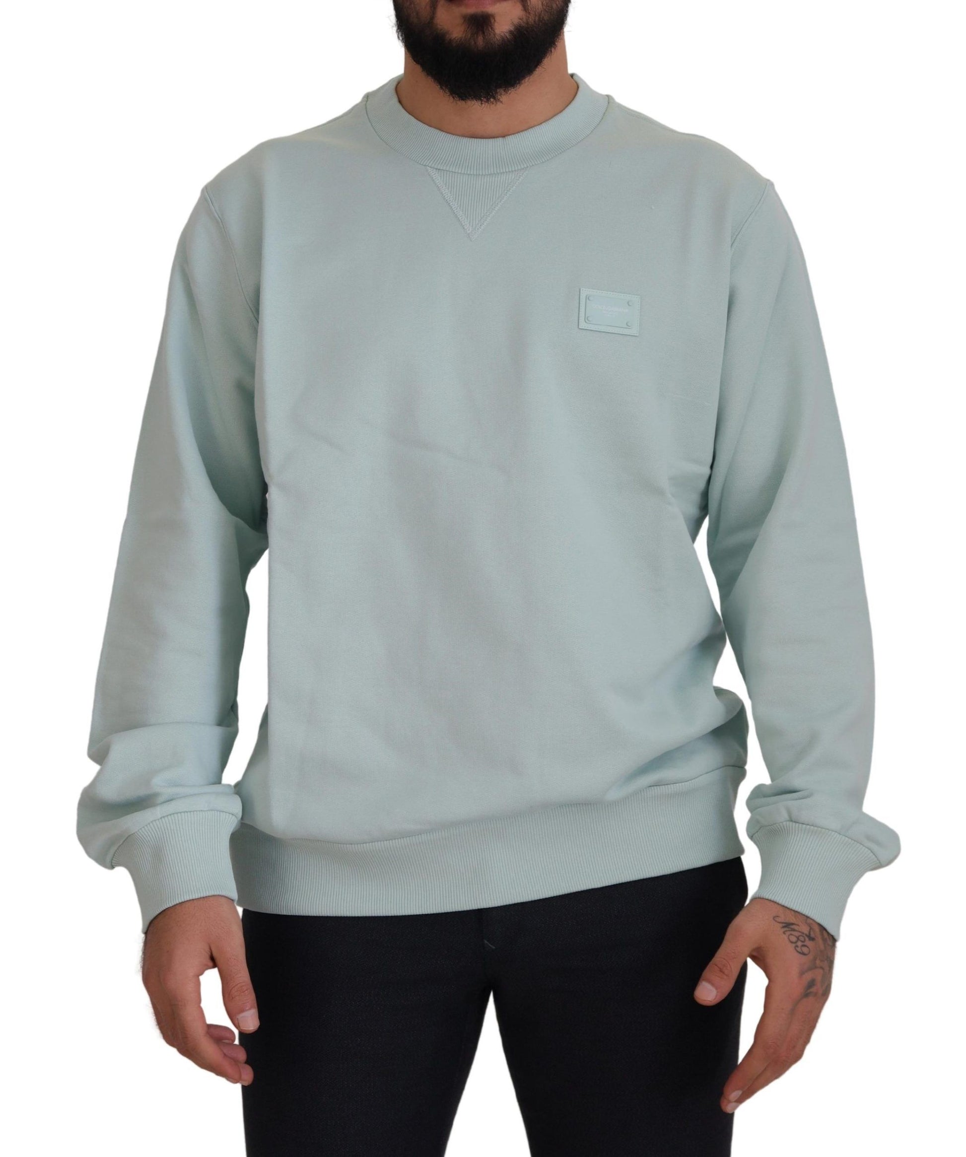 Exude effortless sophistication with this stunning mint green pullover sweater from Dolce & Gabbana. Crafted from 100% luxurious cotton and made in Italy, it features a classic crewneck and a subtle logo plaque that adds a touch of timeless elegance to your wardrobe.