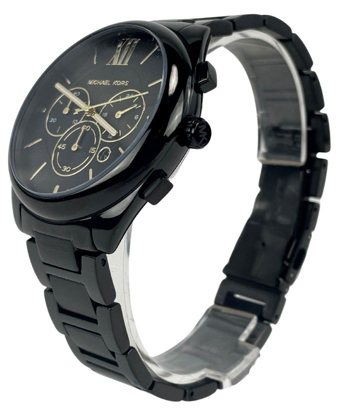 MK7110 Janelle Black Gold Stainless Steel Chronograph Wrist Watch