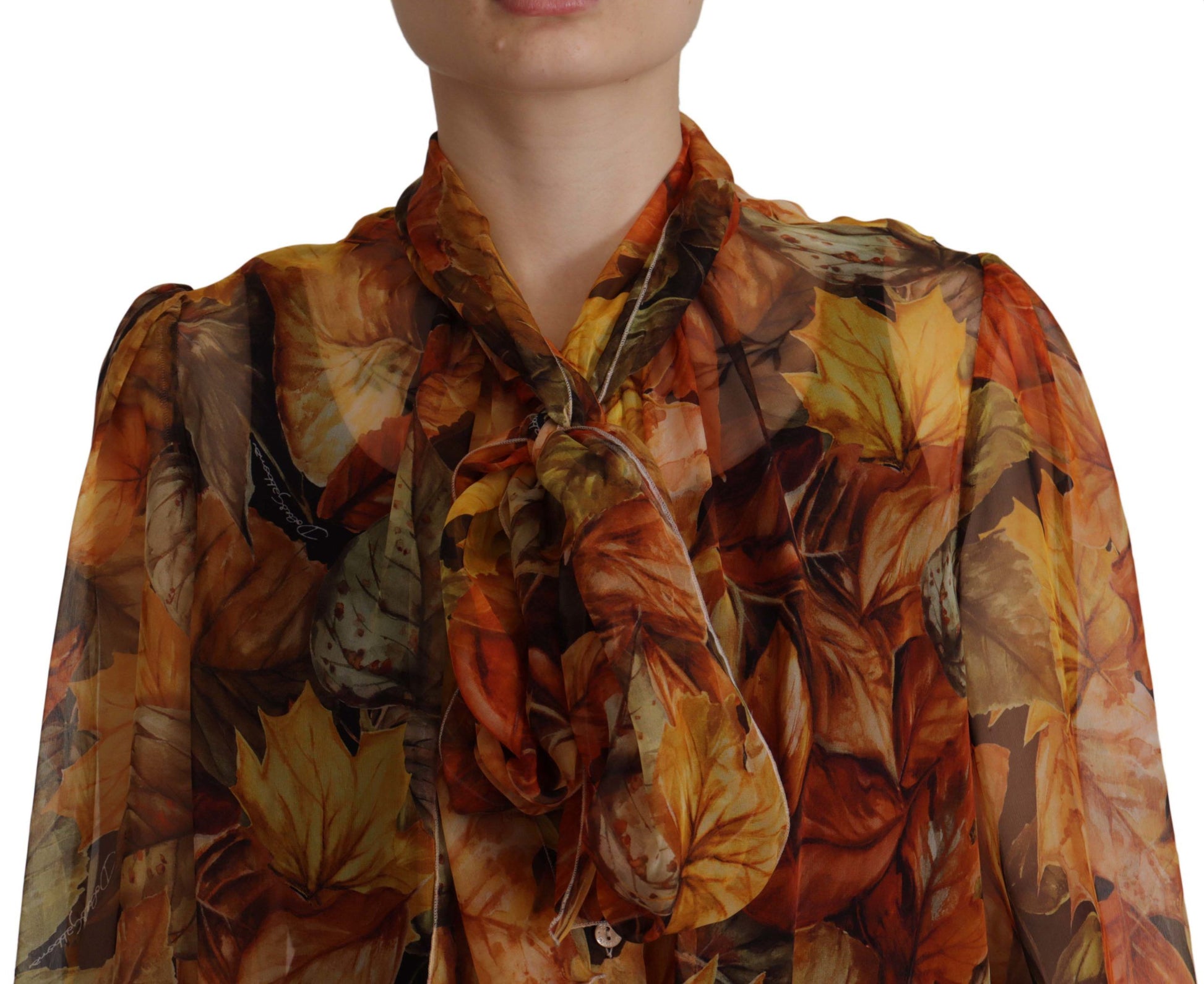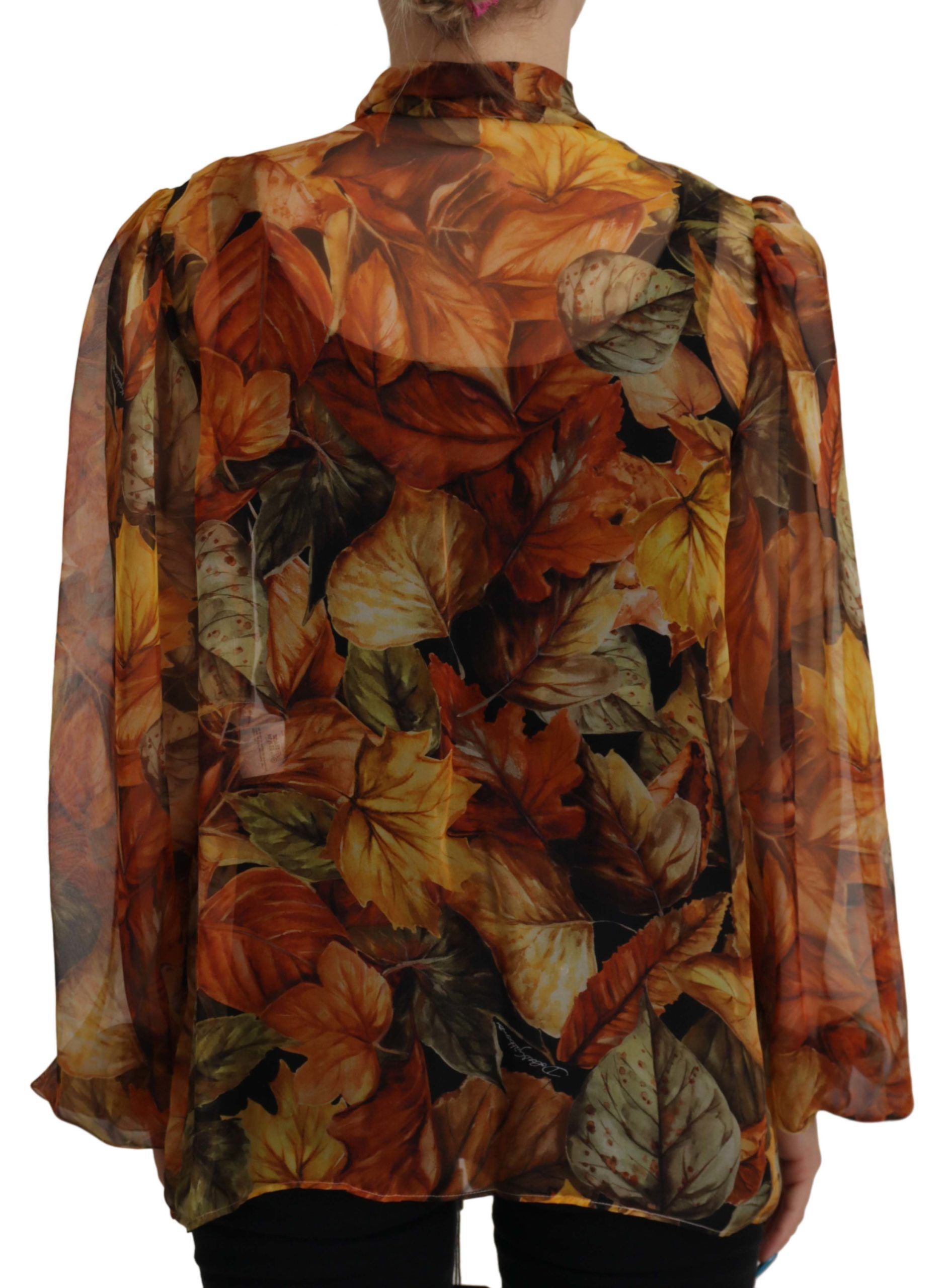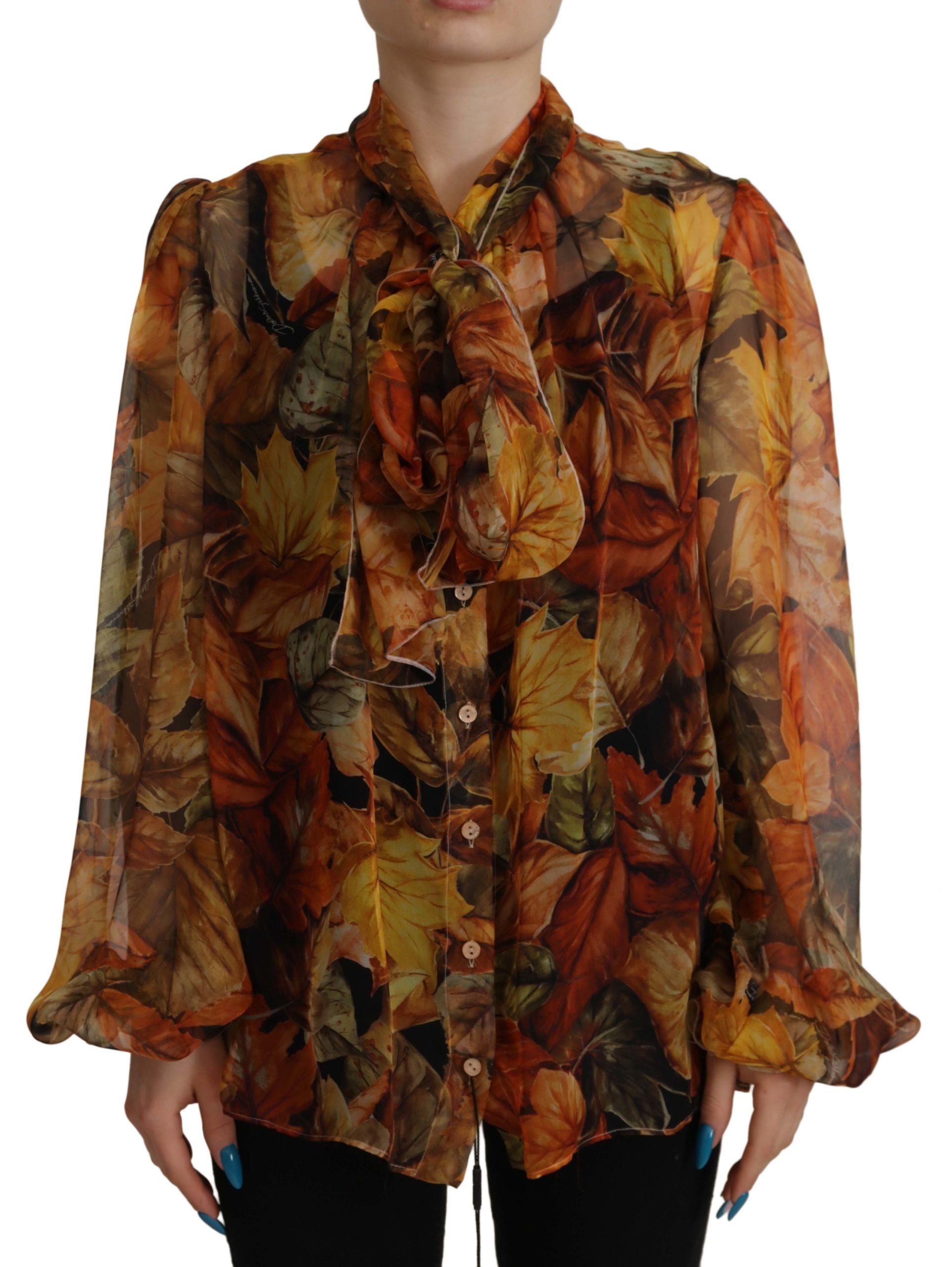 Indulge in the exquisite elegance of this multicolor ascot collar button front blouse top, crafted from the finest silk for a luxurious touch. This brand new, 100% authentic top from Dolce & Gabbana boasts a distinctive ascot collar, adding a sophisticated and timeless flair to your ensemble. Perfectly constructed in Italy, this garment merges impeccable tailoring with the house’s renowned attention to detail.