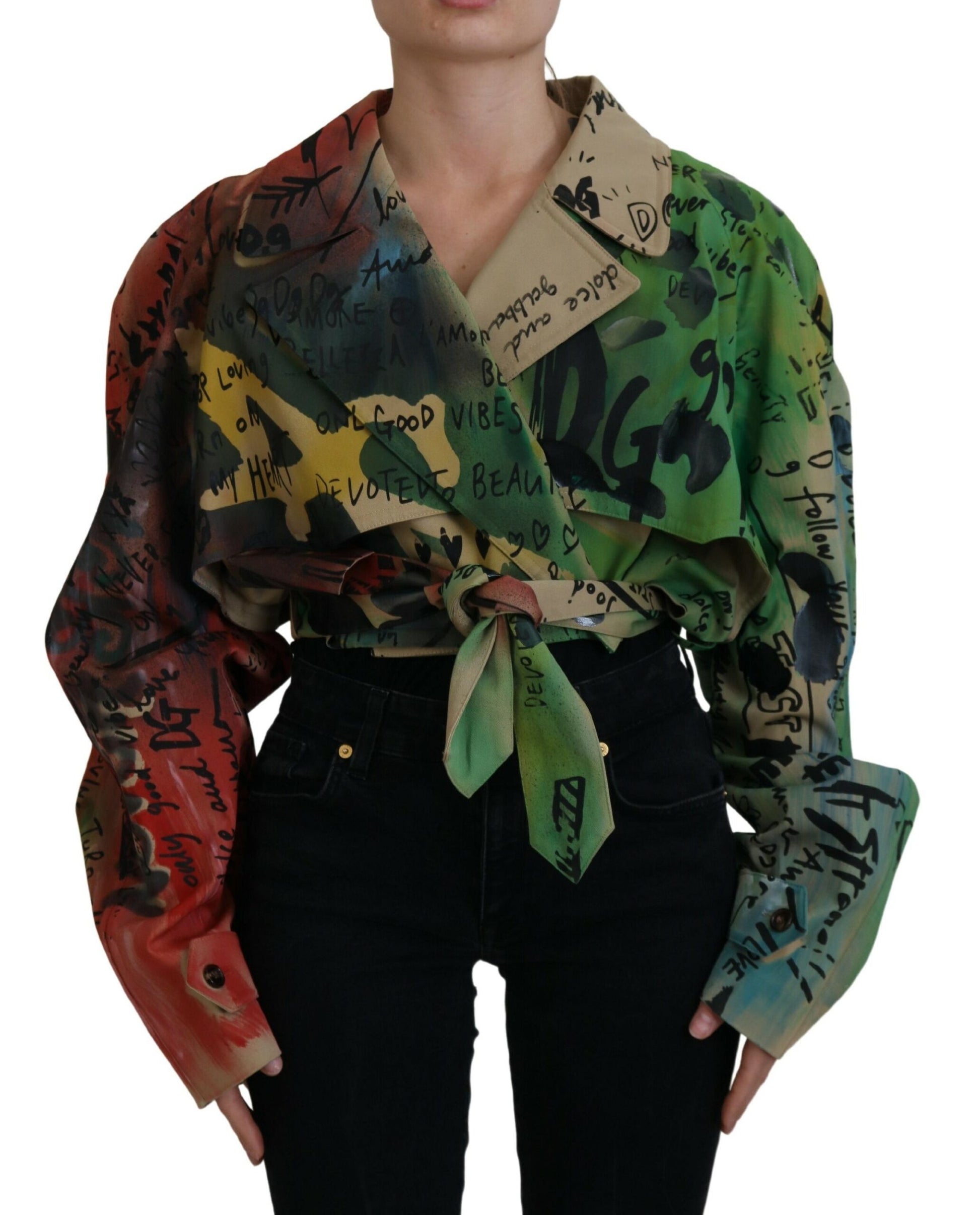 Indulge in the epitome of Italian luxury with this exquisite Dolce & Gabbana long sleeves cropped jacket. Renowned for their stunning designs and premium quality, this piece is sure to make a statement wherever you go. Tailored to a regular fit, the jacket features a vibrant multicolor pattern that radiates style and sophistication. Perfect for adding a touch of glamour to any ensemble, it’s crafted from a blend that offers both comfort and a slight stretch. Adorned with the brand’s signature logo details, this jacket is the embodiment of high craftsmanship made in Italy.