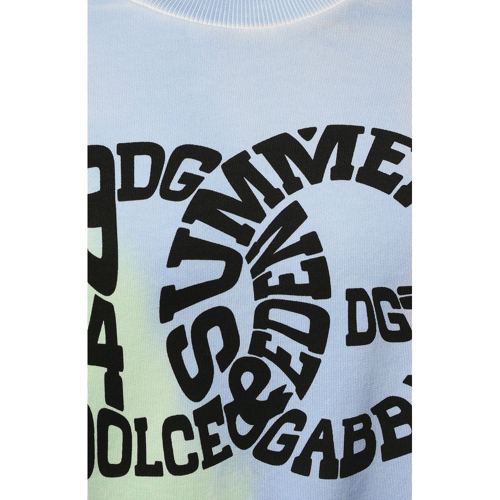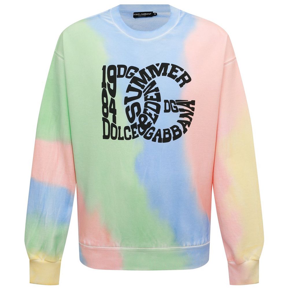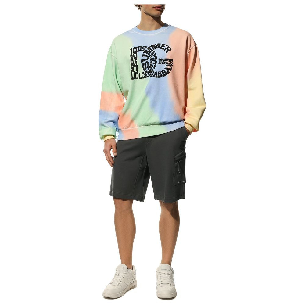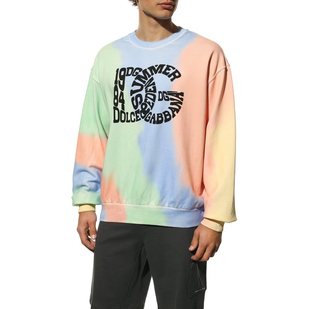 Dolce & Gabbana garment-dyed cotton sweatshirt with multicolored print and logo print on the front, ribbed cuffs, collar and hem