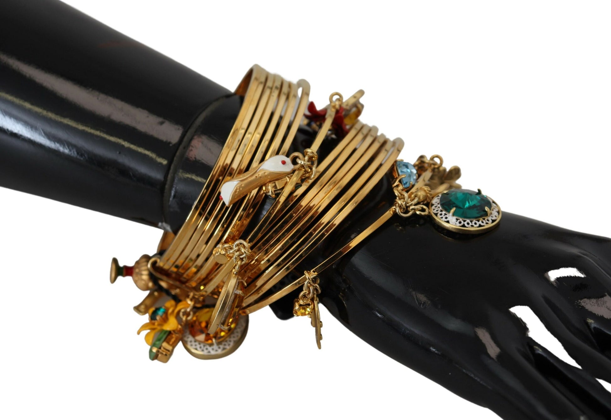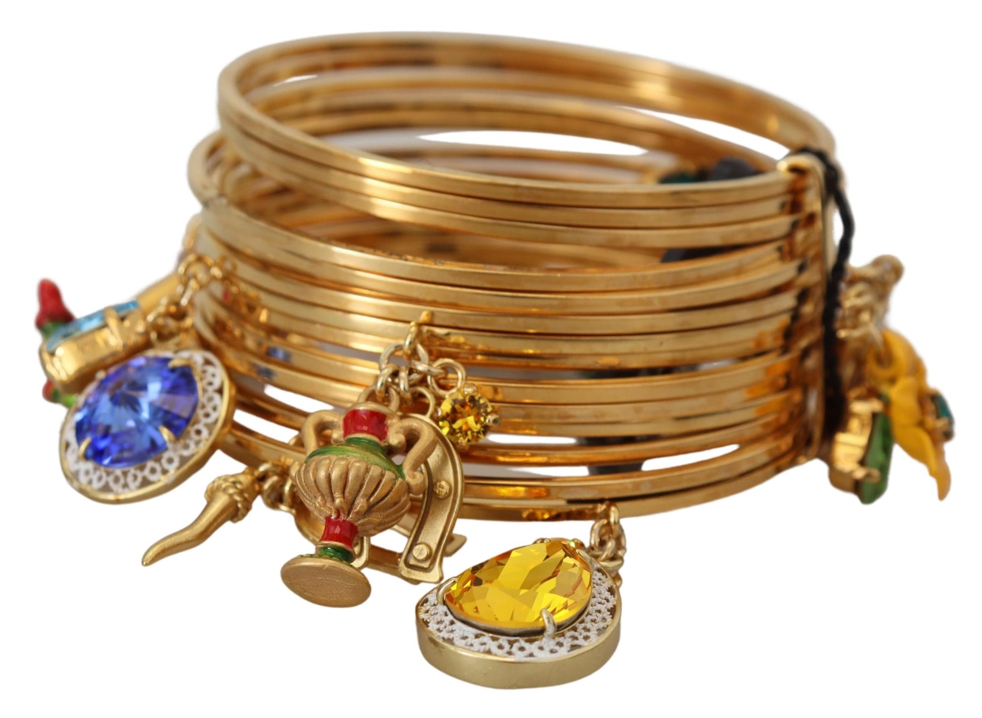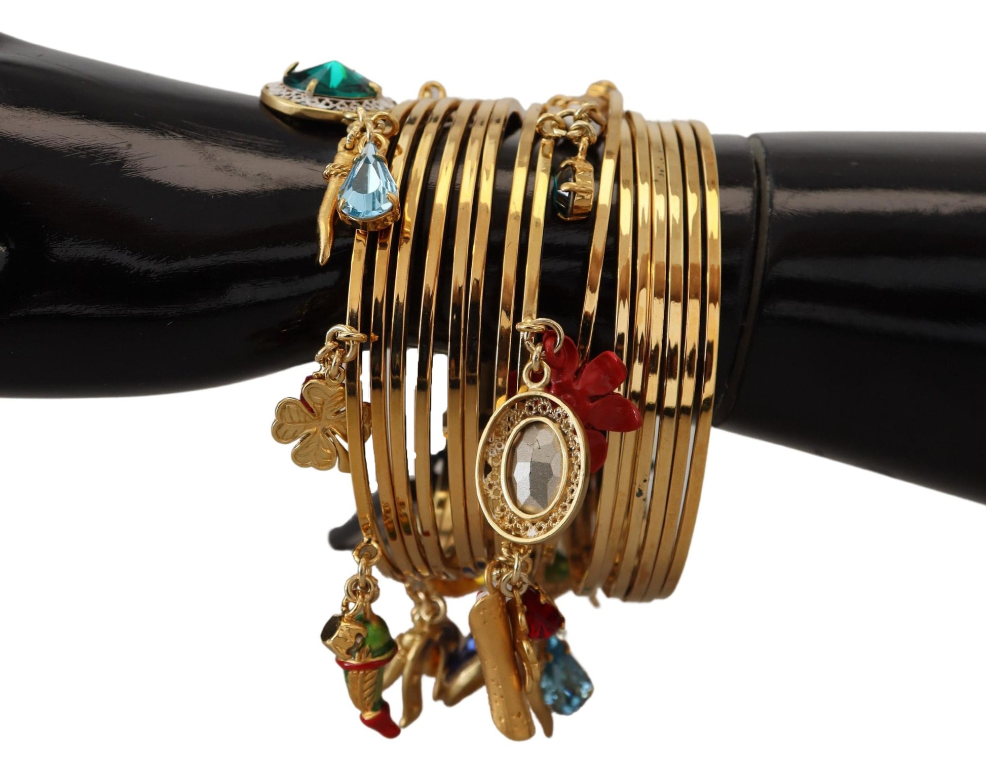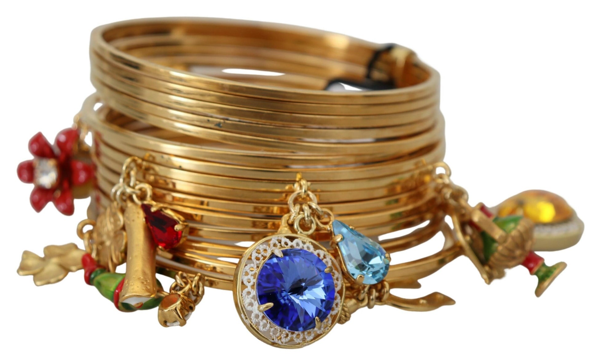 Embrace timeless elegance with this luxurious Dolce & Gabbana bangle bracelet, perfect for adding a touch of glamour to any outfit. Adorned with multicolored crystals, this bracelet blends classic charm with contemporary style.
