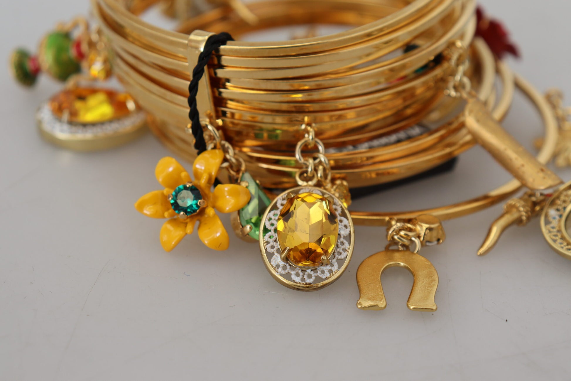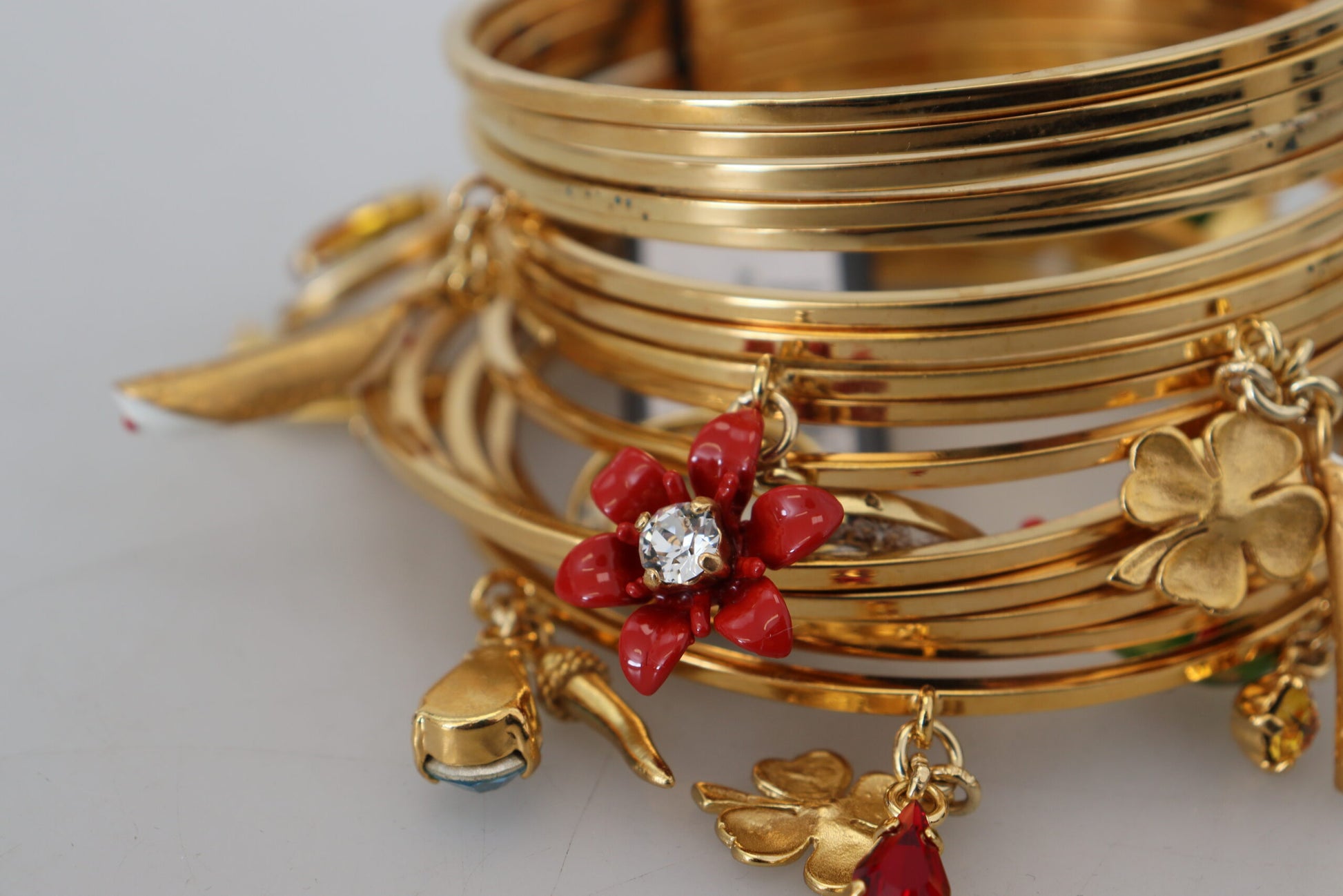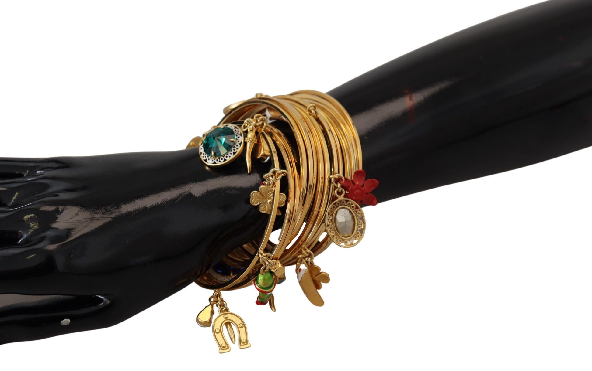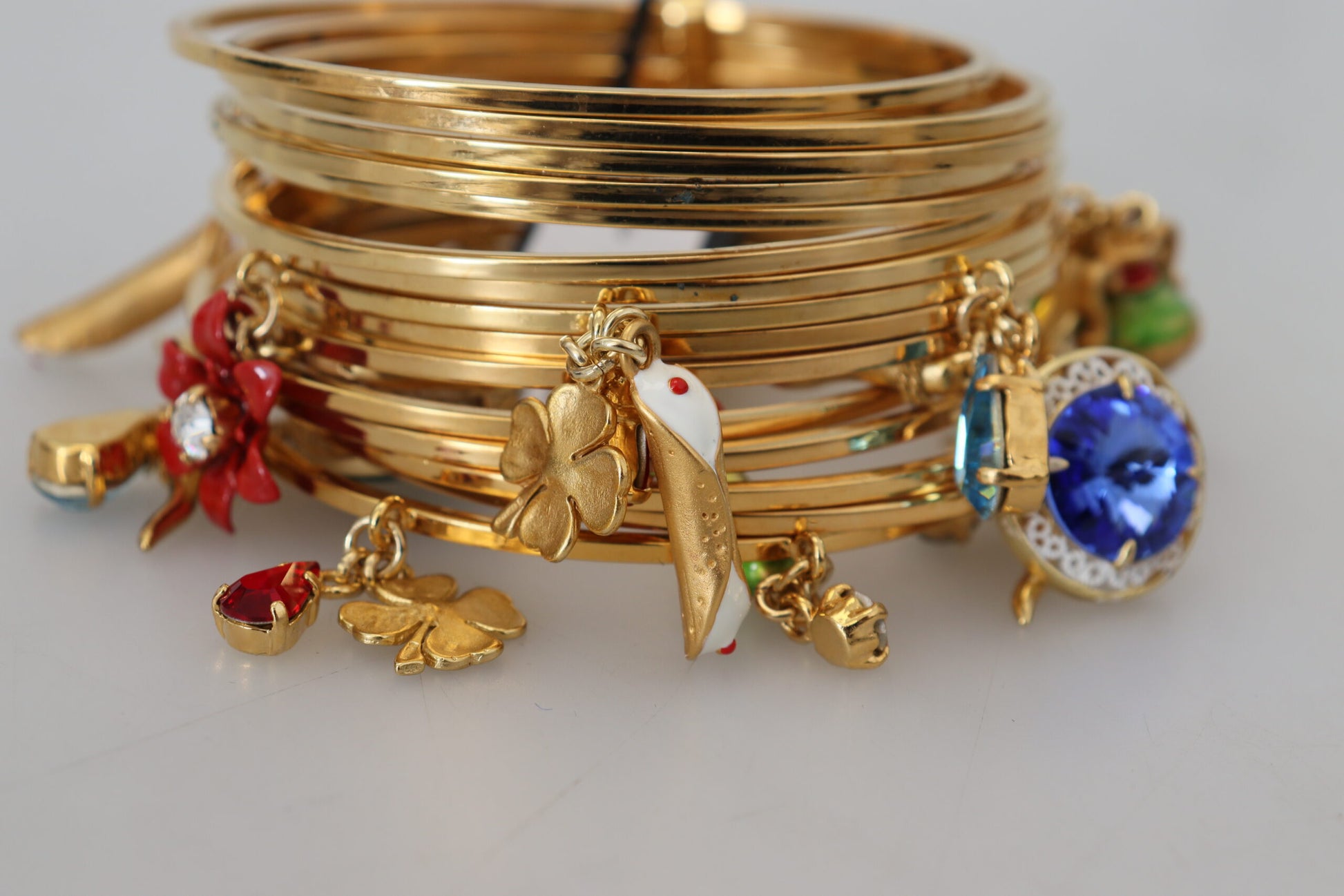 Embrace timeless elegance with this luxurious Dolce & Gabbana bangle bracelet, perfect for adding a touch of glamour to any outfit. Adorned with multicolored crystals, this bracelet blends classic charm with contemporary style.