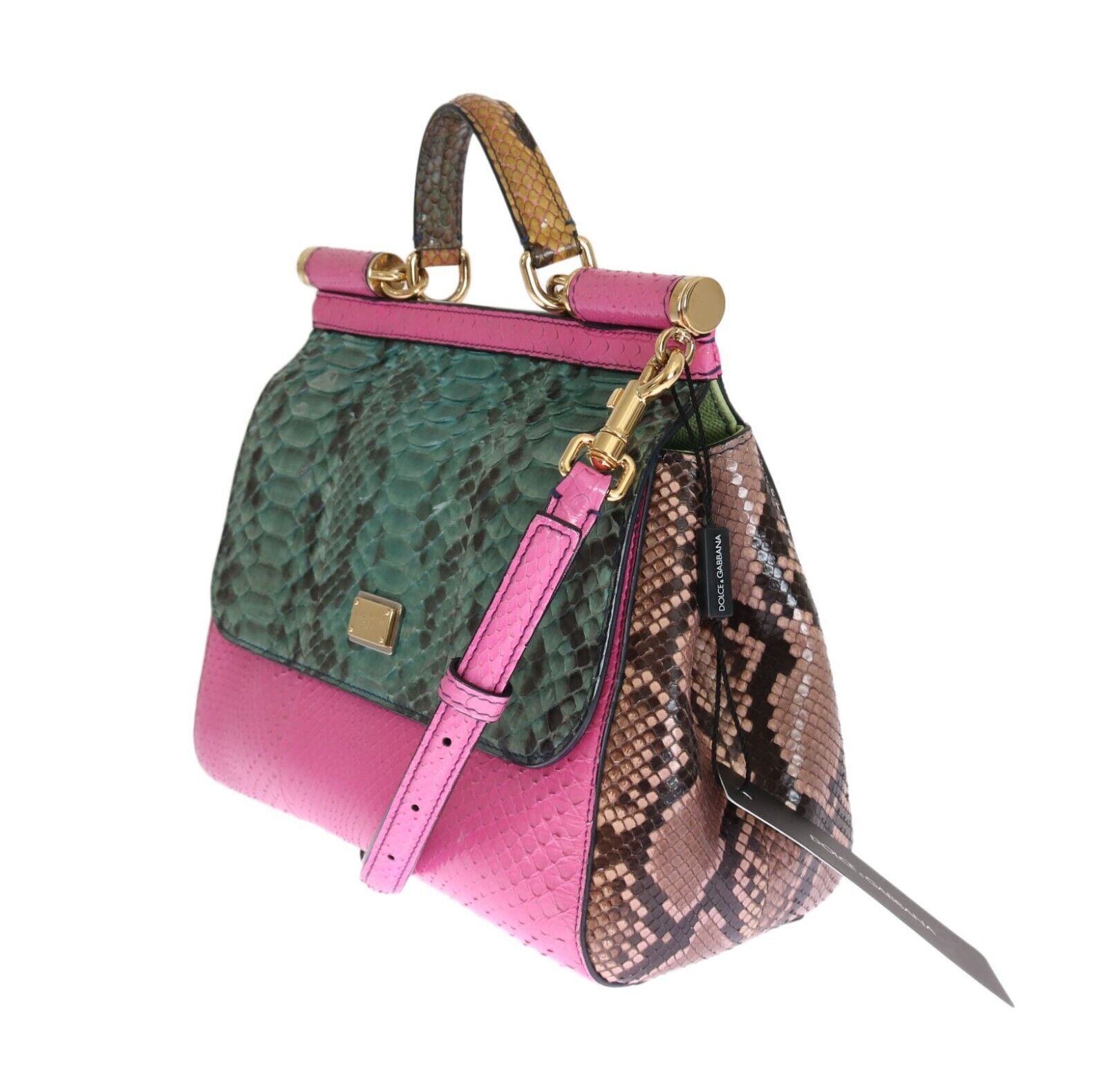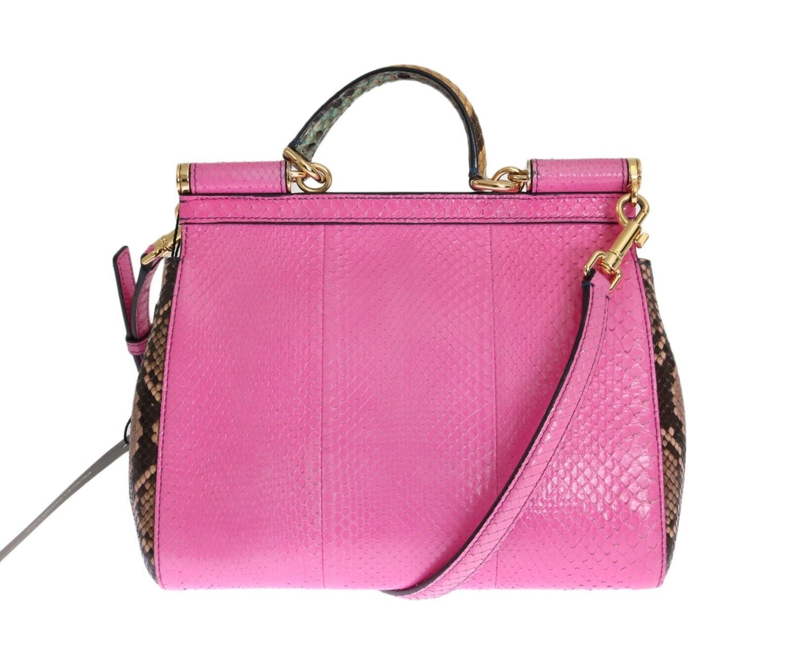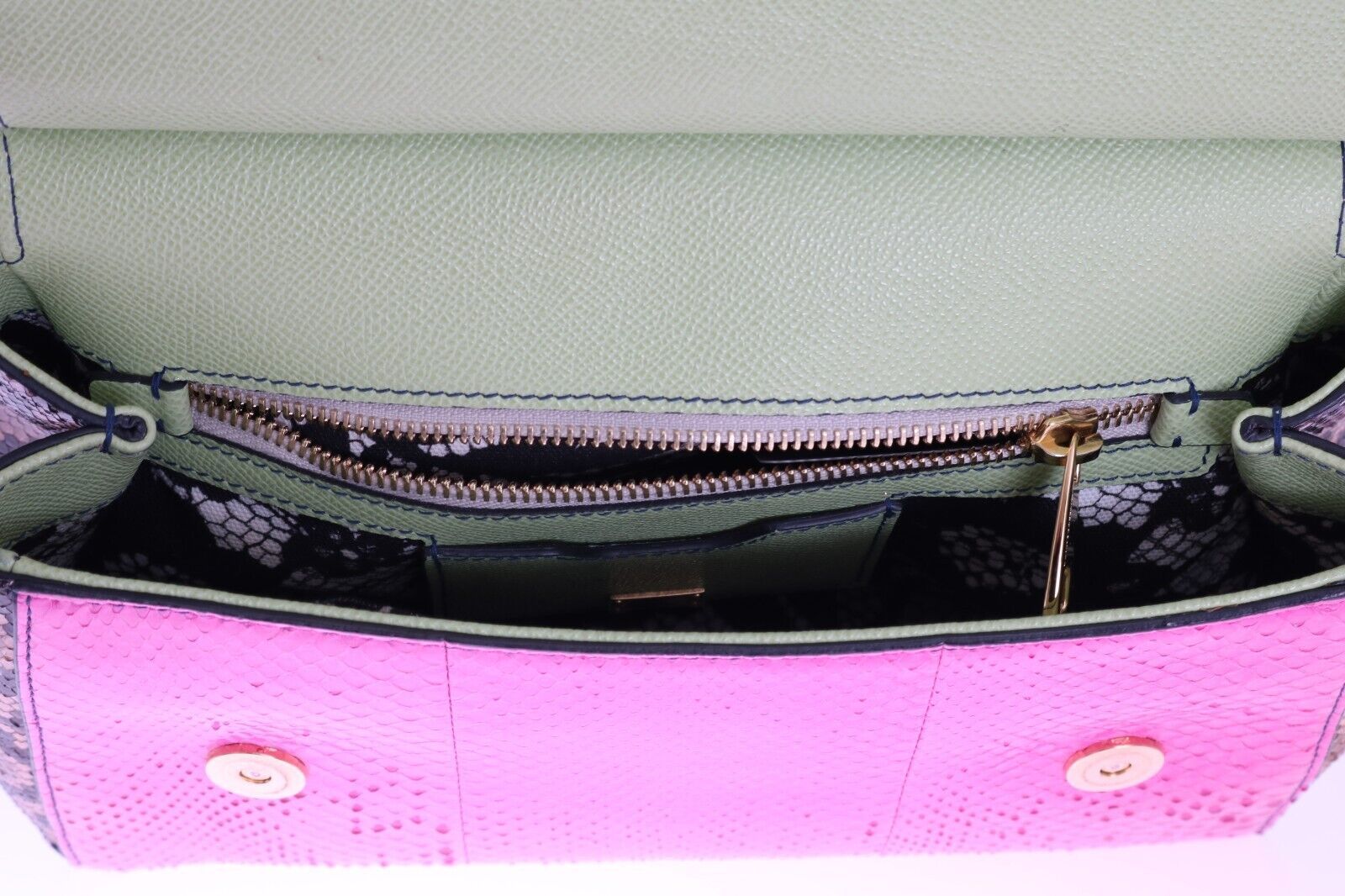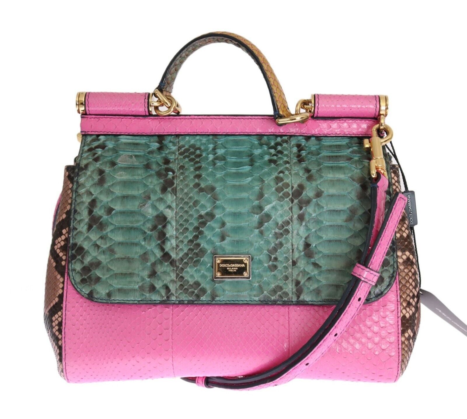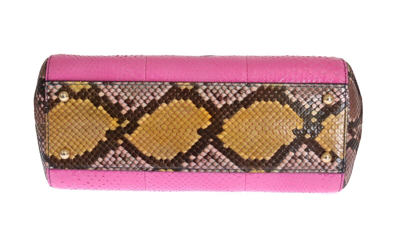Material: Exotic leathers Color: Multicolor (pink, blue, brown) Handle: One handle, adjustable and detachable shoulder strap Closure: Magnet flap closure Interior: Inside pocket with zipper, canvas lining, logo details Origin: Made in Italy Size: 22cm x 28cm x 11cm (medium) Strap: 110cm