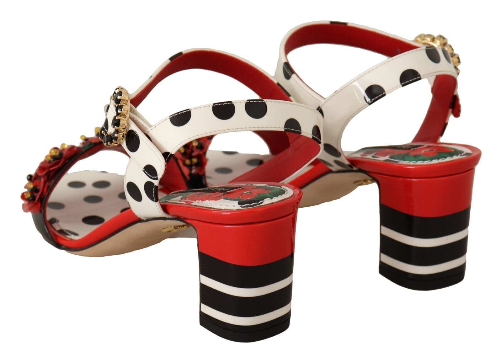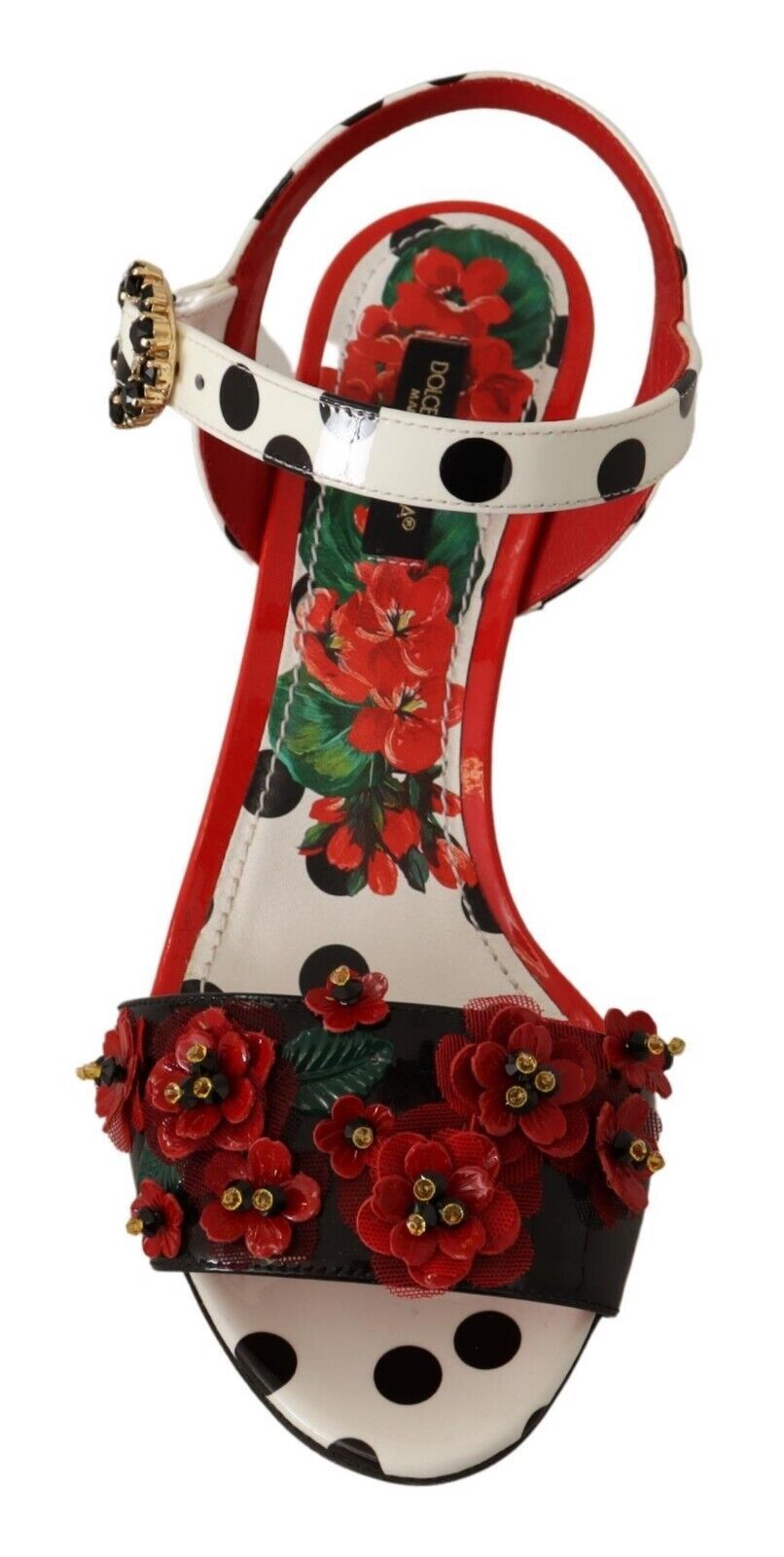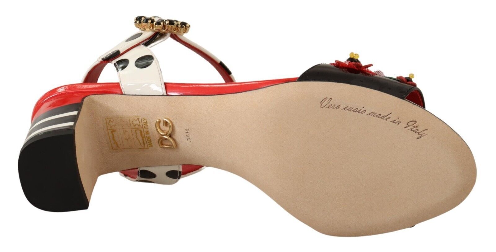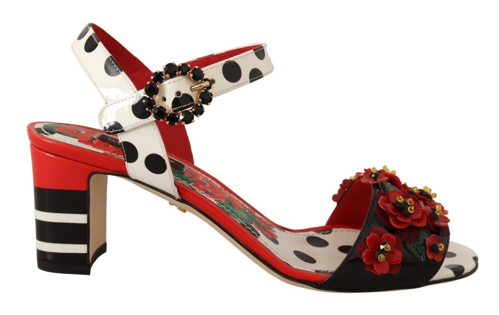 Inspired by the enchanting gardens of Sicily, these stunning Dolce & Gabbana Keira Sandals are a masterpiece of Italian craftsmanship. Beautifully designed with a vivid Portofino print and adorned with sparkling black crystals, these heels merge elegance with a touch of whimsy. Crafted from the finest leather, they boast a comfortable yet stable low heel, suitable for any special occasion.