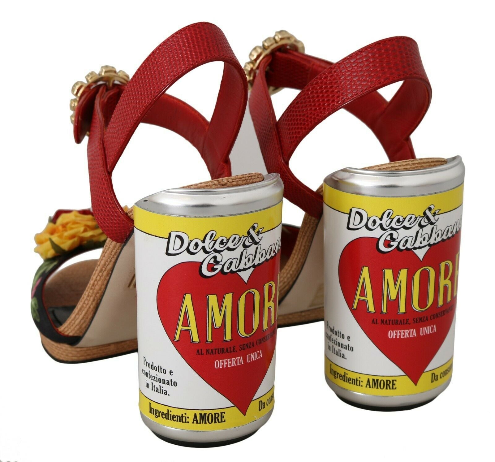 Step into a world of luxury with these exquisite Dolce & Gabbana tomato-can Amore runway sandals. Crafted with the utmost precision, these strappy sandals showcase a vibrant multicolor palette, adorned with satin flowers, a romantic rose print, and dazzling crystal embellishments. The meticulously selected materials emphasize both quality and comfort, featuring a composition of 47% calf leather, 21% capra, and 32% viscose for a touch of sophistication. Complete with a leather sole for durability, these Made-in-Italy sandals are a testament to exemplary craftsmanship. Whether for a gala or an elegant outing, these sandals offer both a high-fashion statement and lasting comfort.