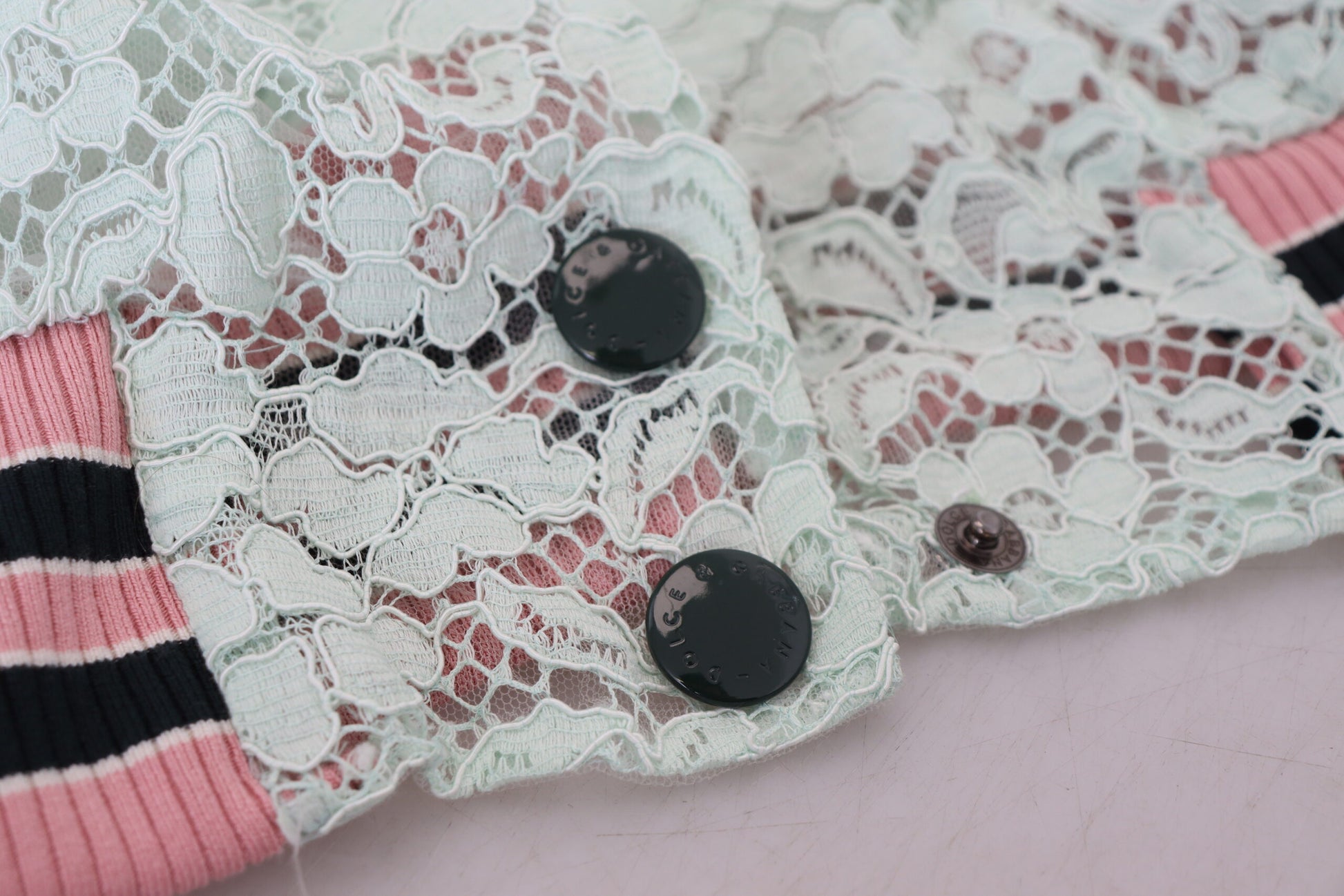 Step into the season with the epitome of elegance with this gorgeous, brand new long sleeves bomber jacket from Dolce & Gabbana. With its vibrant multicolor floral lace design, this piece is a testament to luxury and high craftsmanship, perfect for those seeking a statement piece that is both sophisticated and versatile. Made in Italy, it boasts a regular fit and is adorned with subtle logo details for an extra touch of exclusivity.