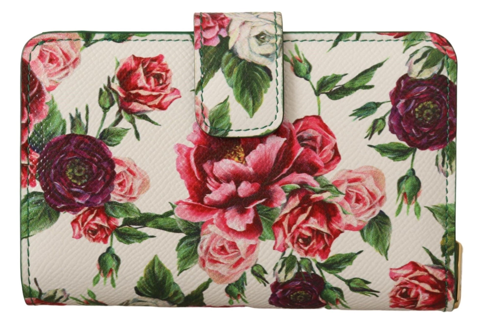 Enhance your accessory collection with this exquisite Multicolor Floral Leather Continental Wallet from Dolce & Gabbana. Crafted in Italy from luxurious leather, this wallet is a symphony of elegant design and practicality. The opulent gold metal detailing complements the vibrant floral print, and its thoughtful interior, featuring cardholder and bill slots, ensures all your essentials are stylishly secured. It’s the perfect blend of fashion and function for the discerning woman.