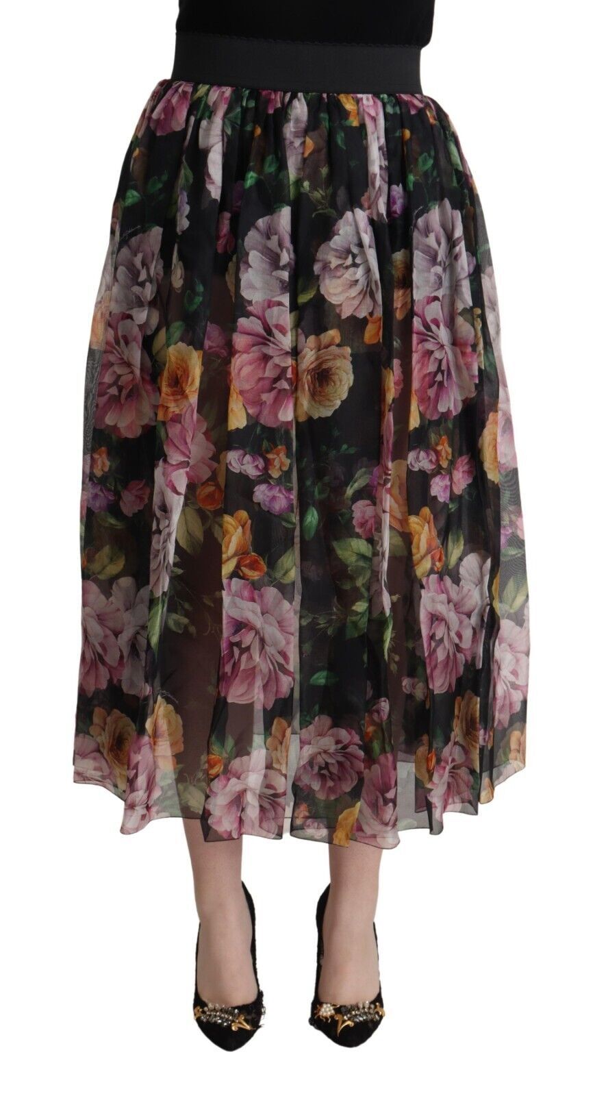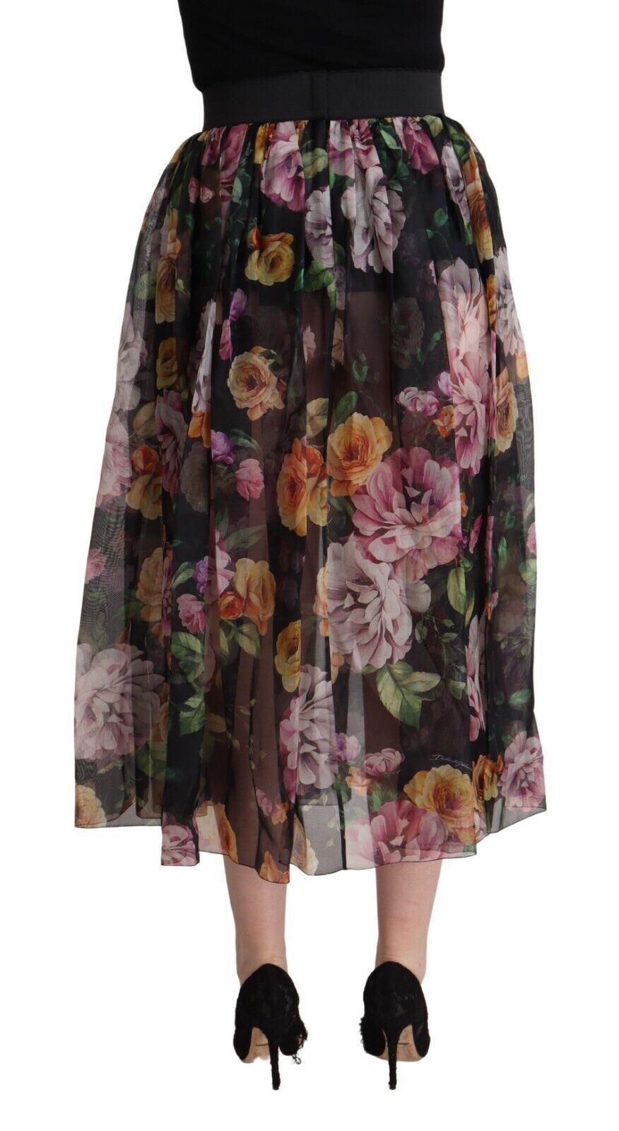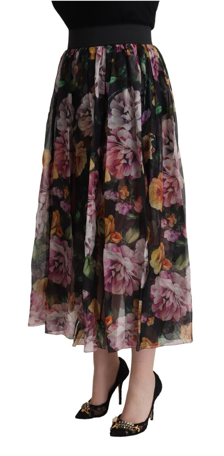 Indulge in the romantic elegance of this 100% Authentic Dolce & Gabbana floral printed pleated a-line midi skirt. Perfectly tailored to accentuate your figure, this high-waisted piece is a versatile addition to your wardrobe. Featuring a multicolor palette, it exudes charm and sophistication with each pleat. Crafted in Italy, this skirt comes with a smooth silk stretch inner lining for utmost comfort and a seamless zipper closure for a refined finish.