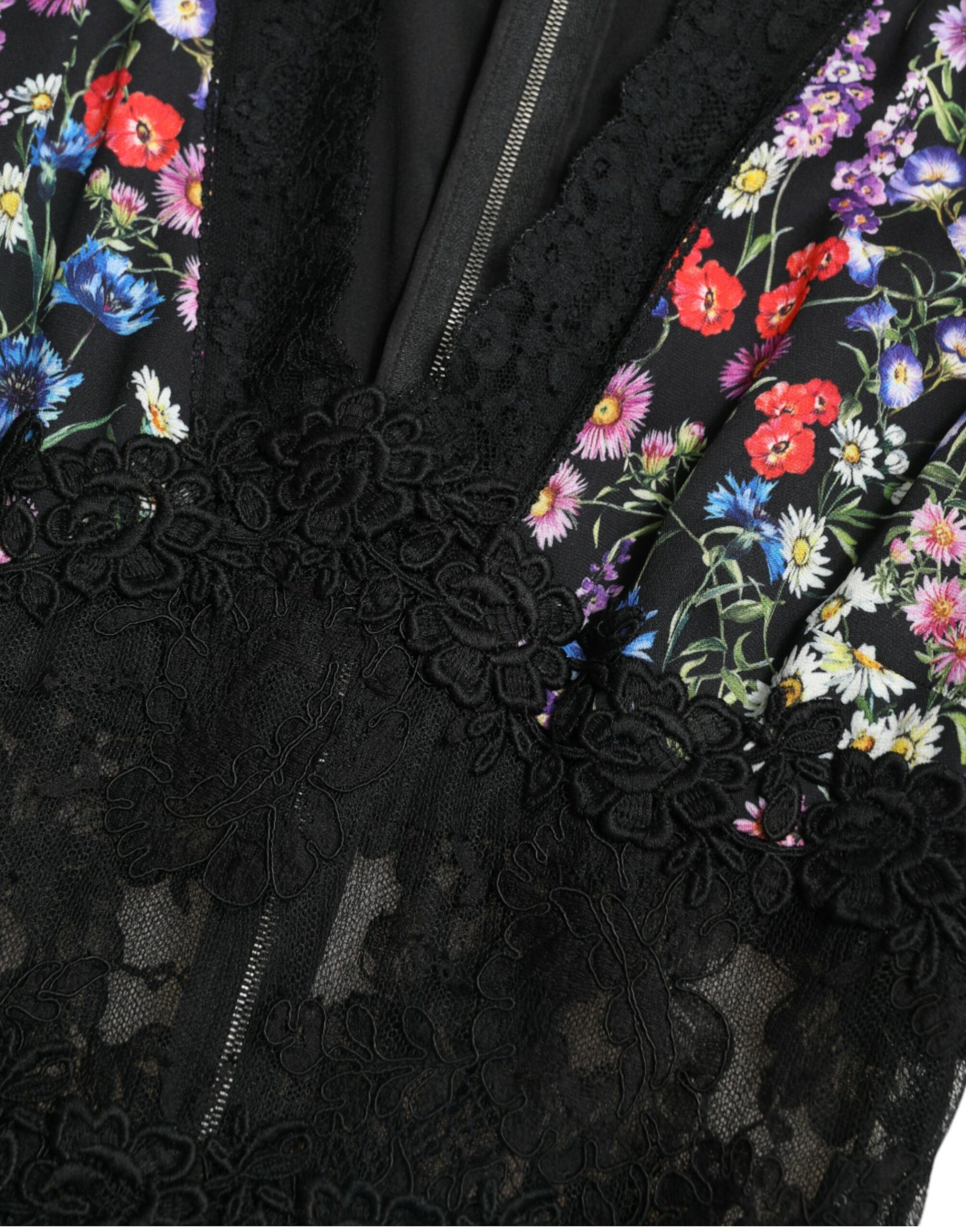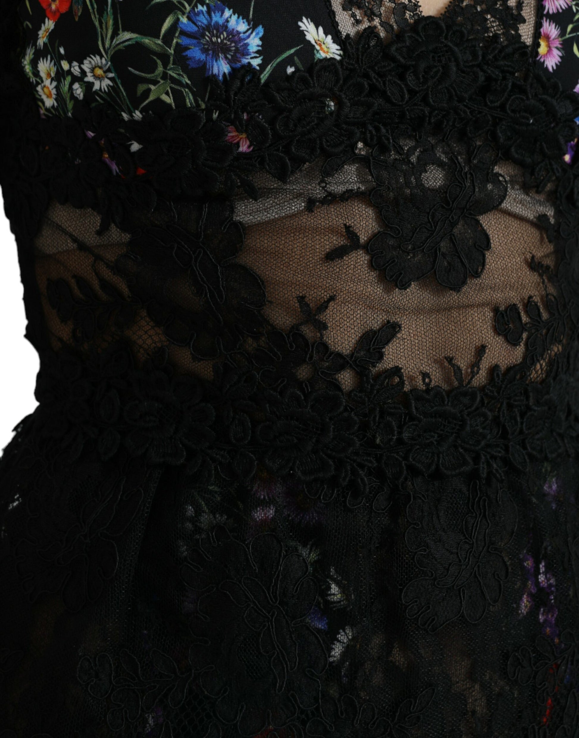 Embrace elegance with a stunning multicolor sheath dress by Dolce & Gabbana. This gorgeous piece flaunts a delightful floral print paired with delicate lace trim for a truly exquisite look. Expertly crafted in Italy, it comes new with tags, ensuring 100% authenticity and unparalleled quality.