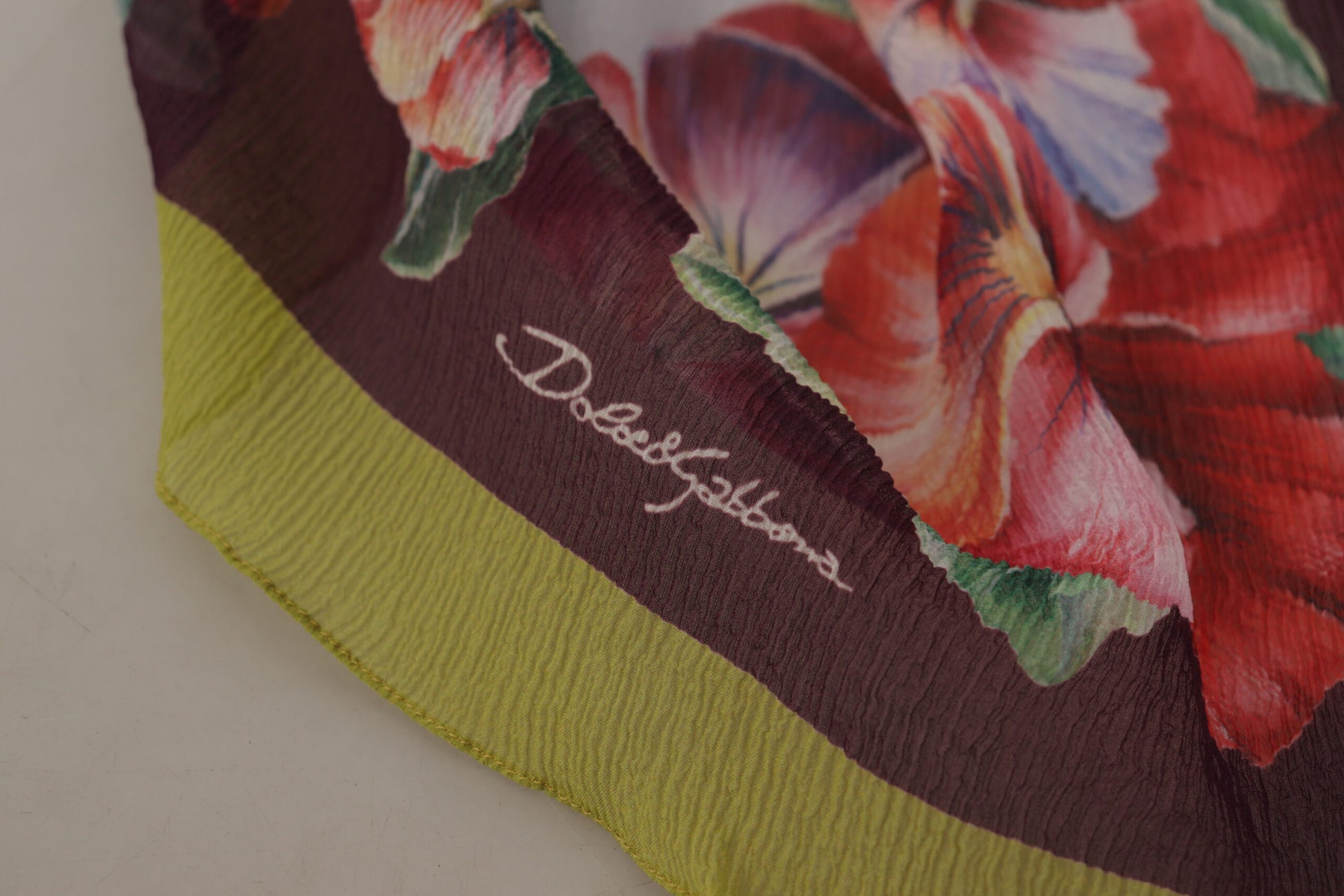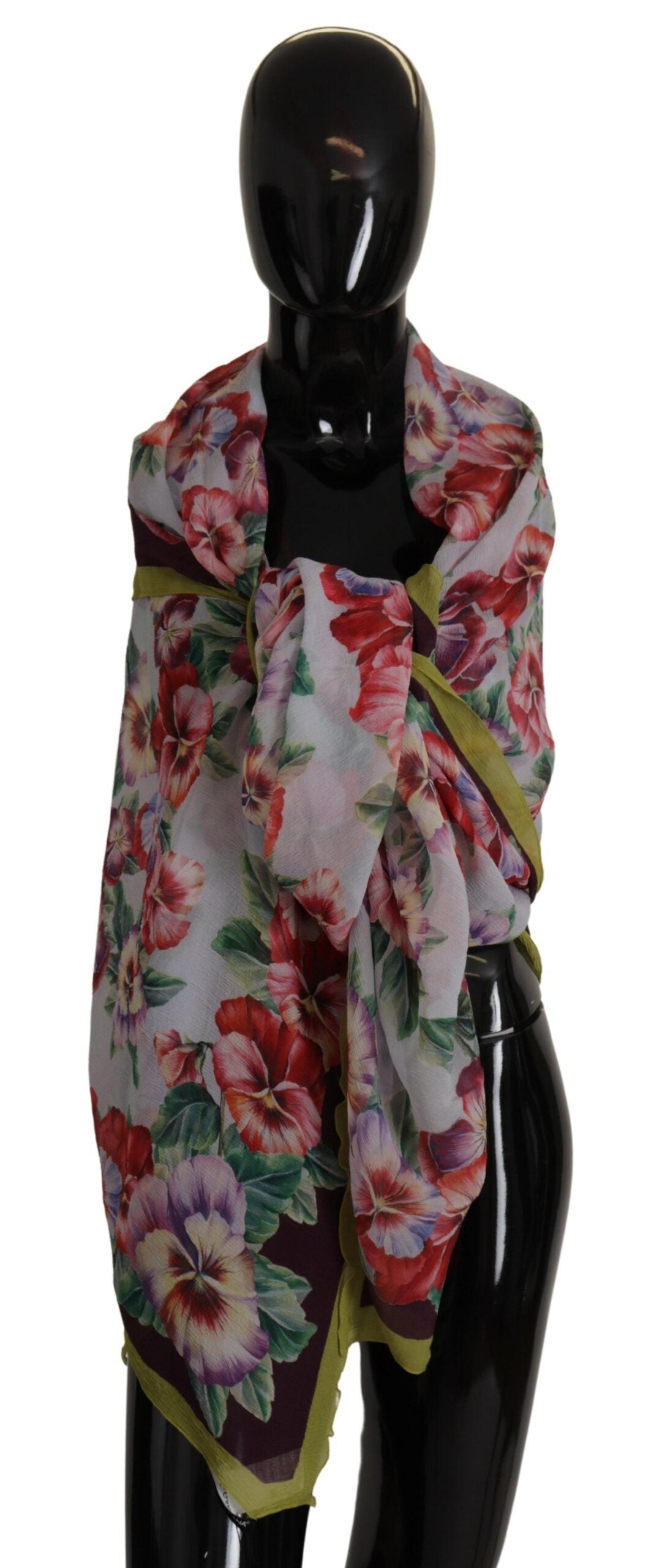 Embrace luxury with our exquisite Floral Elegance Silk Shawl Wrap, perfect for enhancing any ensemble with a touch of sophistication. This gorgeous, 100% authentic wrap, with its vibrant multicolor floral print, is a testament to timeless style and Italian craftsmanship. Ideal for the woman who appreciates elegance and quality in her accessories. Adorned with the Dolce & Gabbana logo, this shawl is a versatile and chic addition to your wardrobe.