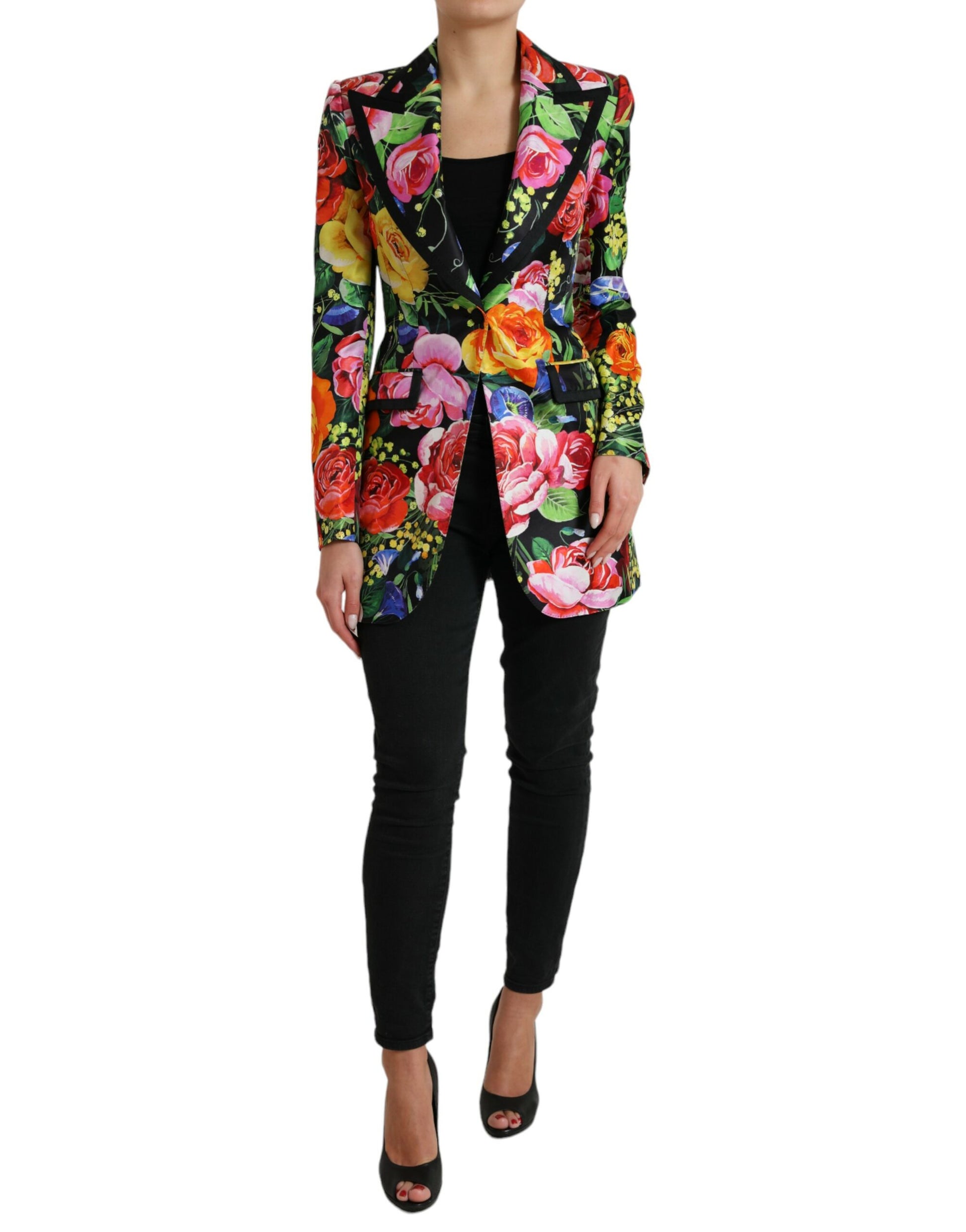 Discover the epitome of Italian luxury with this Dolce & Gabbana Blazer , exuding elegance and high craftsmanship. This gorgeous new item is 100% authentic and features a stunning multicolor floral print that catches the eye. Designed with peak lapels and satin trim, it boasts a sleek front button fastening, practical front flap pockets, and chic long sleeves with buttoned cuffs. Experience the blend of comfort and style with this single-breasted coat jacket blazer, perfect for making a sophisticated statement at any high-end event.