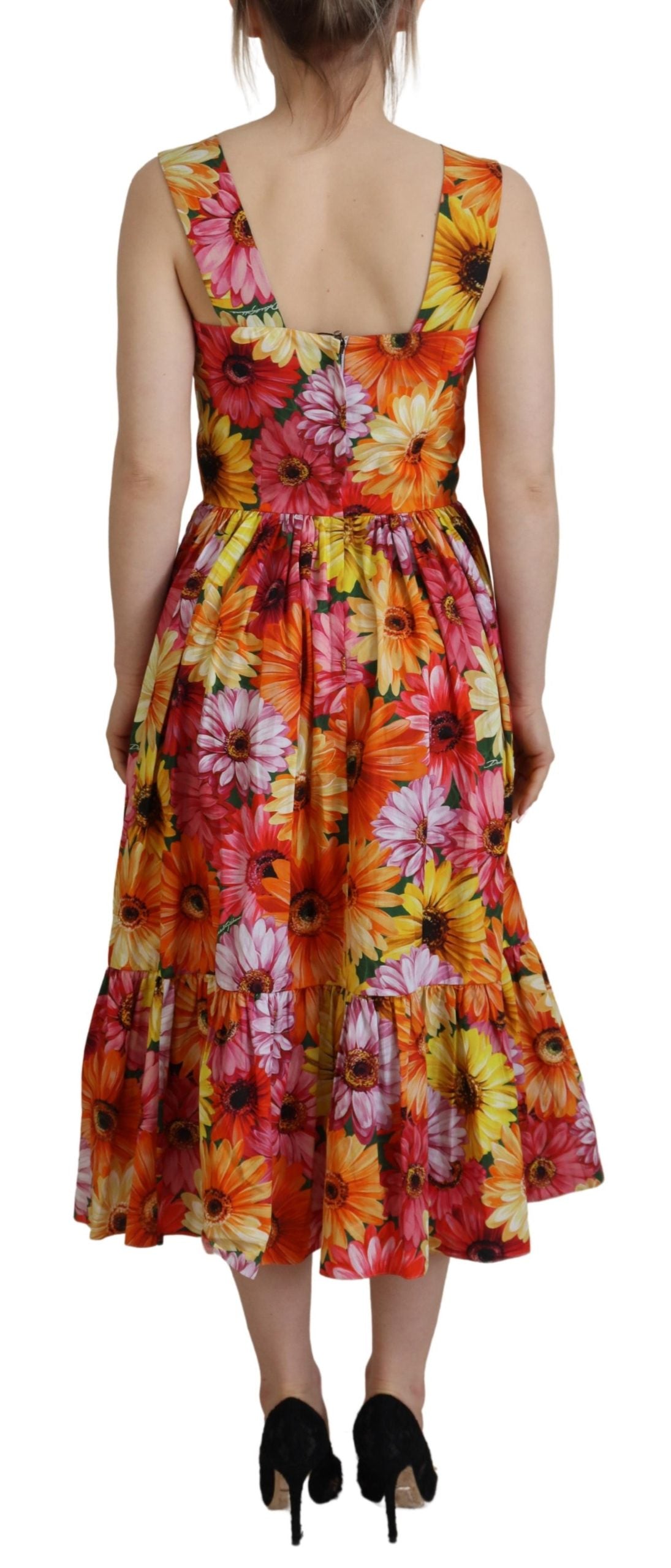 Discover the epitome of elegance with this gorgeous, brand new floral midi dress by Dolce & Gabbana. Crafted from 100% cotton, this dress boasts an exquisite design with a multicolor palette that exudes Italian chic and sophistication. With attention to detail and high craftsmanship, it includes logo details as a nod to its prestigious origins. Lovingly made in Italy, this piece is not only a testament to luxury fashion but also a celebration of comfort and style – perfect for those who seek exclusivity and quality in their wardrobe.