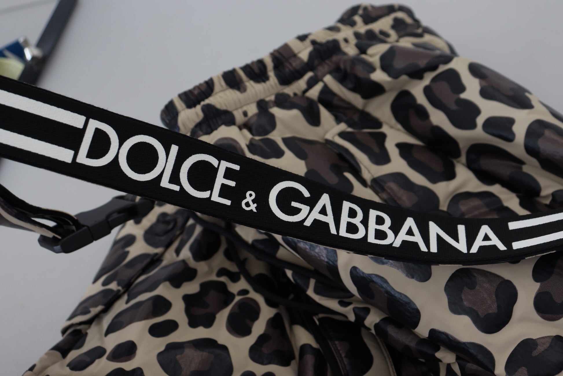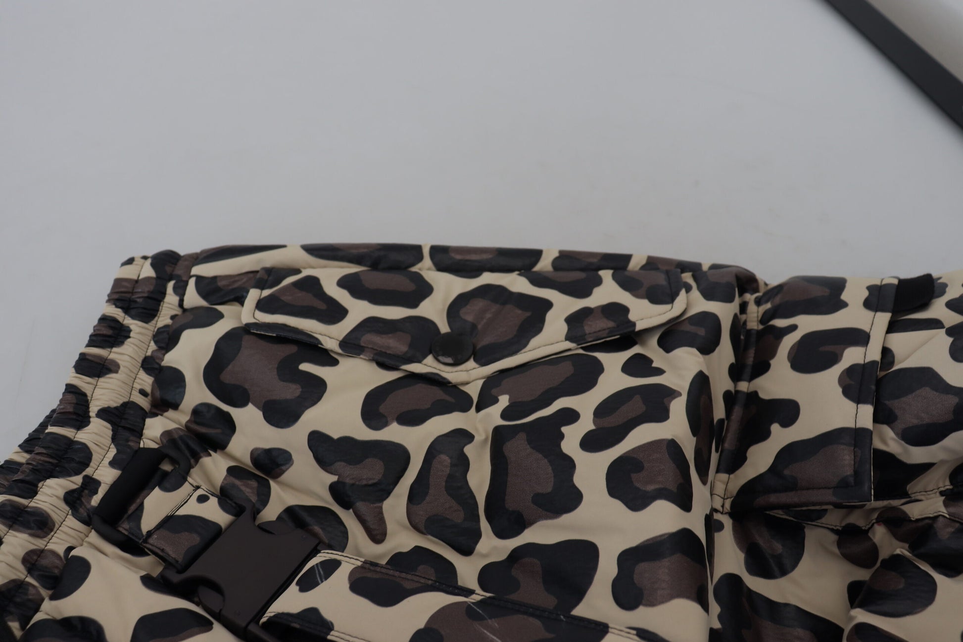 Step out in style even in the chilliest weather with these eye-catching snow pants from Dolce & Gabbana. Flaunting a bold multicolor leopard print, these pants aren’t just a statement piece but also a testament to the luxurious warmth and comfort offered by their premium goose down blend. Ideal for hitting the slopes or just adding a pop of high fashion to your cold-weather wardrobe, they feature thoughtful details like drawstring closure and the unmistakable D&G logo. Crafted with impeccable Italian quality, these snow pants bring together style, functionality, and unrivaled craftsmanship.