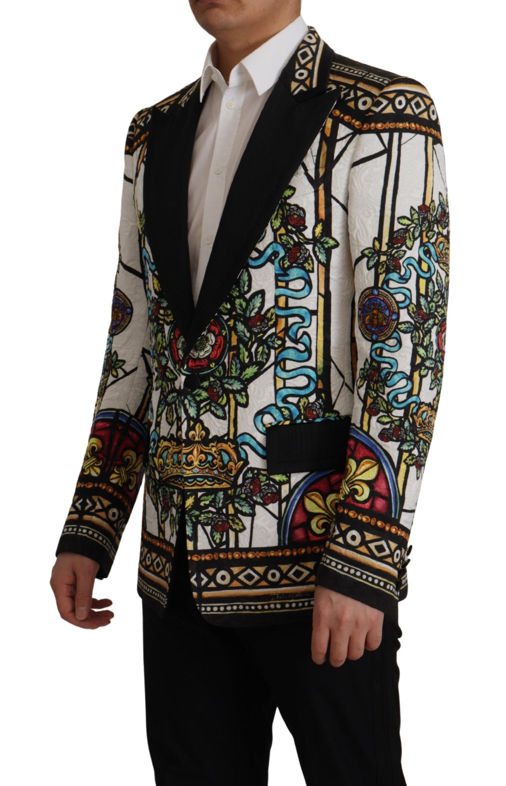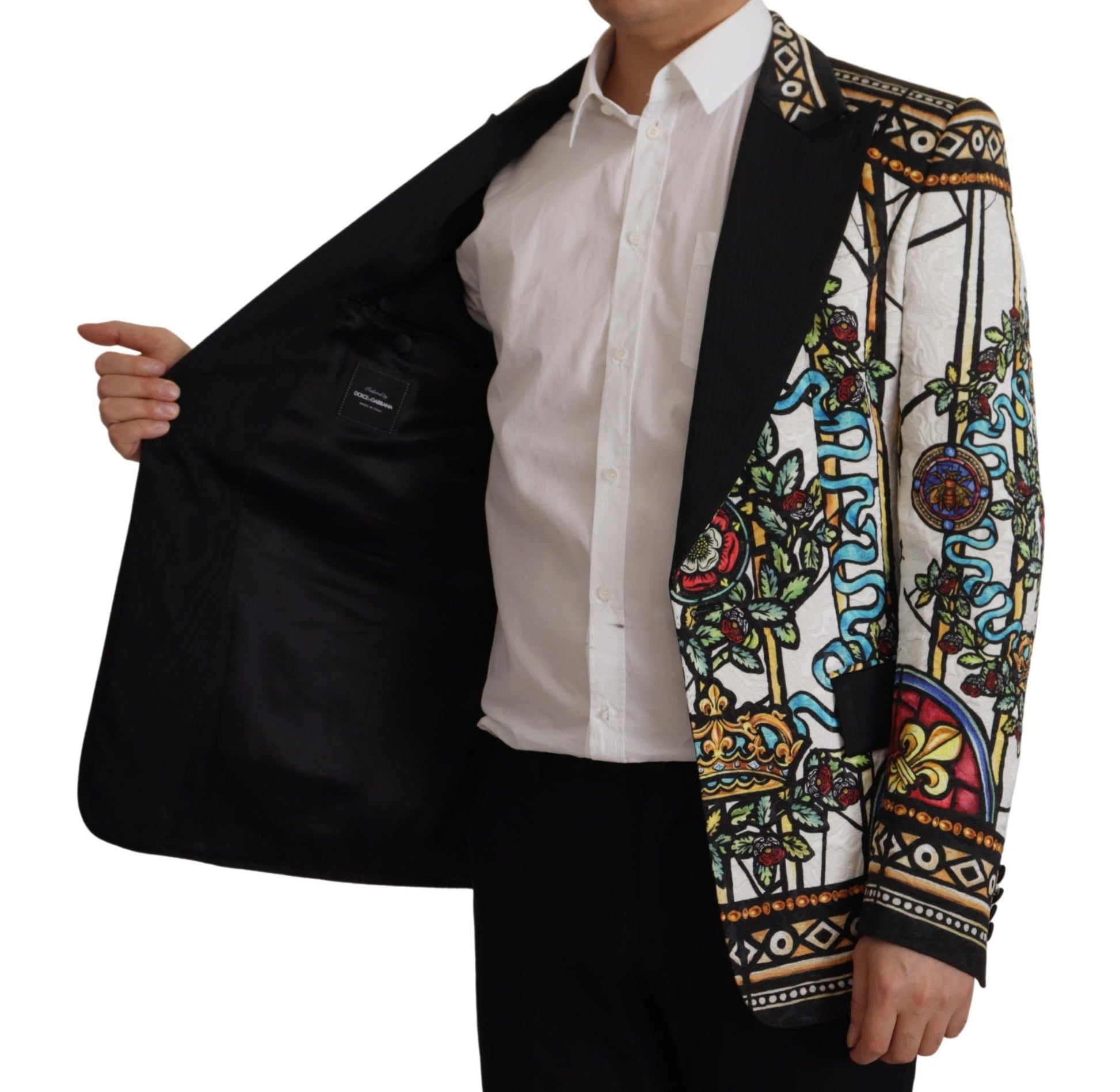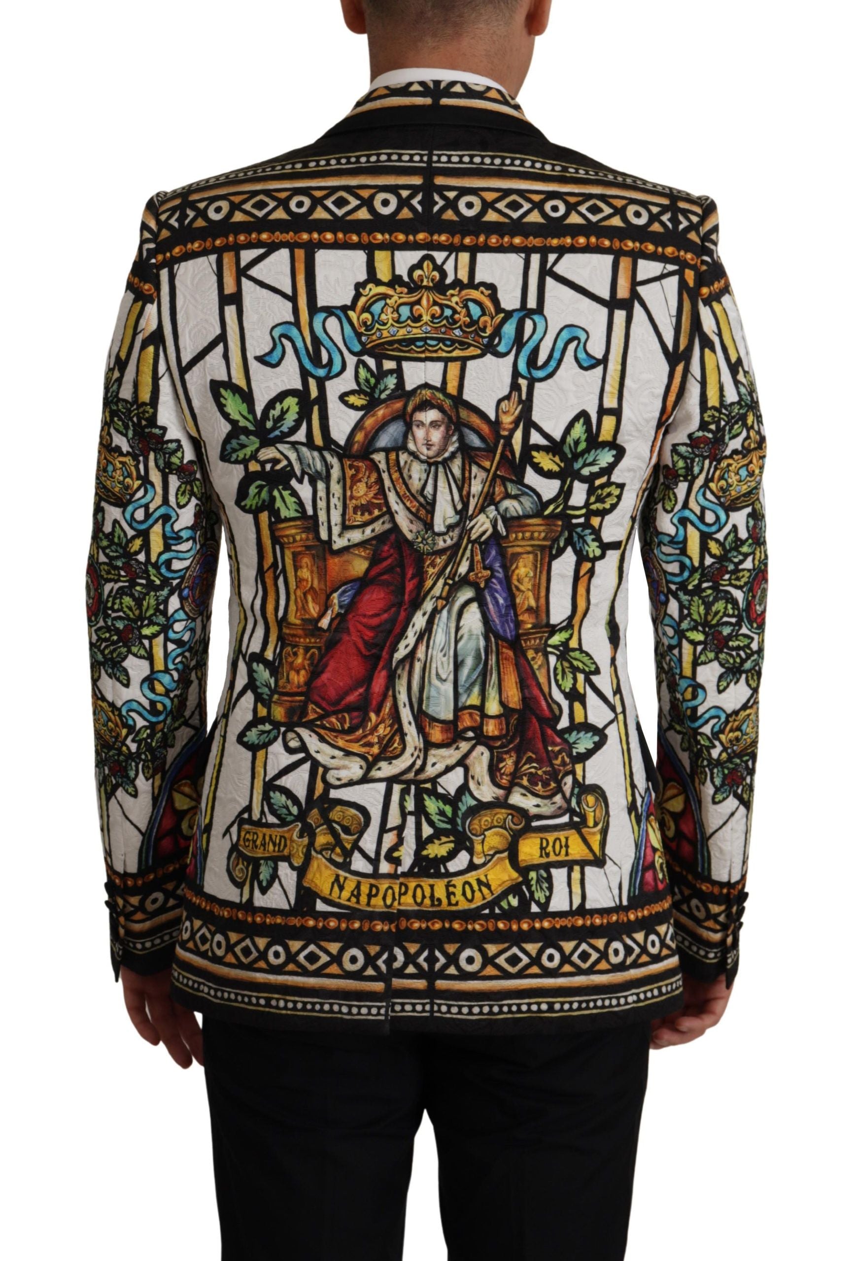 Make an impeccable fashion statement with this stunning, 100% Authentic Dolce & Gabbana single-breasted jacket, embellished with a unique multicolor Napoleon print. Tailored to perfection, this premium piece with a peak style lapel symbolizes luxury and style. This blazer is perfect for those seeking to elevate their wardrobe with a touch of Italian craftsmanship.