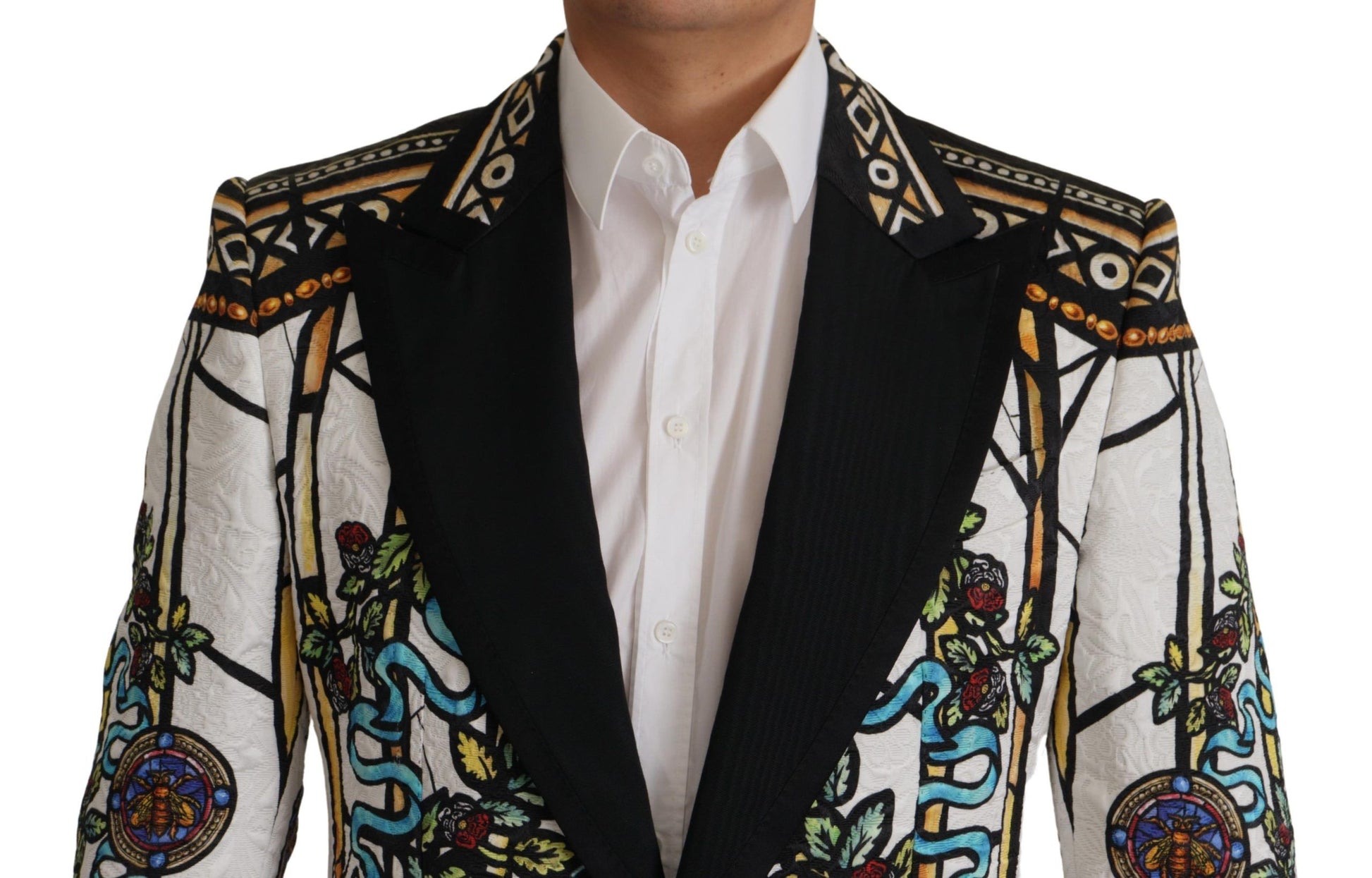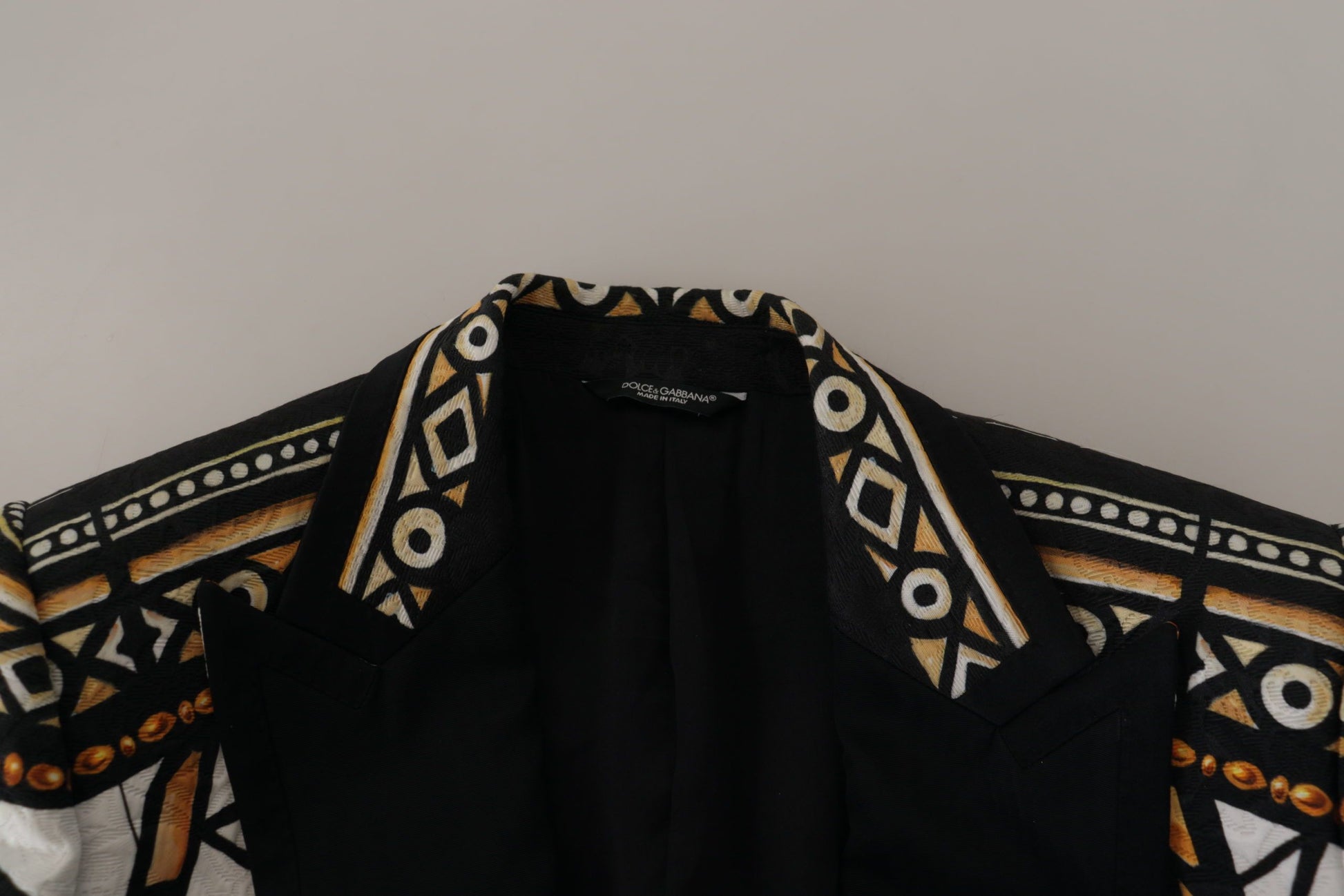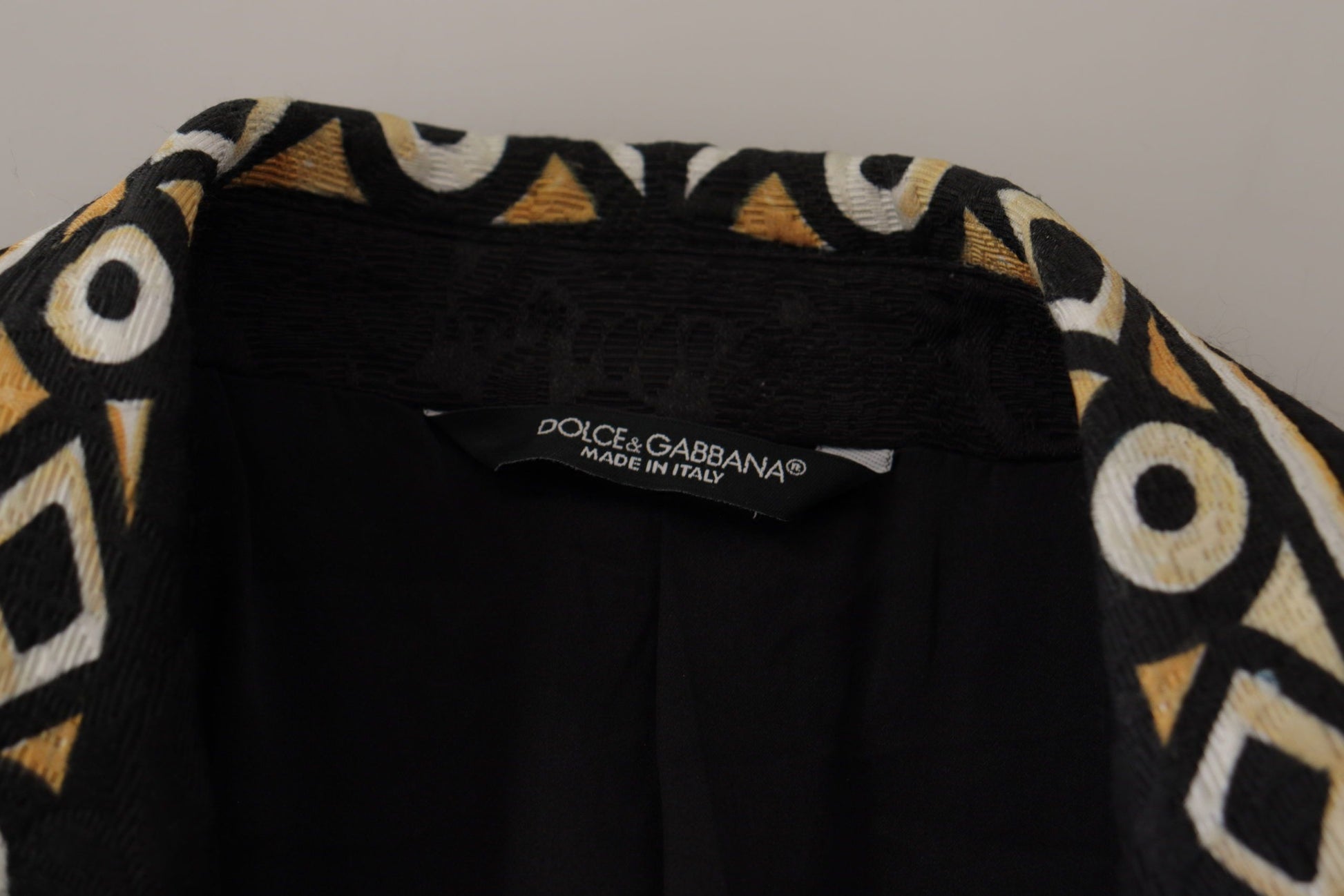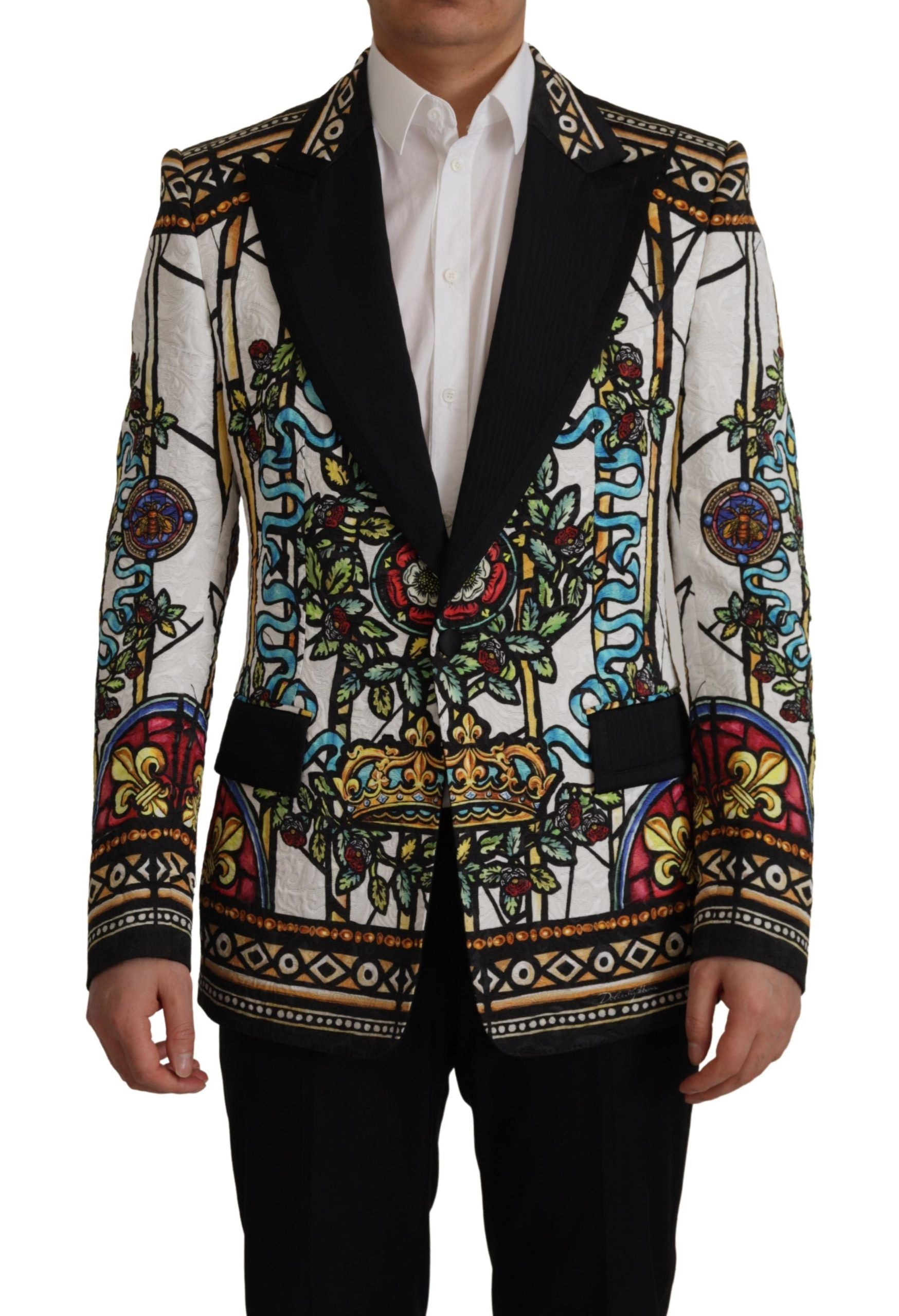 Make an impeccable fashion statement with this stunning, 100% Authentic Dolce & Gabbana single-breasted jacket, embellished with a unique multicolor Napoleon print. Tailored to perfection, this premium piece with a peak style lapel symbolizes luxury and style. This blazer is perfect for those seeking to elevate their wardrobe with a touch of Italian craftsmanship.