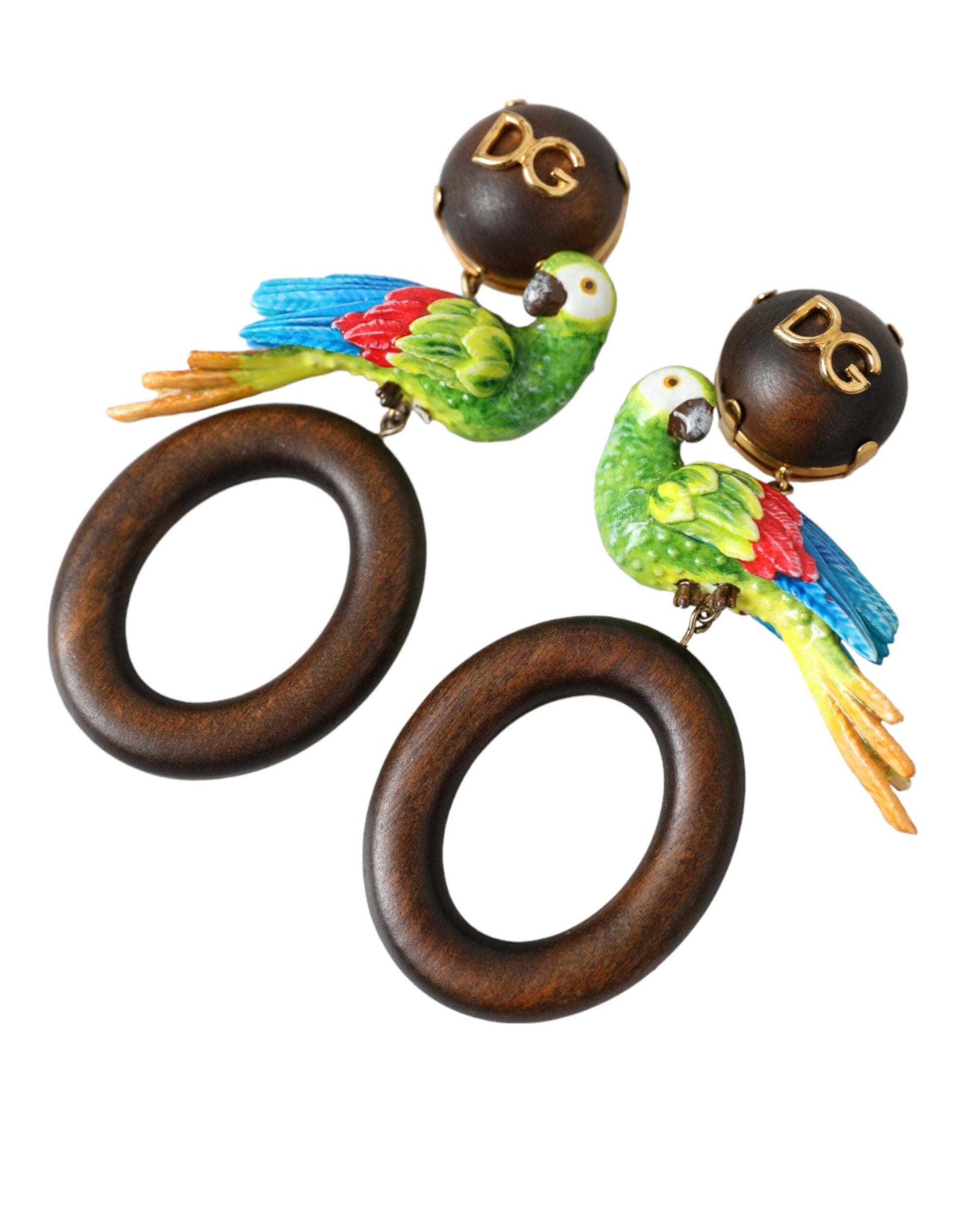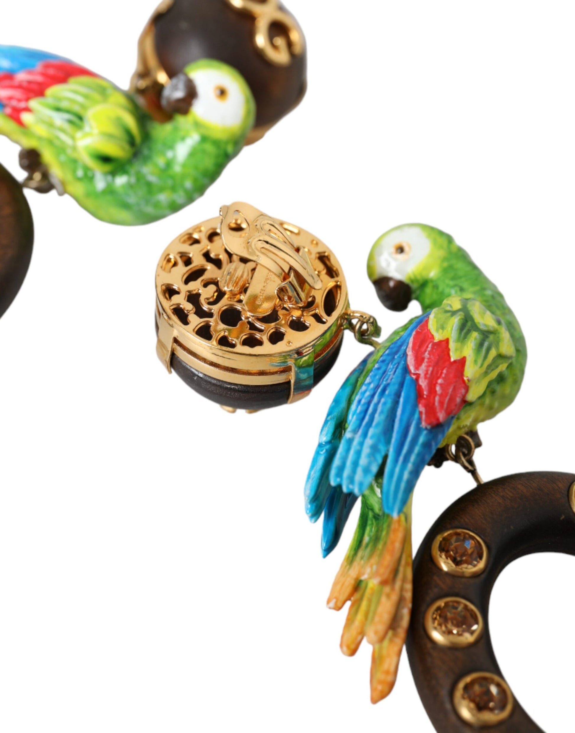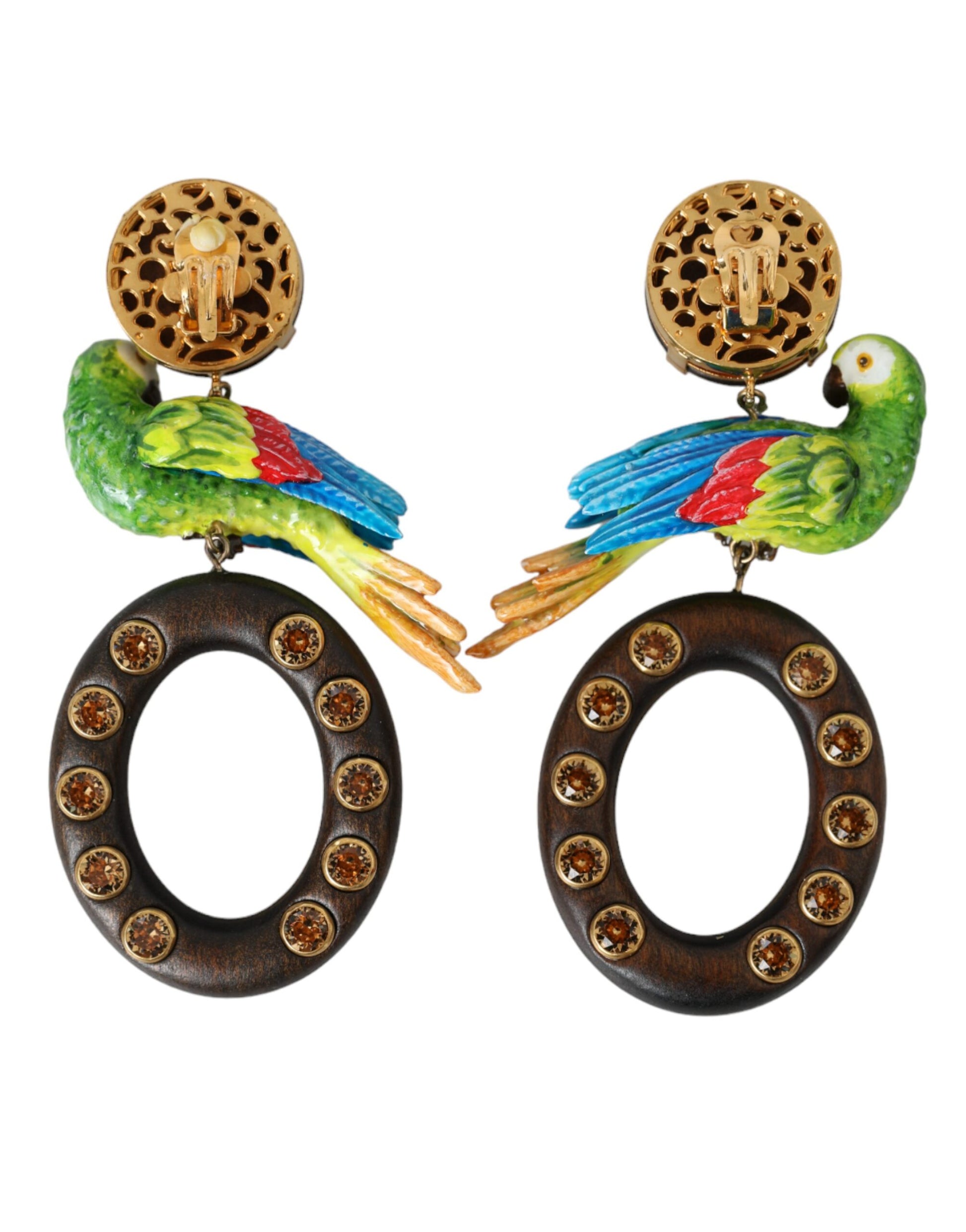 Multicolor Parrot Wood Brass Crystal Embellished Earring
