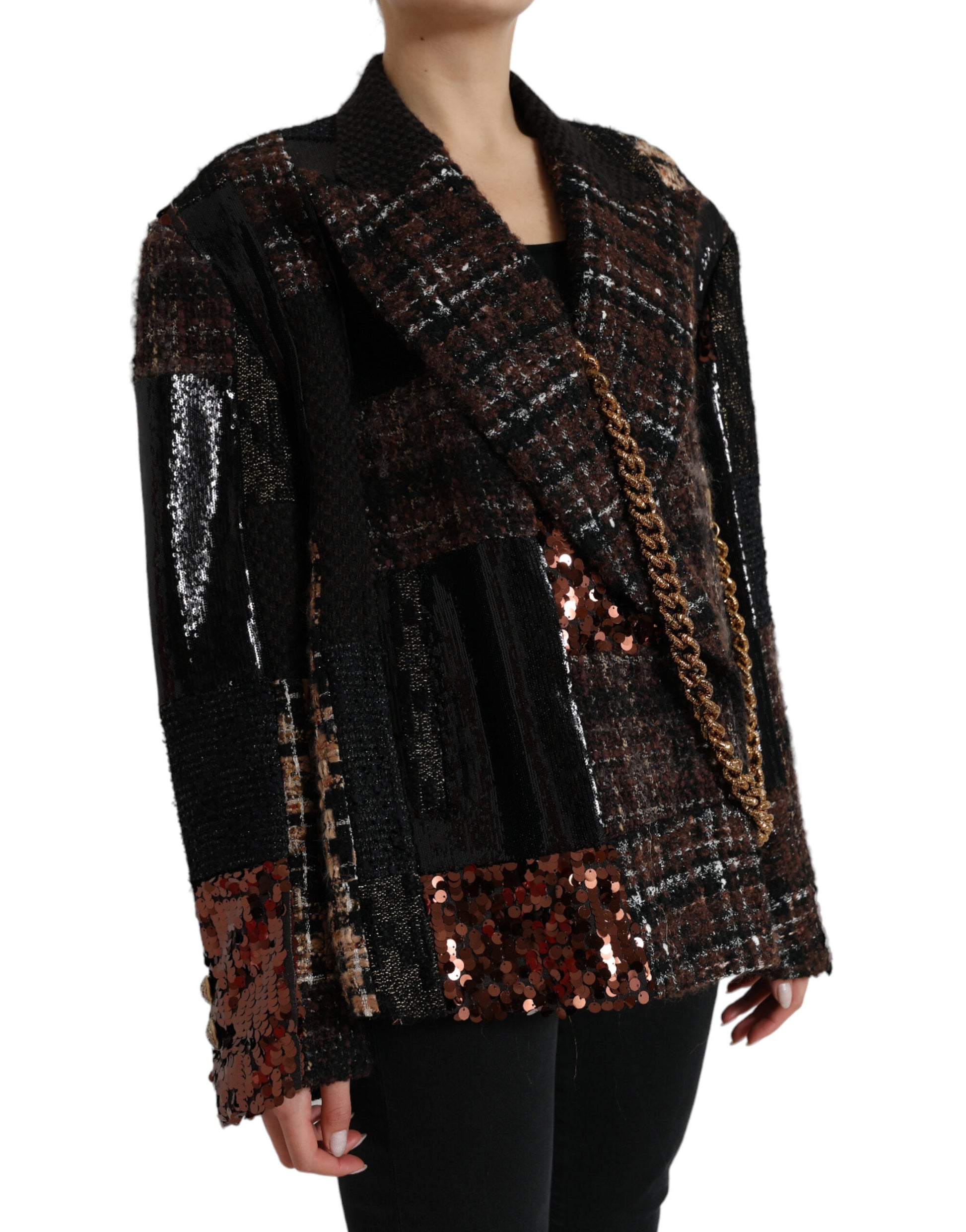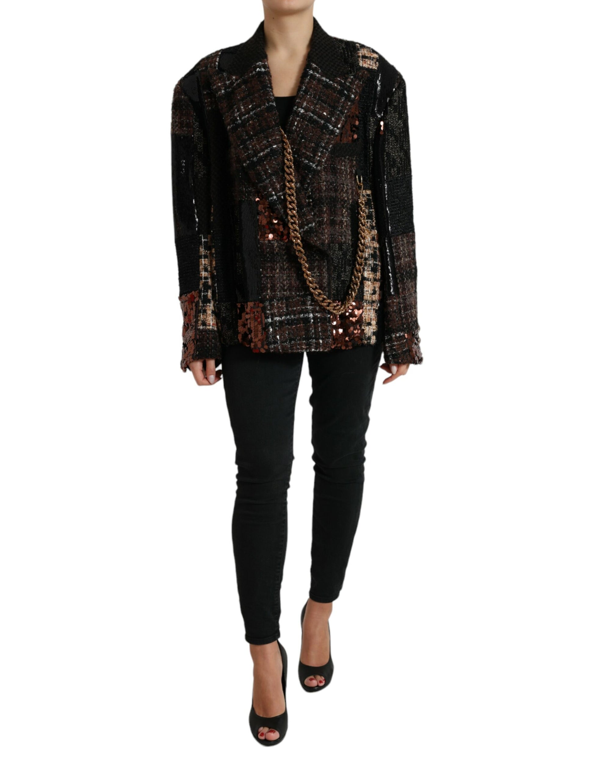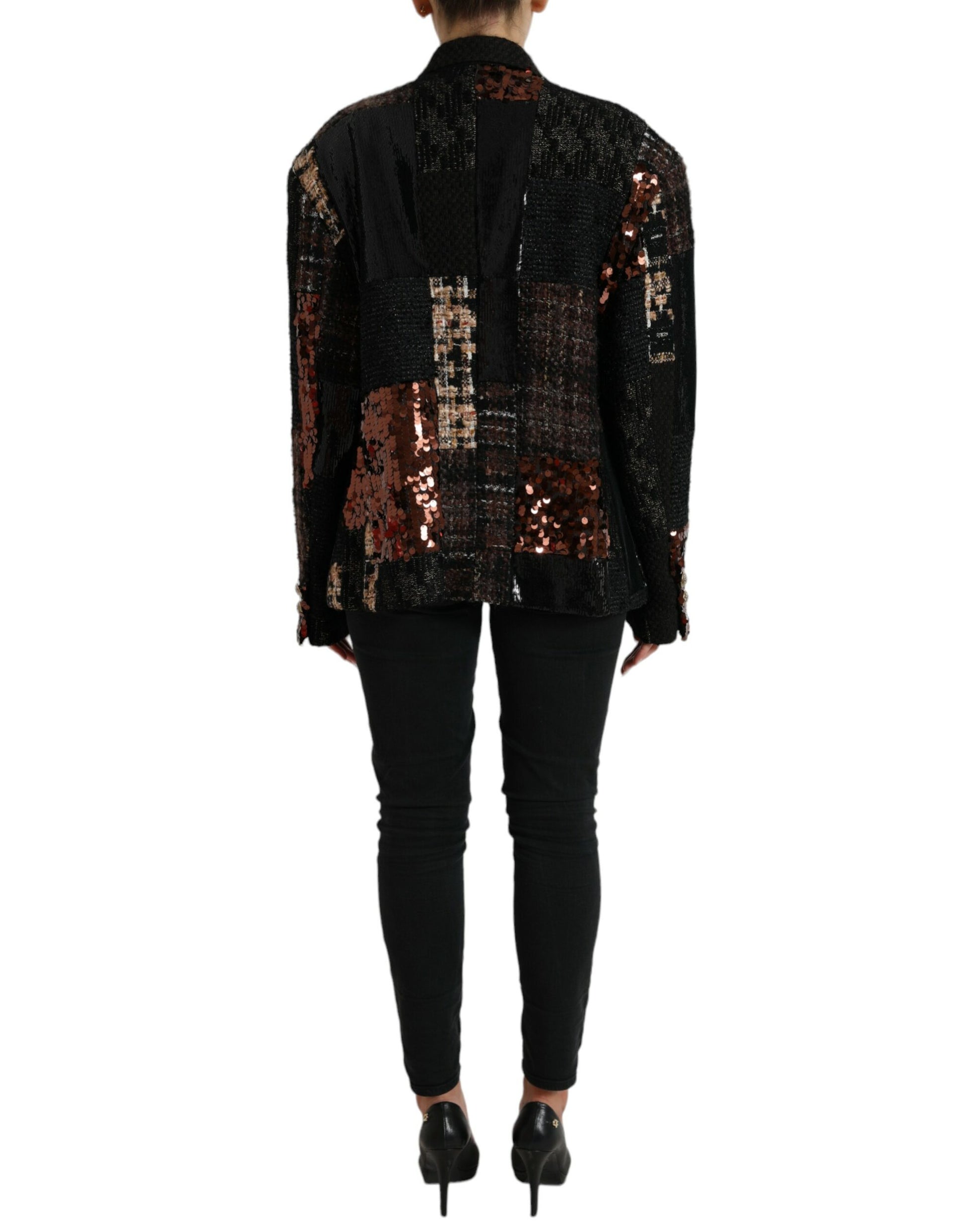 Indulge in the epitome of Italian craftsmanship with this stunning Dolce & Gabbana patchwork jacket. With its figure-flattering silhouette, peak lapels, and double-breasted button-front closure, this coat is a standout wardrobe essential. The intricate material blend and the exquisite multicolor design highlight its uniqueness and luxury appeal, making it a must-have for any fashion connoisseur. Made in Italy, this jacket promises not just style but also the highest quality and exclusivity.