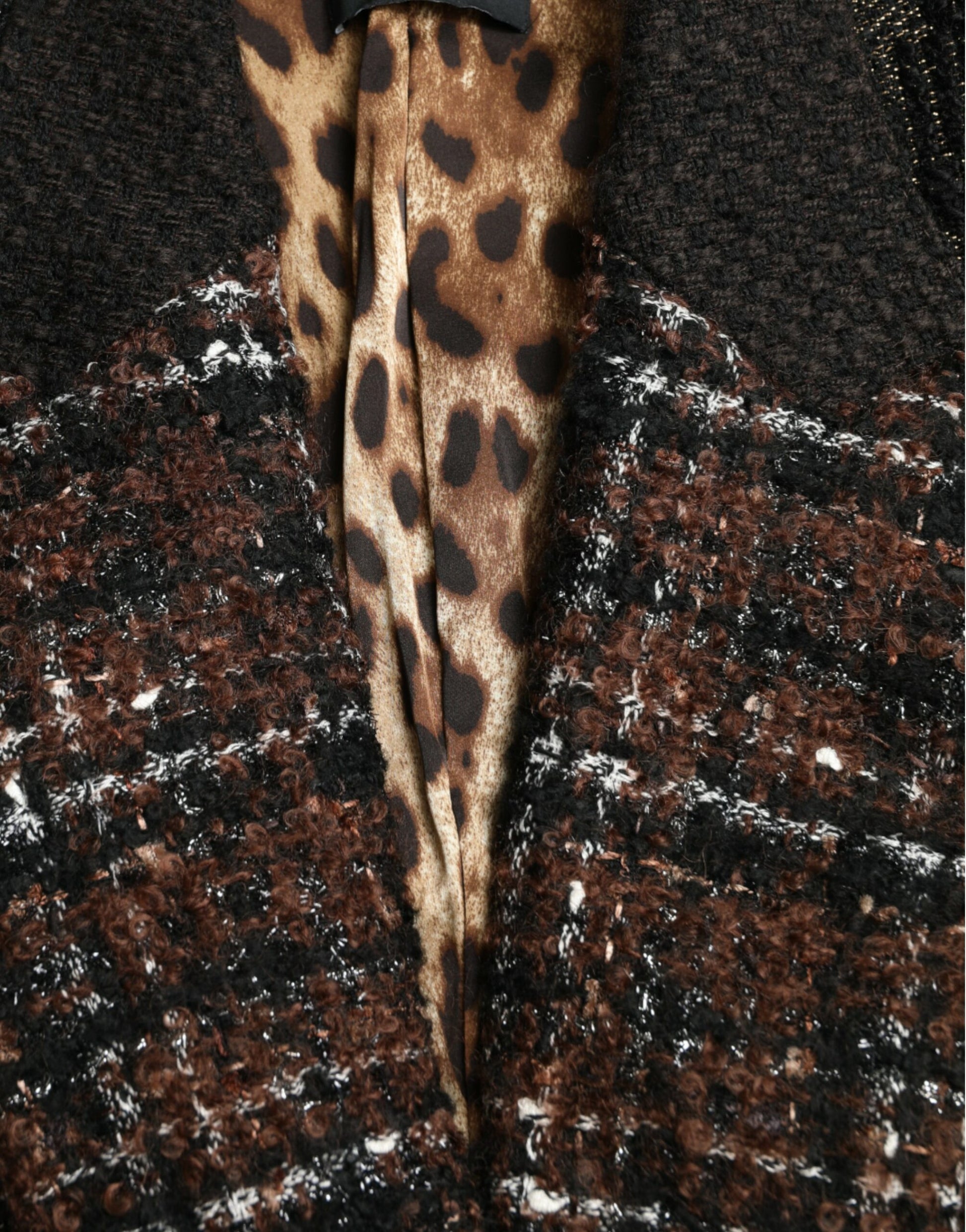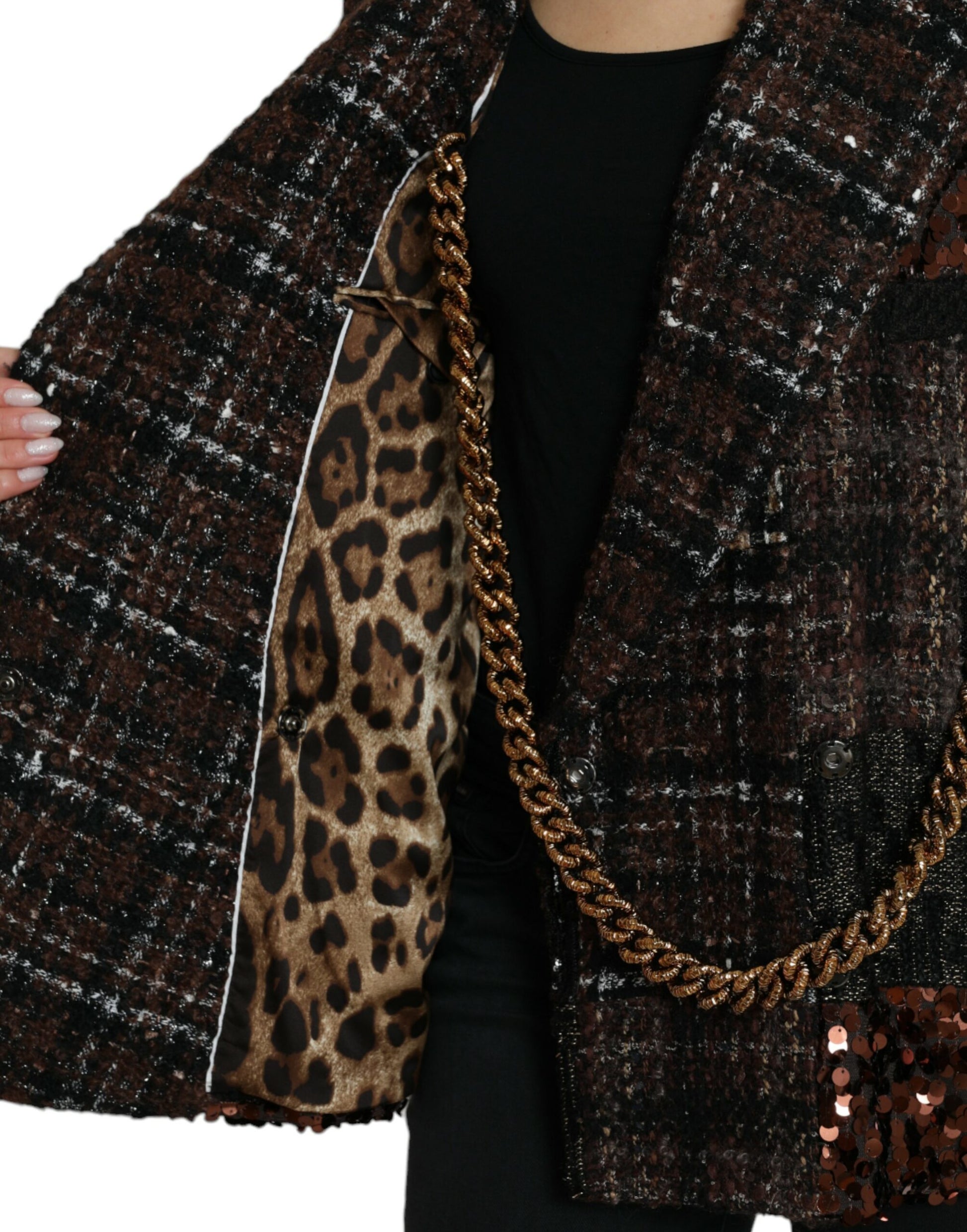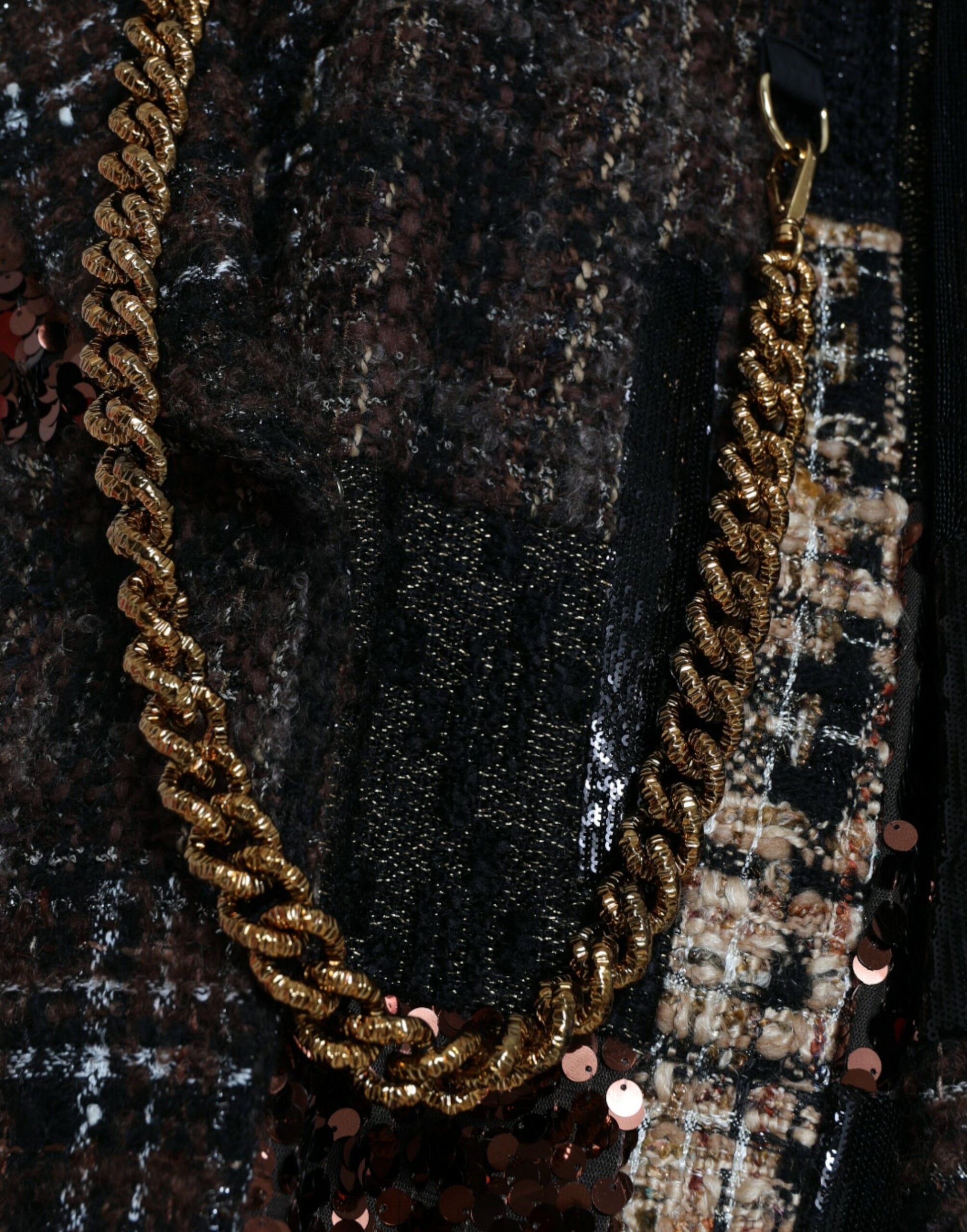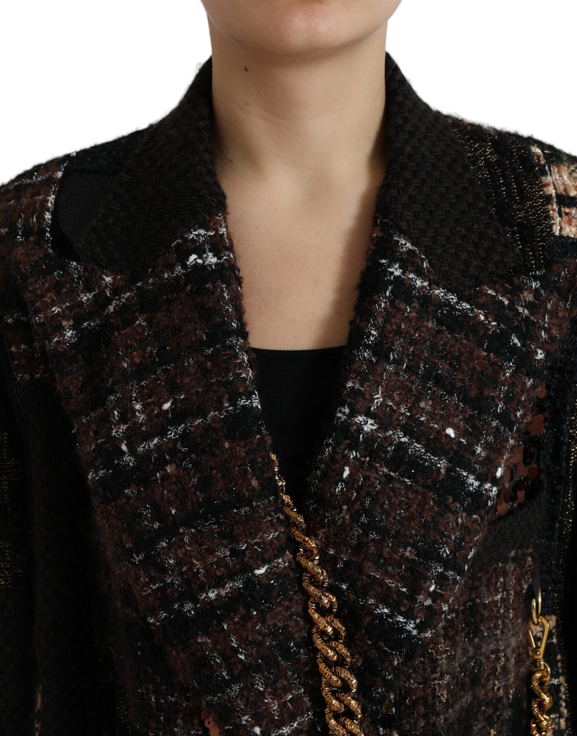 Indulge in the epitome of Italian craftsmanship with this stunning Dolce & Gabbana patchwork jacket. With its figure-flattering silhouette, peak lapels, and double-breasted button-front closure, this coat is a standout wardrobe essential. The intricate material blend and the exquisite multicolor design highlight its uniqueness and luxury appeal, making it a must-have for any fashion connoisseur. Made in Italy, this jacket promises not just style but also the highest quality and exclusivity.