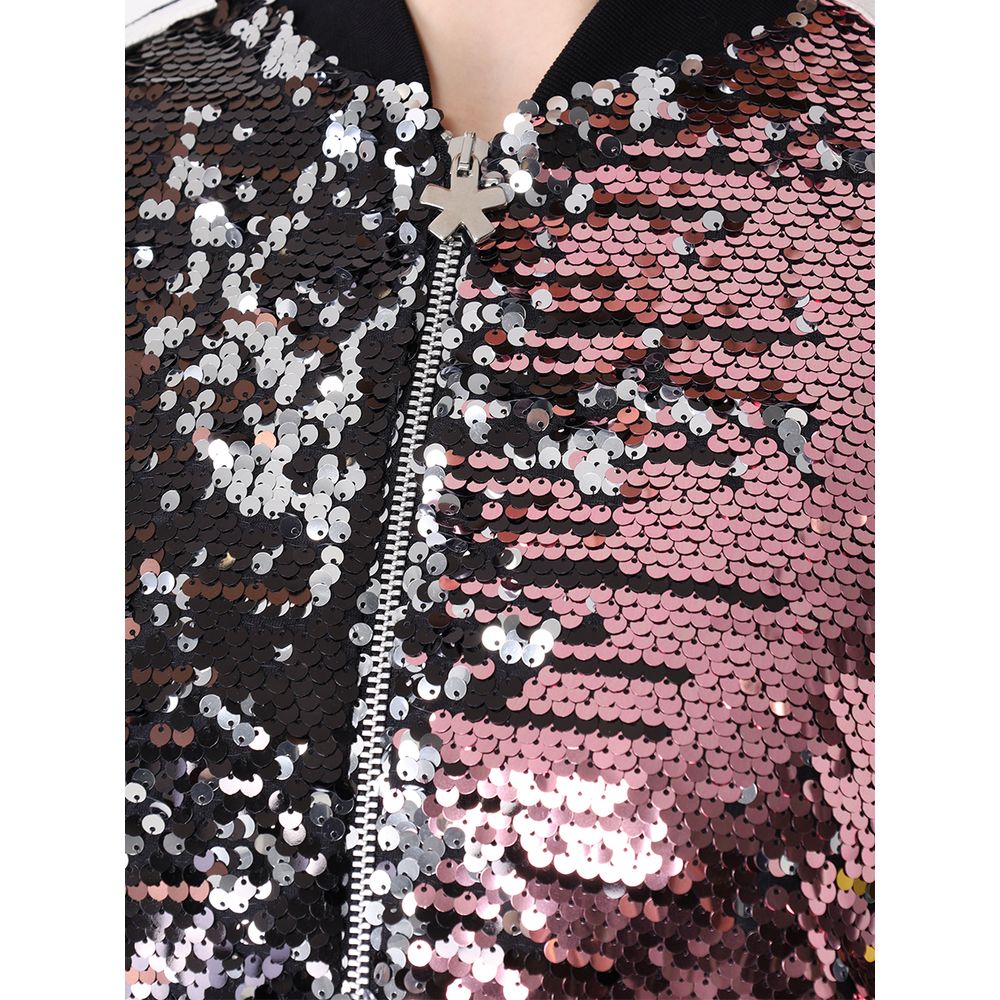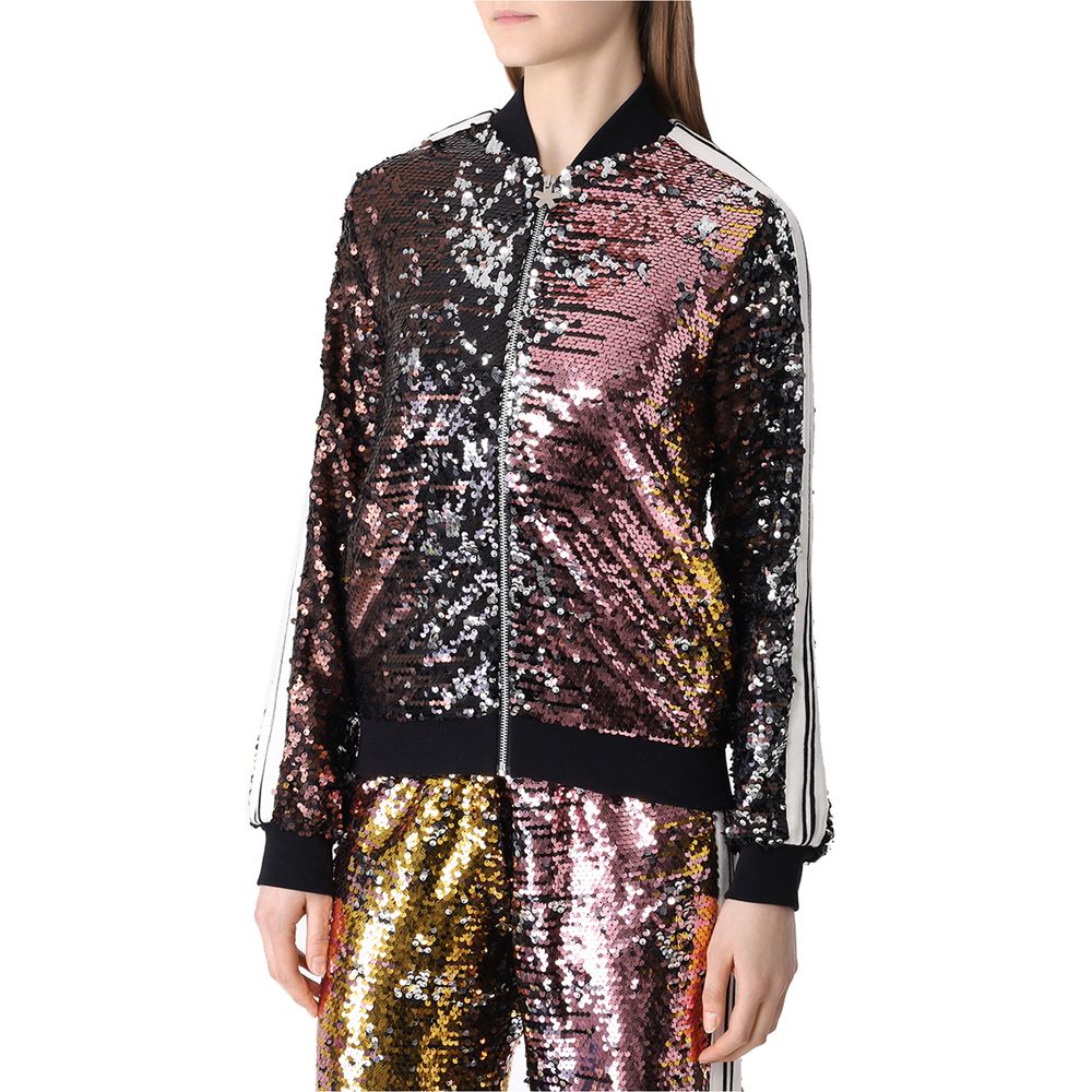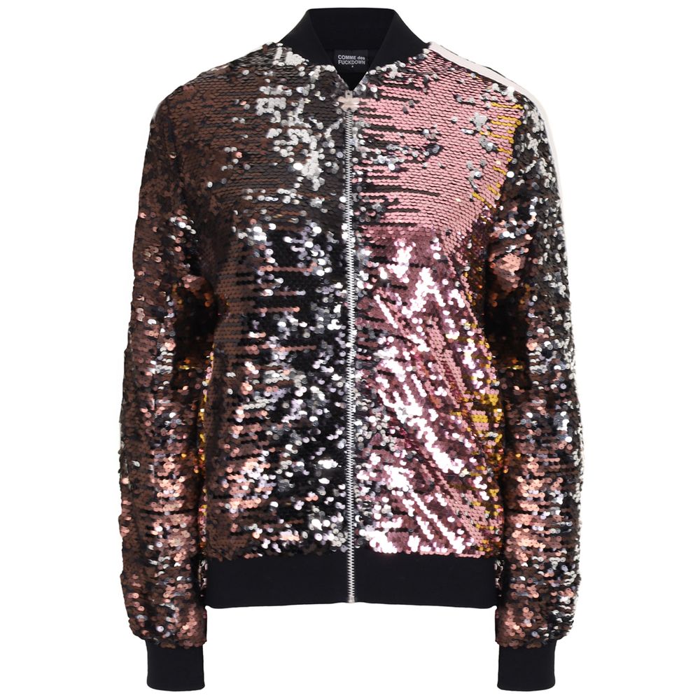 Comme des Fuckdown all zipper polyester bomber jacket covered in multicolored sequins, two side pockets