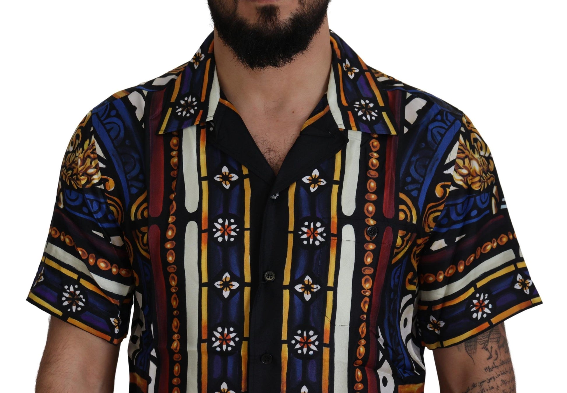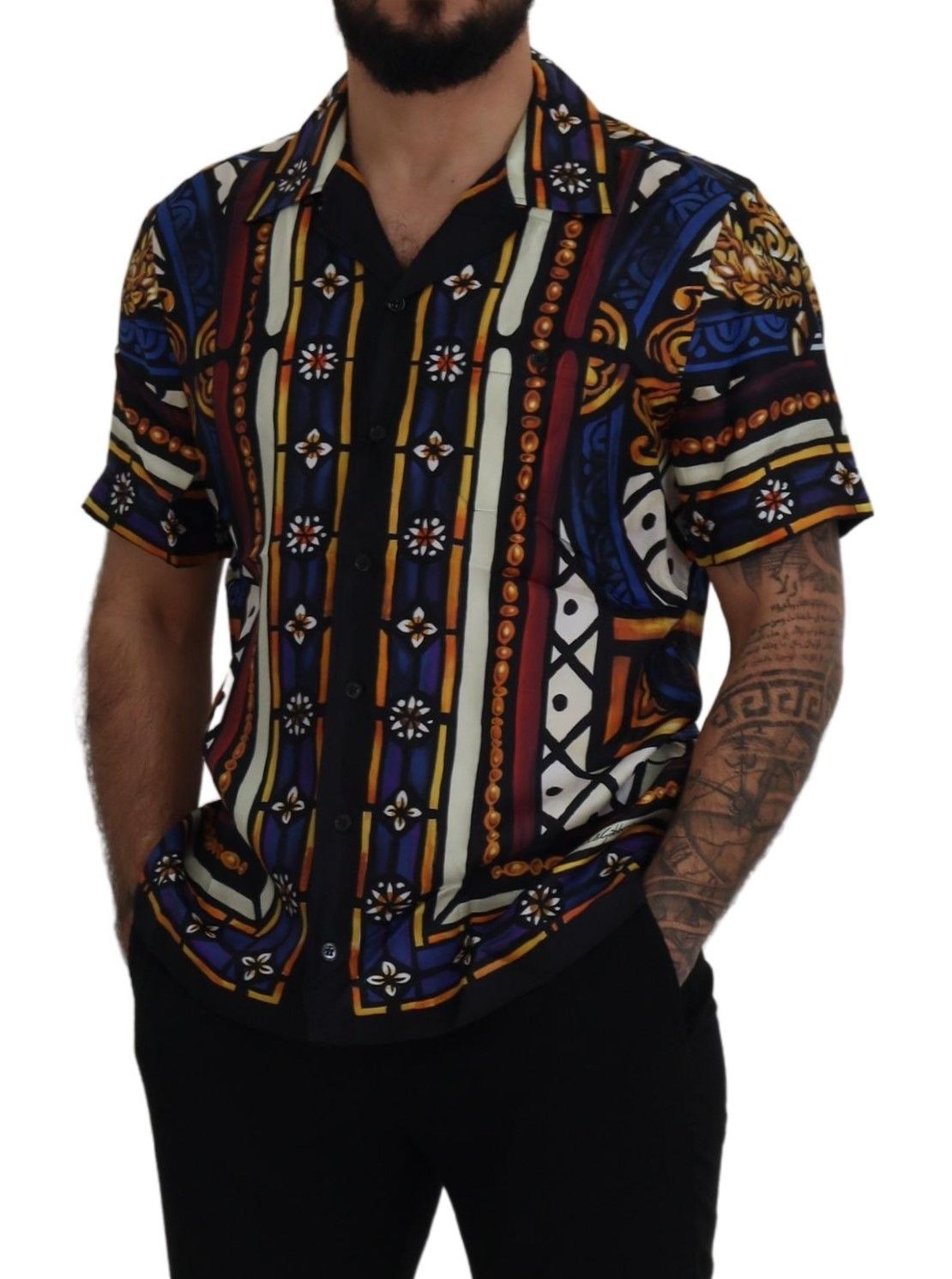 Discover the epitome of summer sophistication with our stunning short sleeve shirt, a testament to Dolce & Gabbana’s commitment to luxury and style. This exquisite piece, exuding Italian craftsmanship, is designed for the fashion-forward individual seeking to elevate their wardrobe. Impeccably crafted from the finest 100% silk, this shirt dazzles with its vibrant colors, ensuring you stand out with elegance at any occasion.