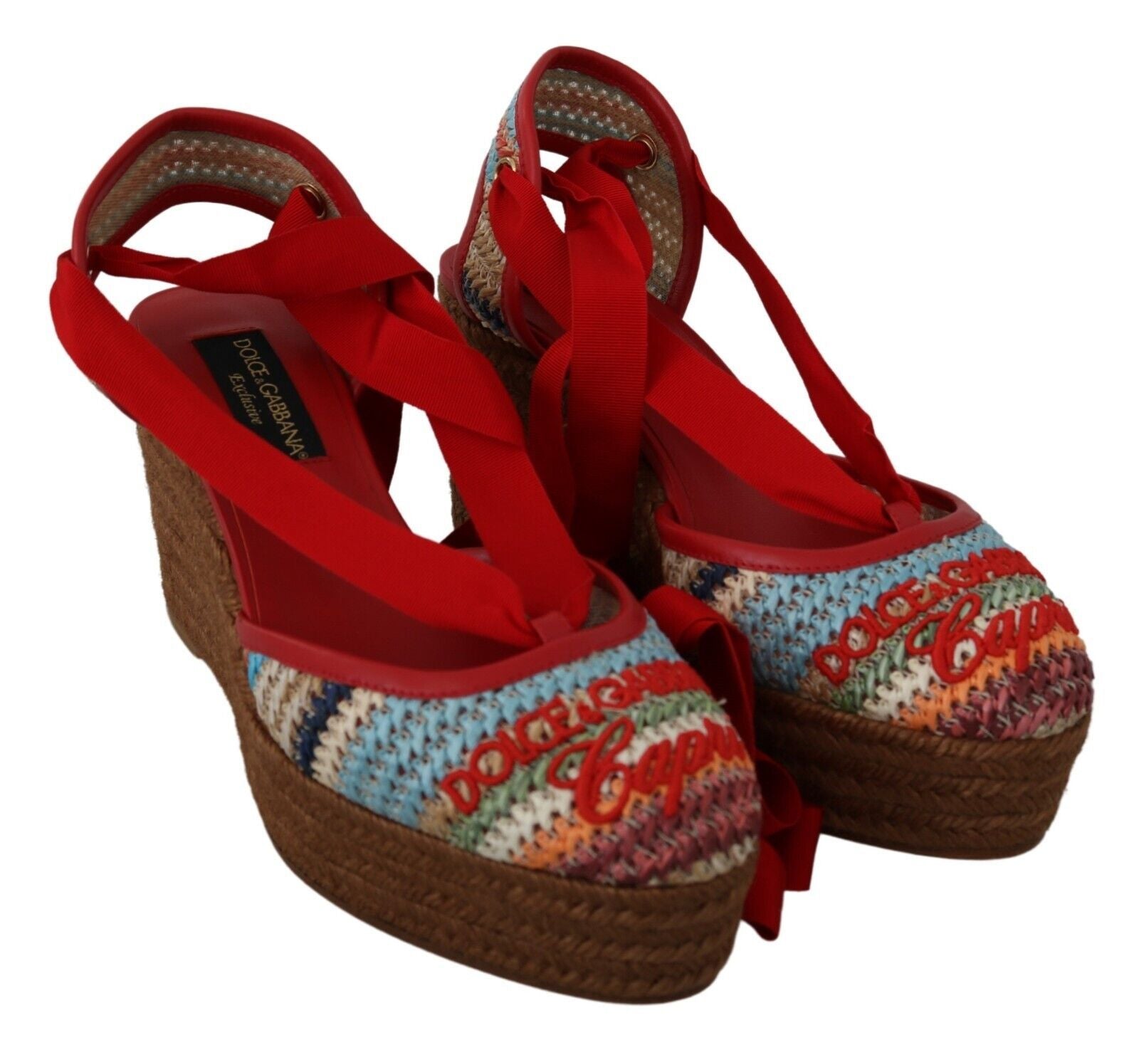 Step into the essence of summer elegance with these stunning Multicolor Raffia Wedge Heels Sandals, courtesy of the renowned design house Dolce & Gabbana. These gorgeous sandals are brand new, tagged, and perfectly embody the luxury and craftsmanship synonymous with the brand. The vibrant multicolored raffia straps set atop a sophisticated leather sole offer both unparalleled style and comfort. Crafted with love in Italy, these sandals are a testament to high fashion and high quality.