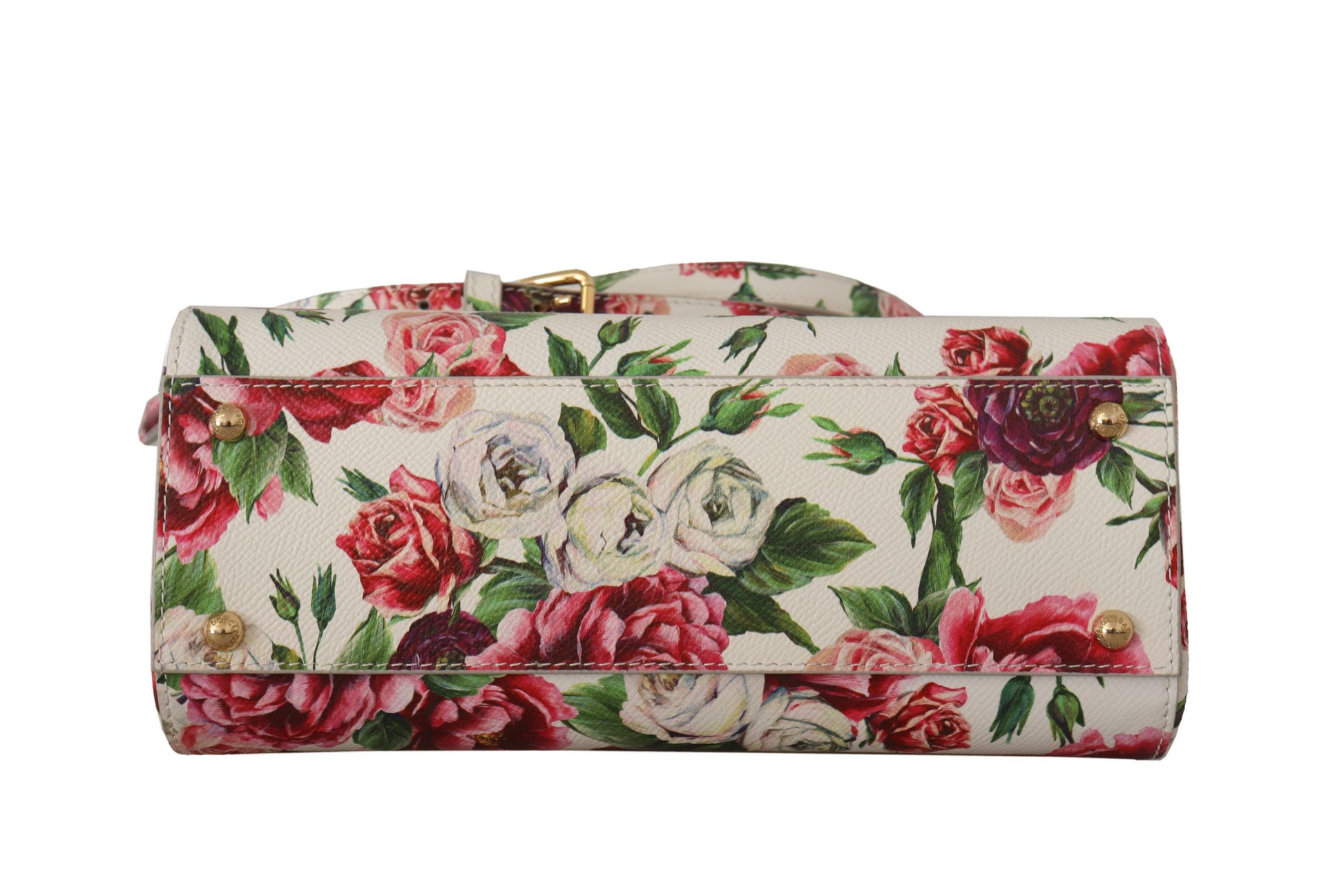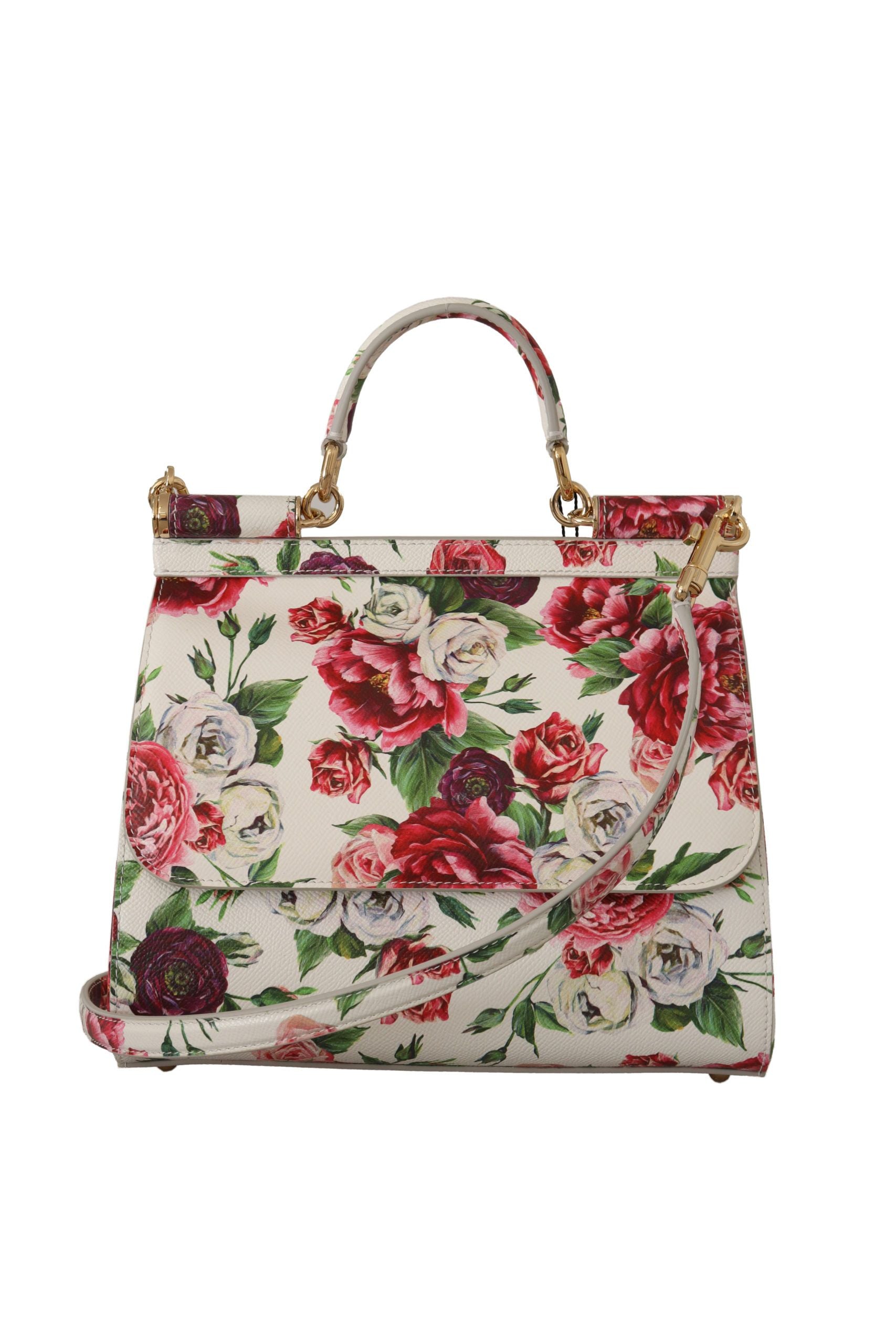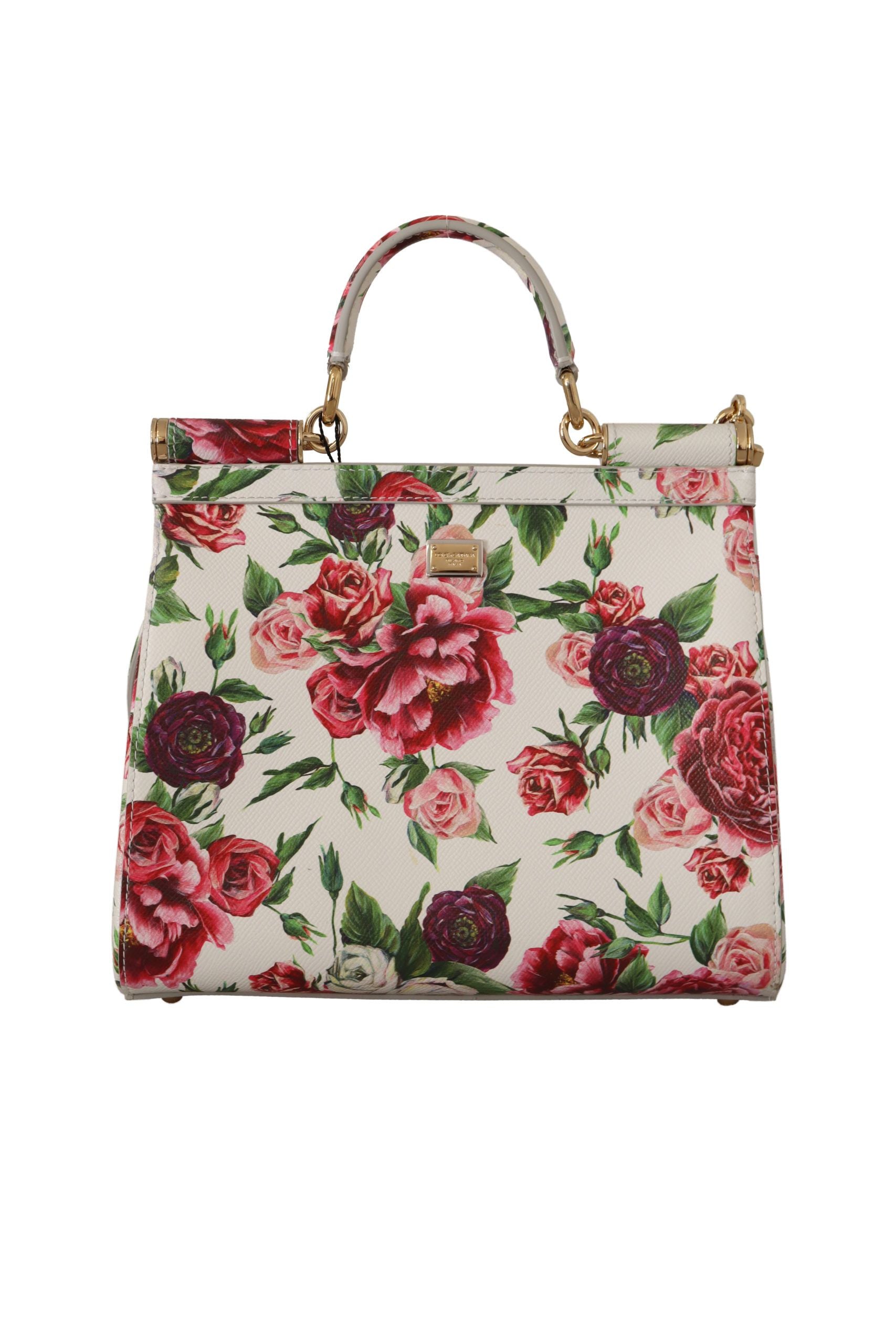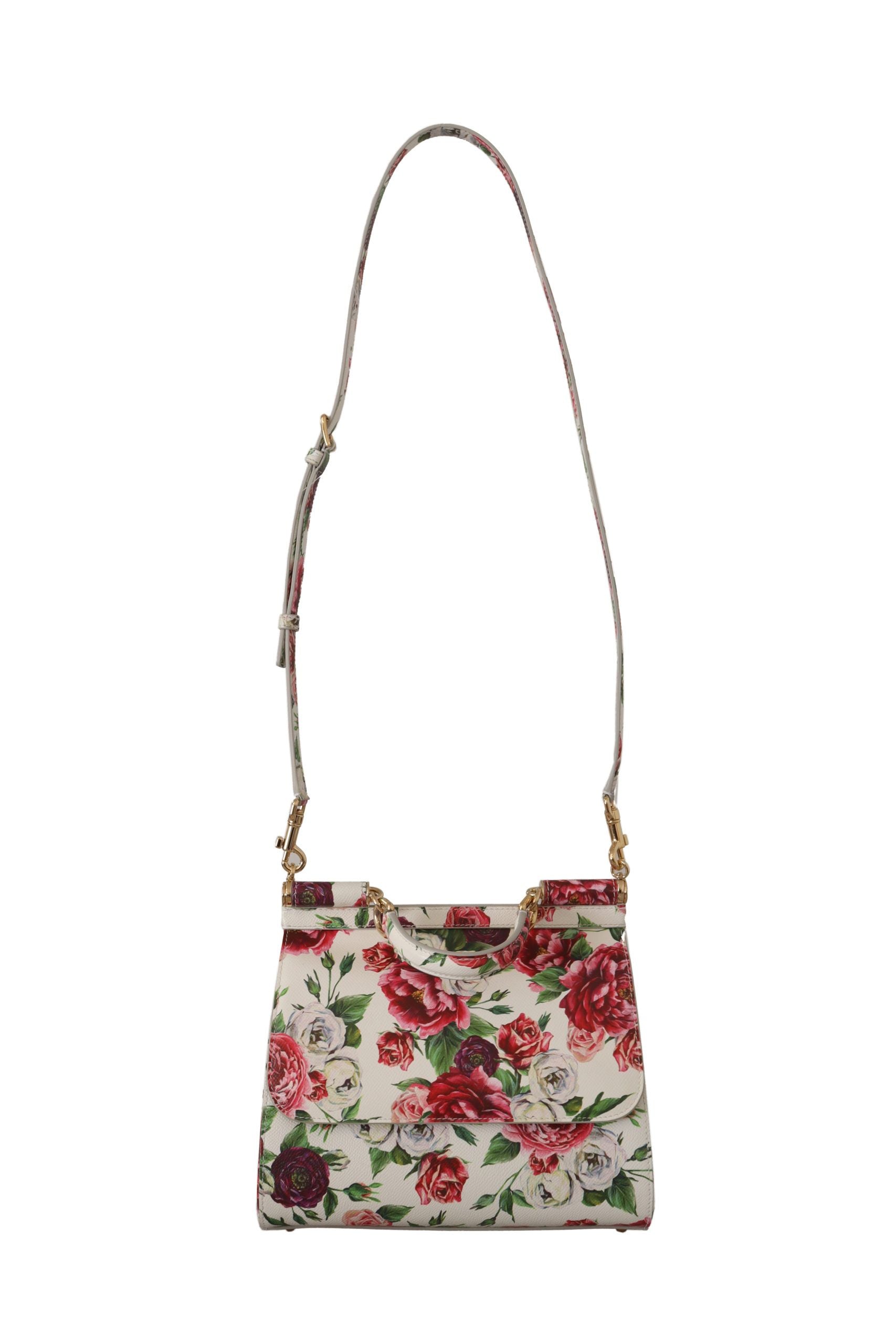 Indulge in the exceptional elegance of this Dolce & Gabbana Sicilian Blossom Shoulder Bag, a piece that radiates luxury with its eye-catching multicolor floral roses print and polished gold metal details. This exquisite bag is designed for both style and functionality, featuring a versatile one-handle structure alongside an adjustable and detachable shoulder strap for varied wear. The magnetic flap secures your essentials, leading to a sophisticated blue-lined interior with organized slots. Expertly crafted in Italy with impeccable craftsmanship, this medium-sized leather marvel transforms any ensemble into a statement of high fashion.