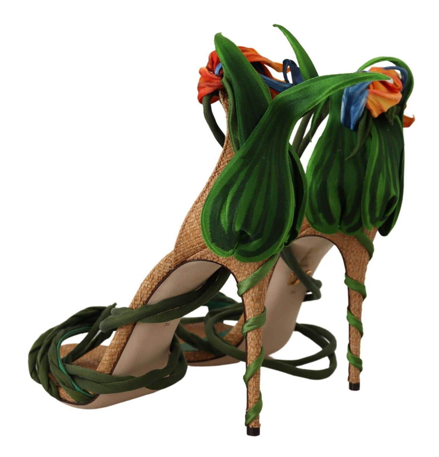 Indulge in the opulence of these stunning Dolce & Gabbana heel sandals, adorned with vibrant floral appliques that evoke the essence of a blooming garden. Crafted with an exquisite blend of materials and expertly made in Italy, these sandals epitomize luxury and comfort.