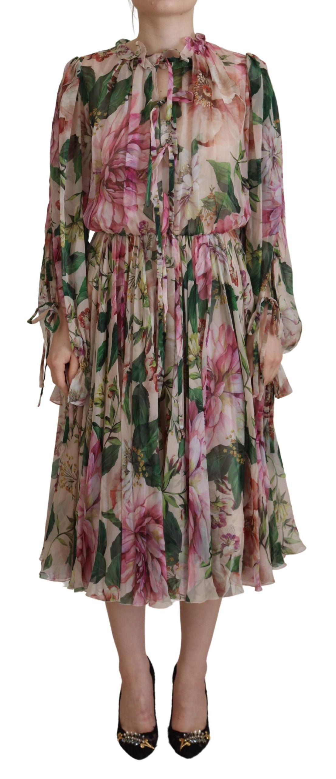 Discover the epitome of elegance with this exquisite multicolor floral print midi dress by Dolce & Gabbana. Imbued with the brand’s signature luxury, this piece is perfect for any sophisticated wardrobe. The dress features a form-fitting silhouette and a convenient zipper closure, all while flaunting the designer’s logo details.